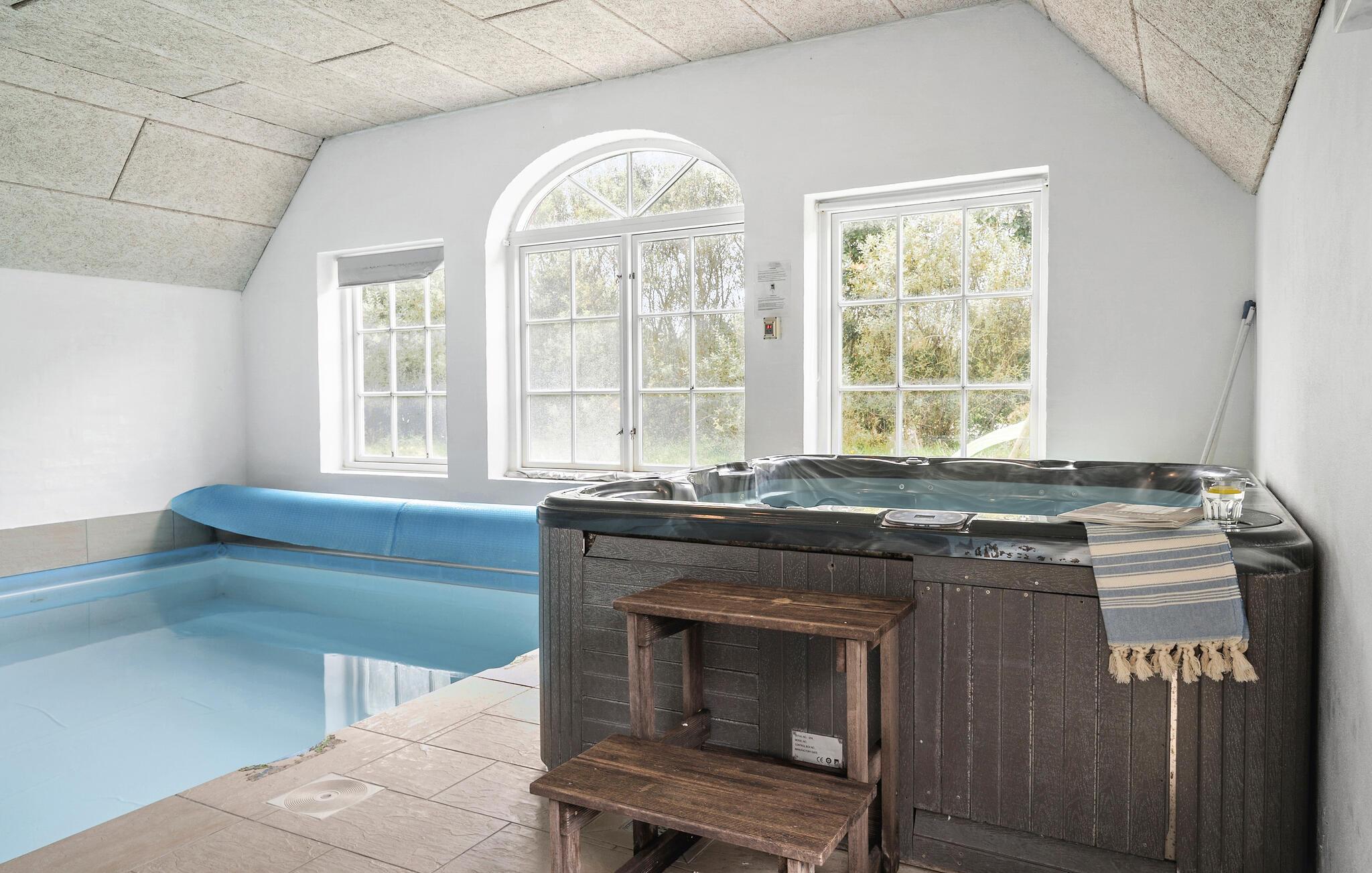 Ihr Ferienhaus in Vedersø Klit bietet ausreichend Platz für bis zu drei Familien oder eine größere Reisegruppe und verspricht unvergessliche Urlaubserlebnisse. Die gemütliche Atmosphäre des Hauses und die offene, elegante Küche laden zu gemeinsamen Kochabenden ein. Nach dem Essen können Sie es sich in der stilvollen Sofaecke gemütlich machen und gemeinsam einen guten Film schauen. Ein besonderes Highlight ist der Poolbereich, der neben dem Schwimmbecken auch einen geräumigen Whirlpool bietet. Dazu kommt noch die wohltuende Sauna, ideal für entspannte Stunden.