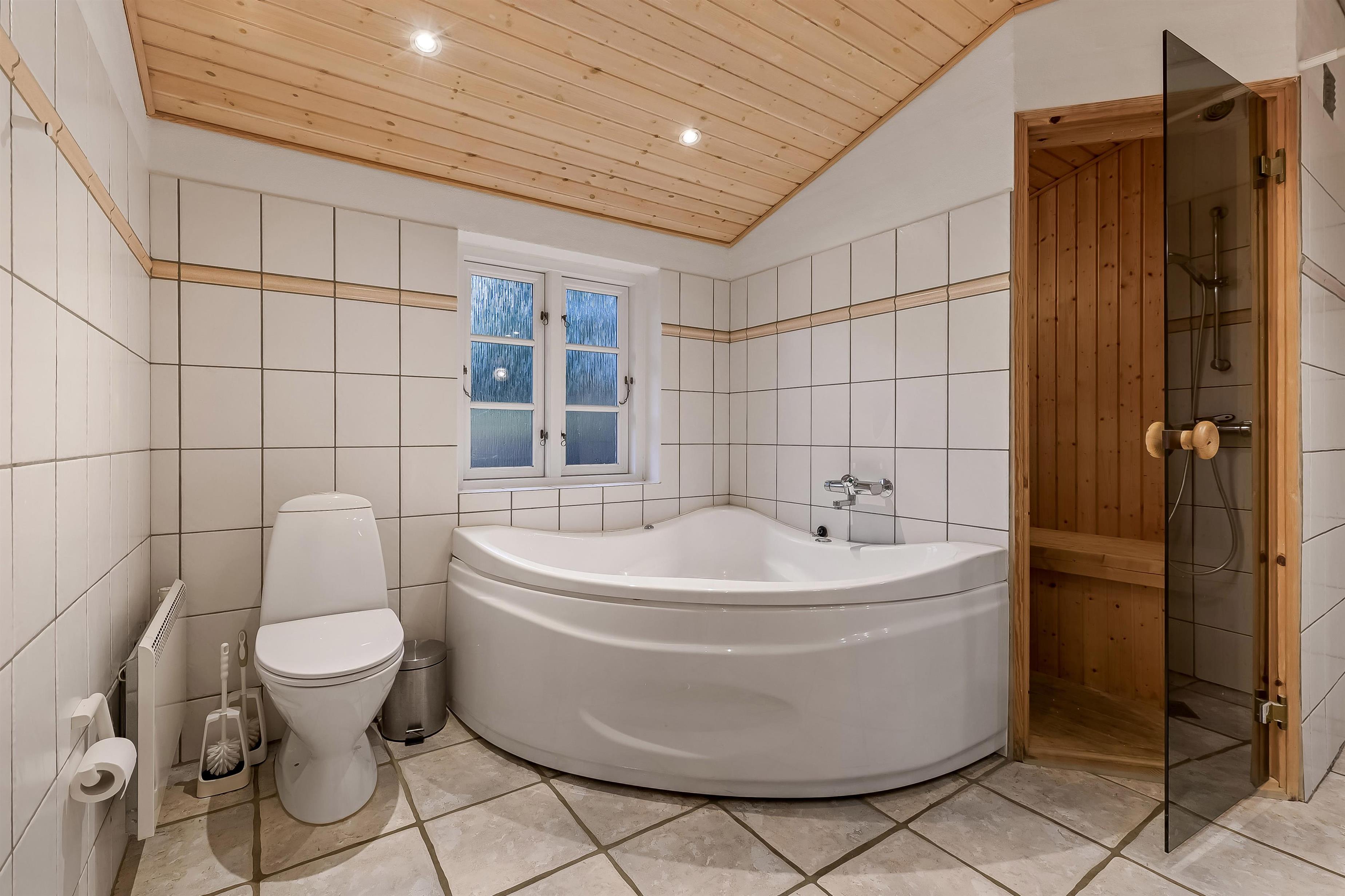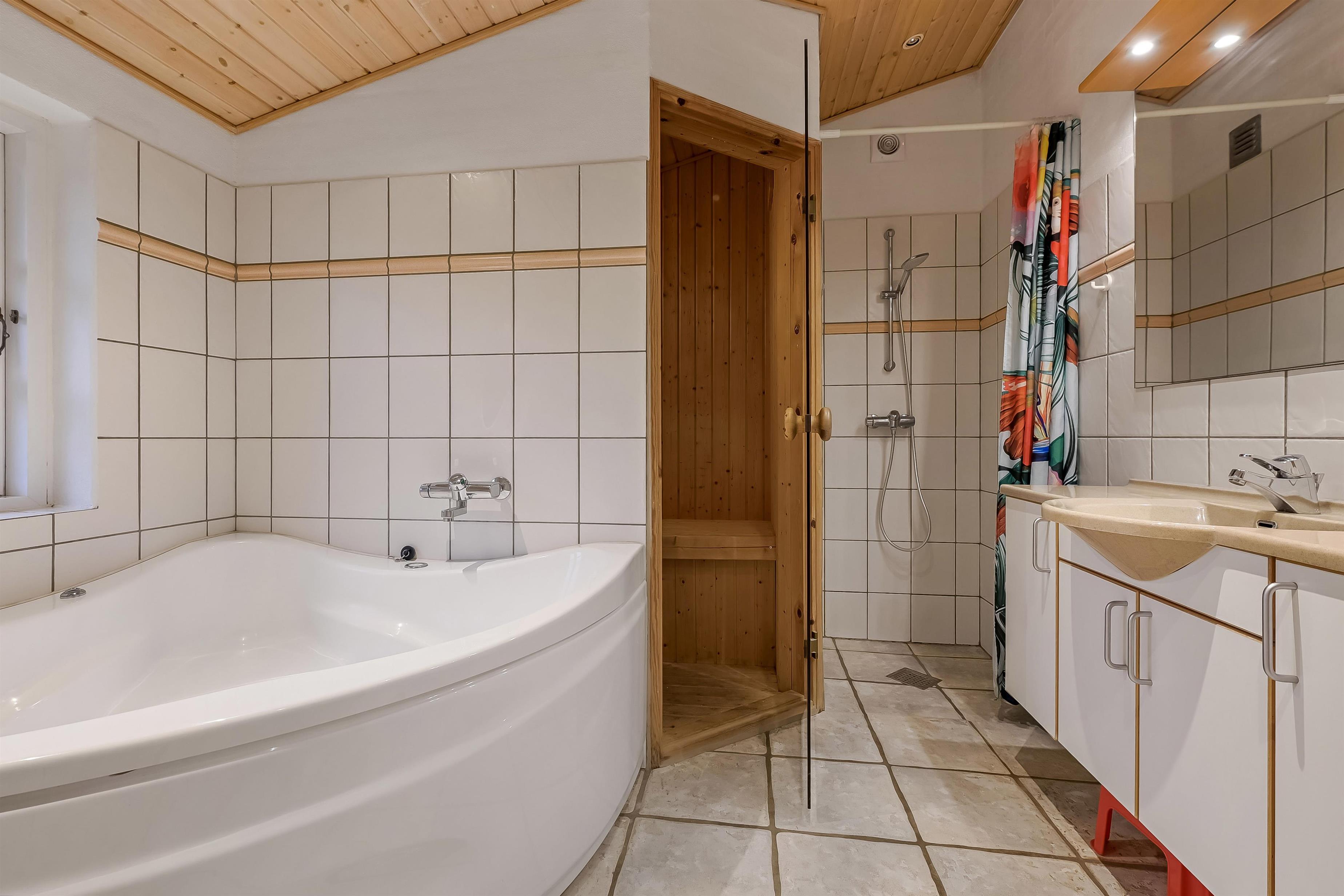 Das Haus verfügt über zwei attraktive Badezimmer – eines mit Dusche und ein weiteres als kleines Wellnessparadies mit Whirlpool und Sauna. Hier kannst du wunderbar entspannen und neue Energie tanken.