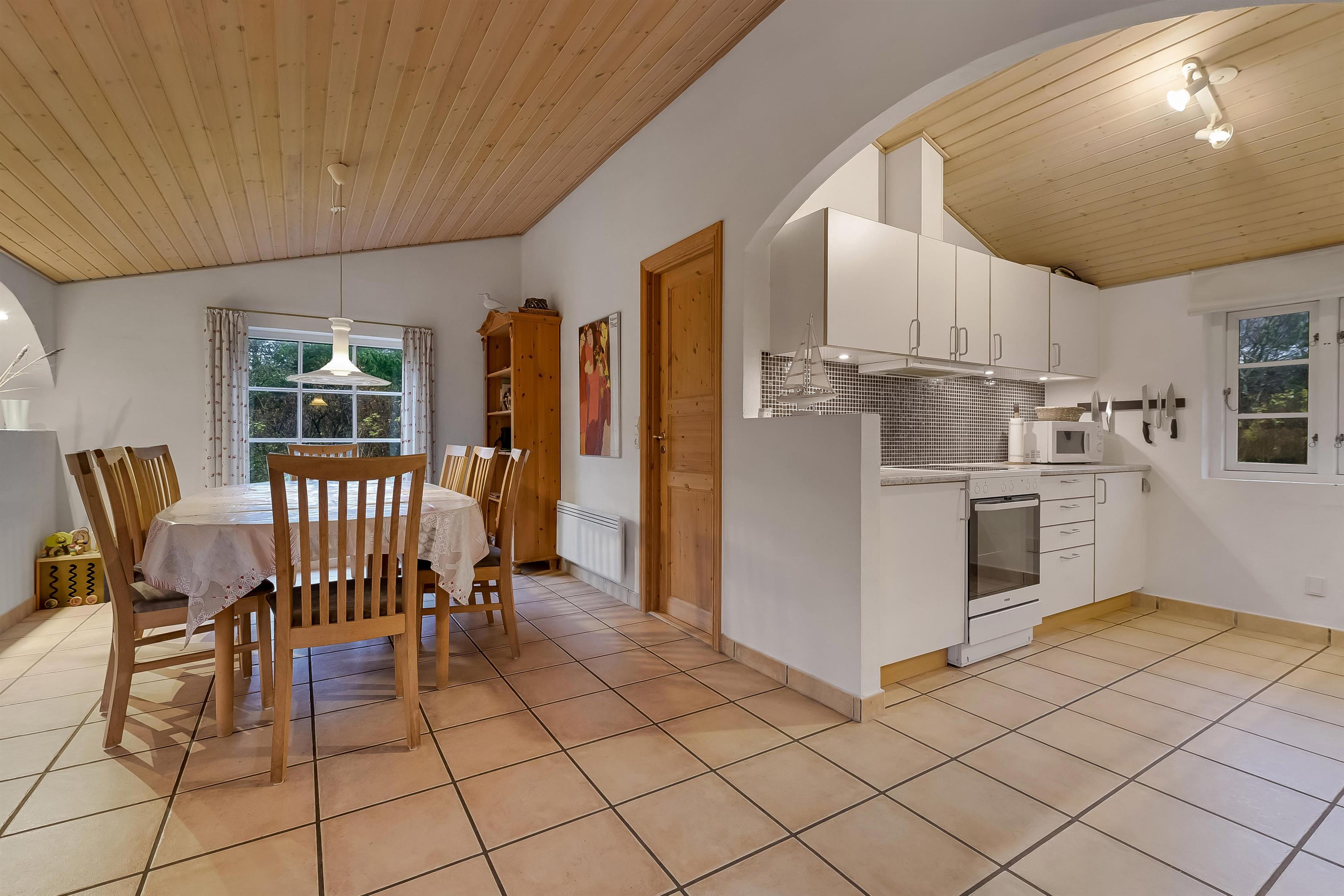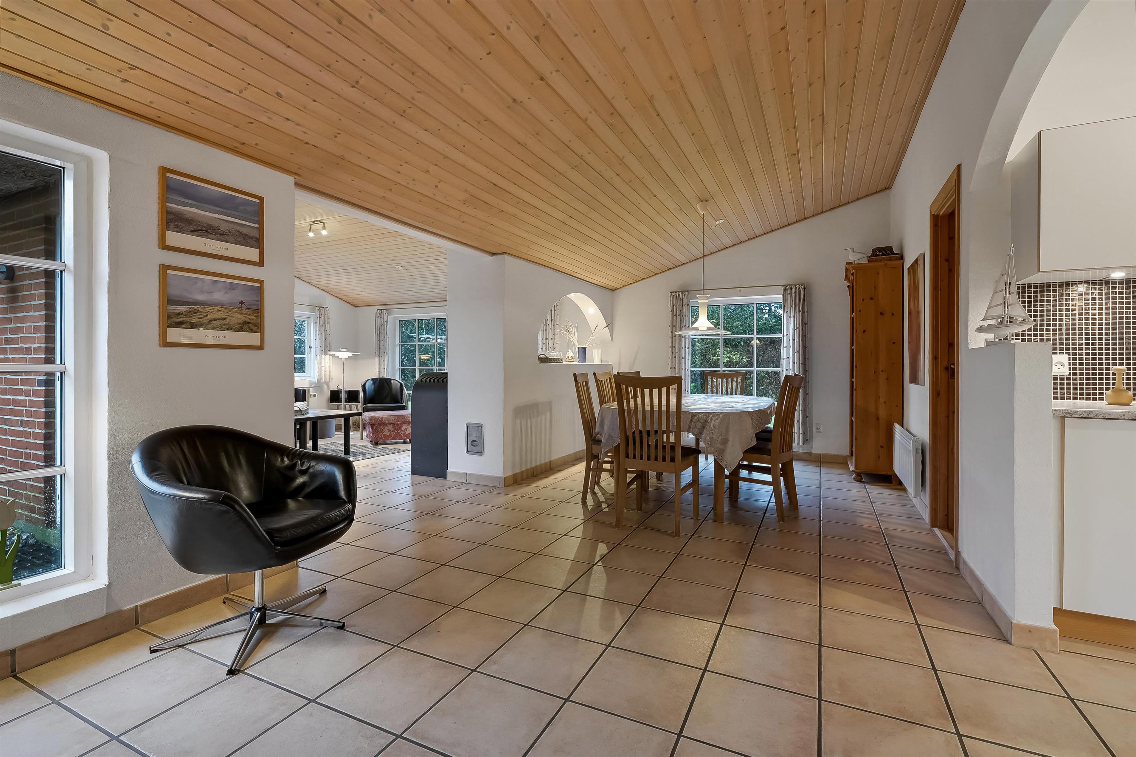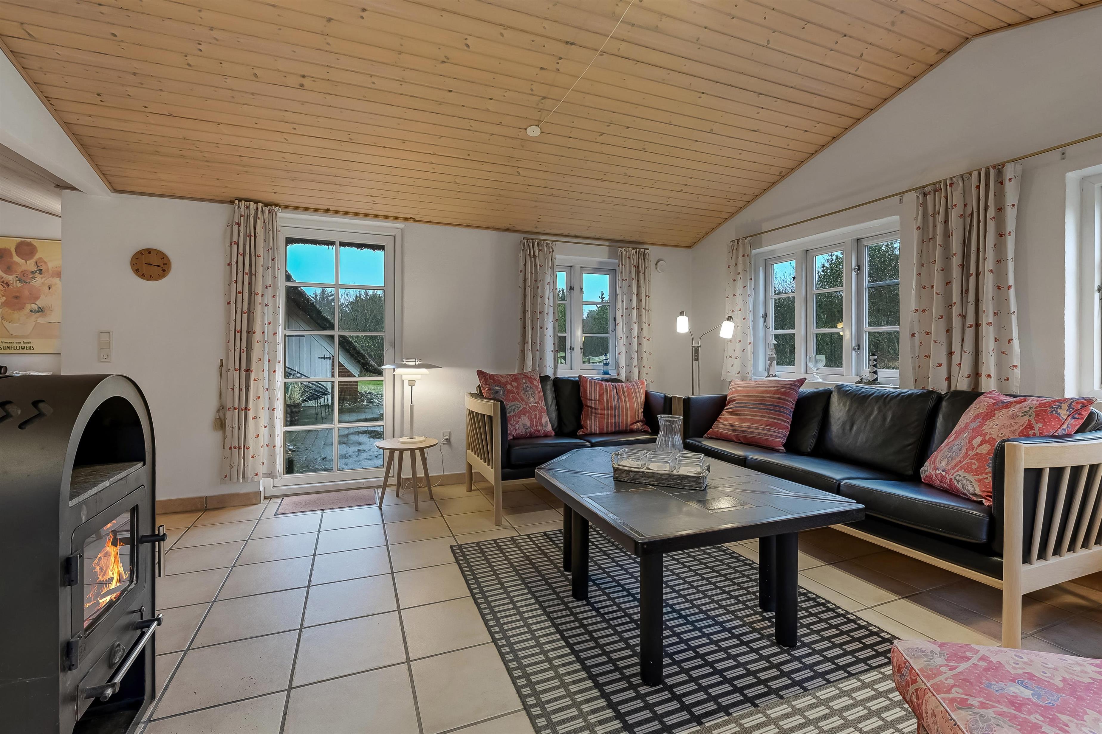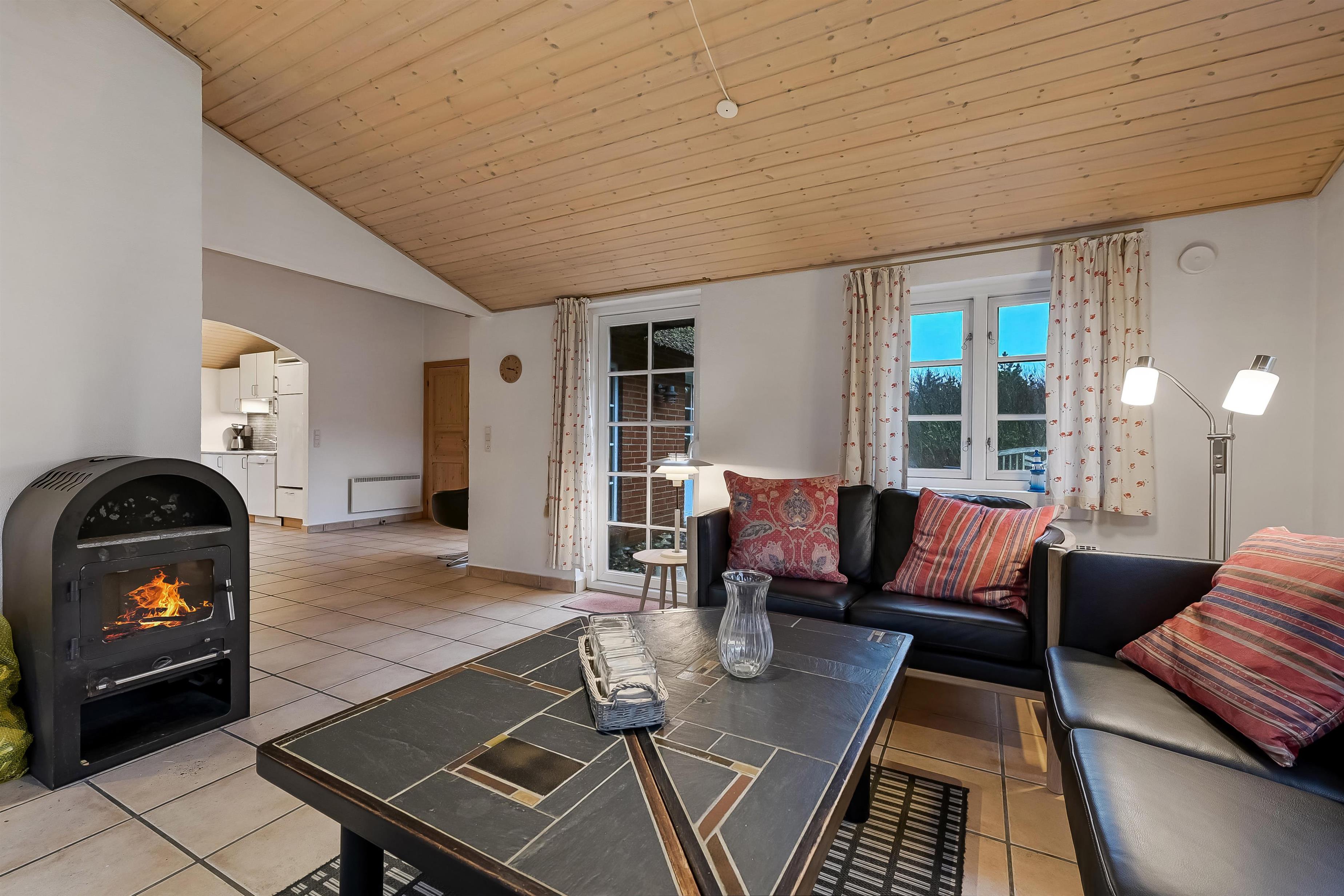 Das 117 qm große Ferienhaus ist geschmackvoll eingerichtet und überzeugt durch eine gelungene Kombination aus modernem Komfort und klassischer Gemütlichkeit. Der große Wohn- und Küchenbereich bildet das Herz des Hauses – hell, freundlich und mit stilvollen Möbeln, schönen Fliesenböden und einem Kaminofen, der für Wärme und Behaglichkeit sorgt, wenn der Wind draußen weht.
