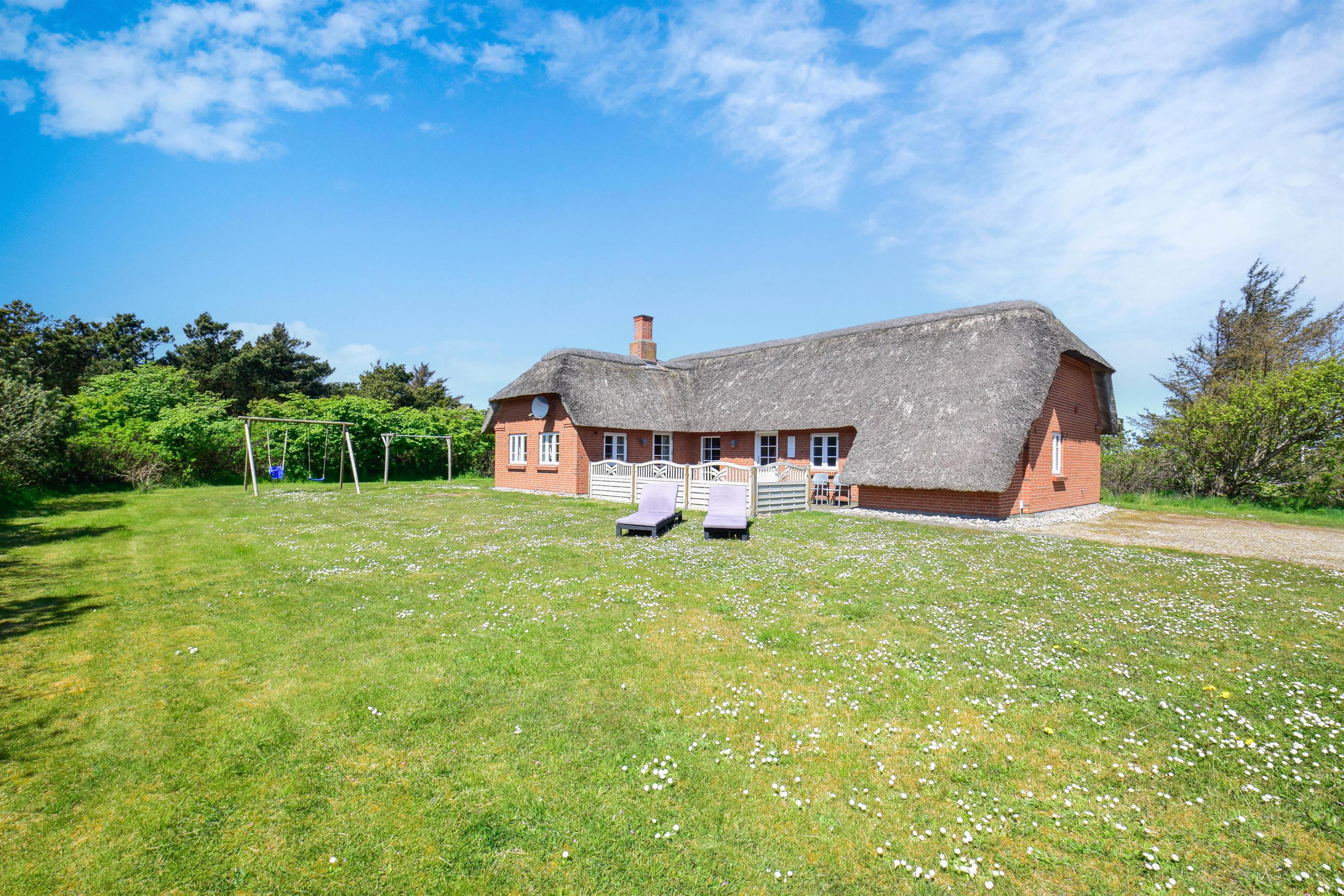 Nur wenige Gehminuten vom breiten, weißen Sandstrand entfernt liegt dieses wunderschöne Luxusferienhaus – ein echtes Qualitätsferienhaus, das Komfort, Atmosphäre und dänische Handwerkskunst perfekt vereint. Mit seinem Reetdach, der gemauerten Fassade und den liebevollen Details strahlt das Haus klassischen westjütländischen Charme aus – kombiniert mit modernem Luxus für einen unvergesslichen Urlaub.