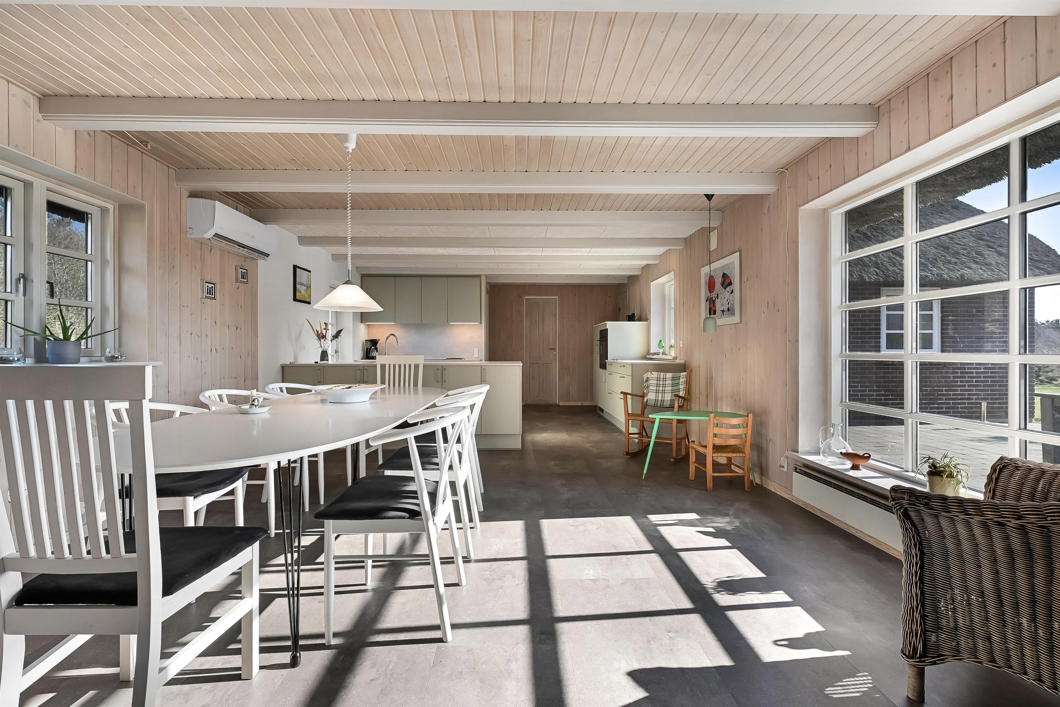 Ein helles, charmantes und gepflegtes Ferienhaus, in dem moderner Komfort auf klassische dänische Gemütlichkeit trifft. Hier findest du Ruhe und Raum für Erholung, ein Aktivitätszimmer für Spaß und Abwechslung sowie eine moderne Wohnküche, die zu gemeinsamen Stunden einlädt – das ganze Jahr über.