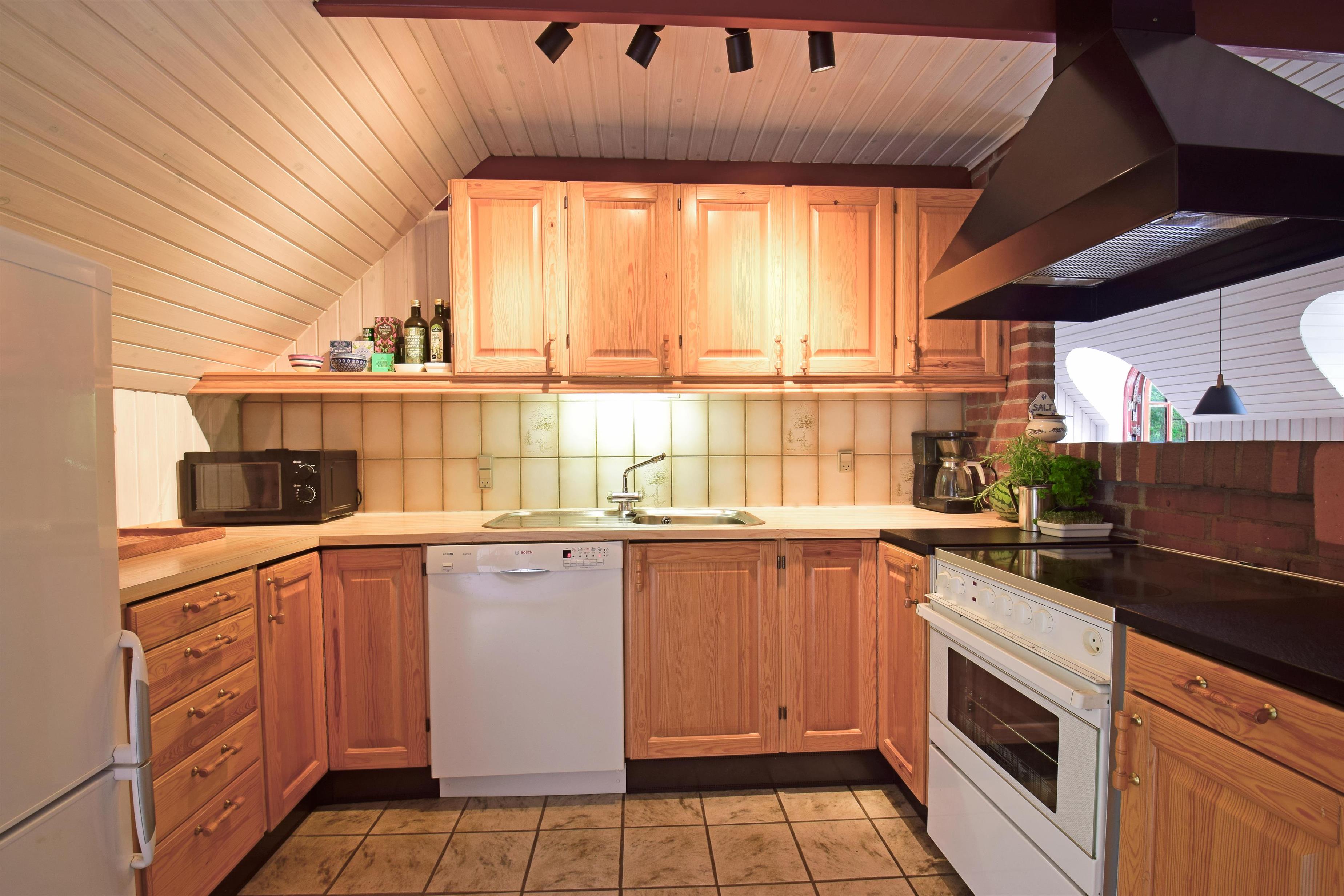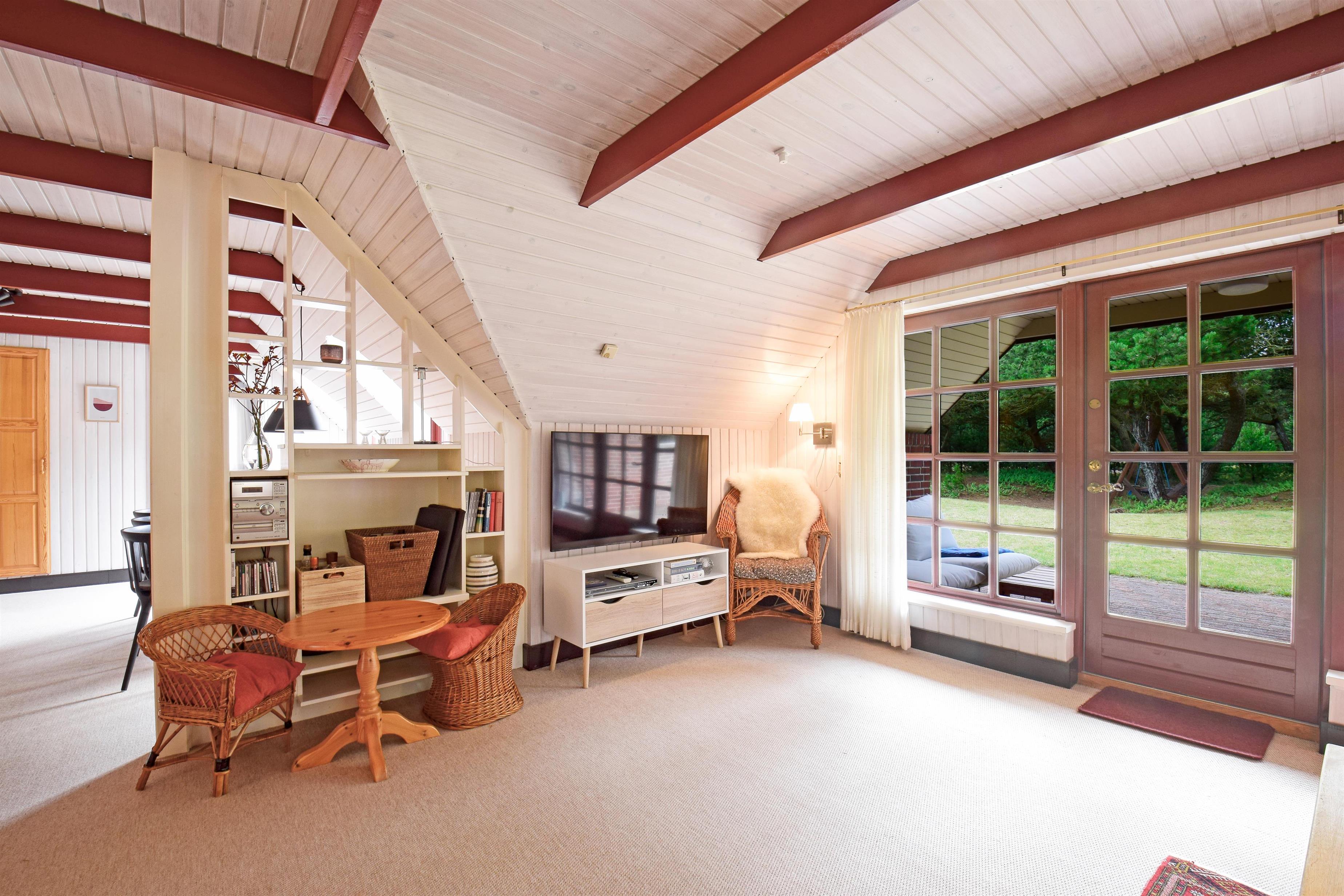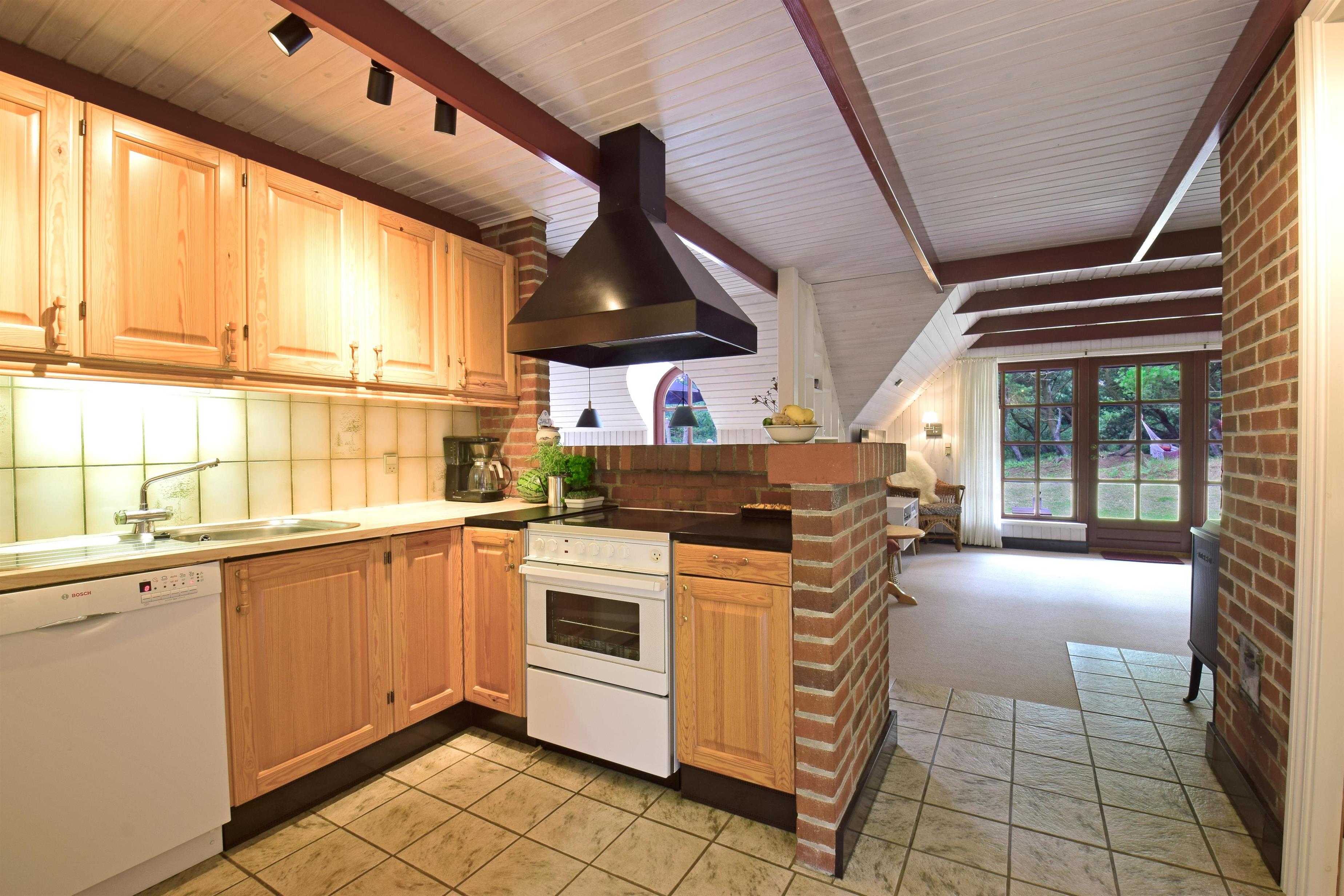 Die gut ausgestattete Küche ist offen mit dem Essbereich verbunden, von dem aus du direkt auf die schöne Terrasse gelangst – ideal für gemeinsame Mahlzeiten an der frischen Luft. Das großzügige Wohnzimmer verfügt über einen Kaminofen, TV und direkten Zugang zu einer teilweise überdachten Terrasse, auf der du die Abendsonne und die frische Meeresbrise genießen kannst.