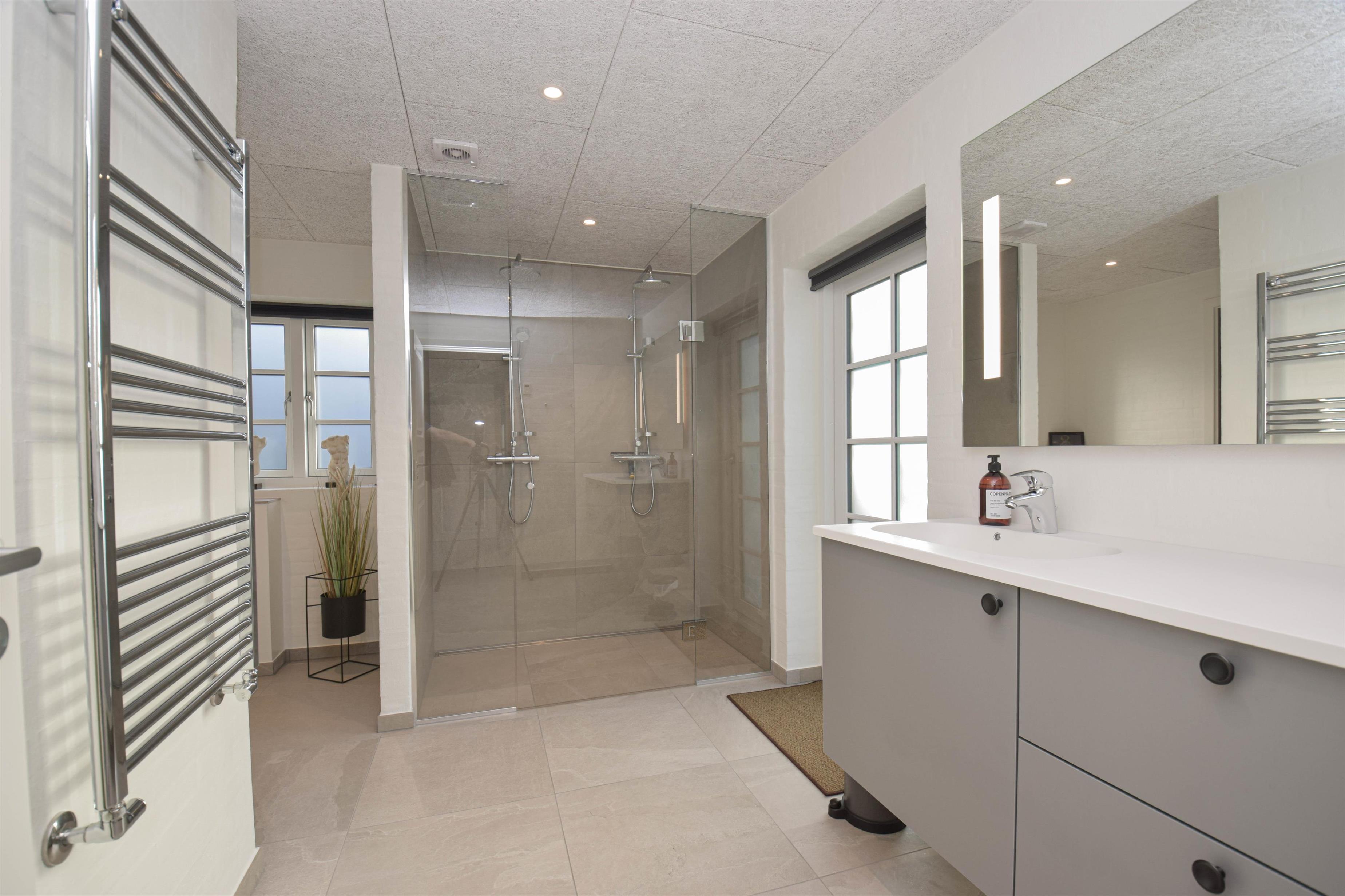 Großes Badezimmer mit Doppel-Dusche, Sauna und Zugang zur Terrasse