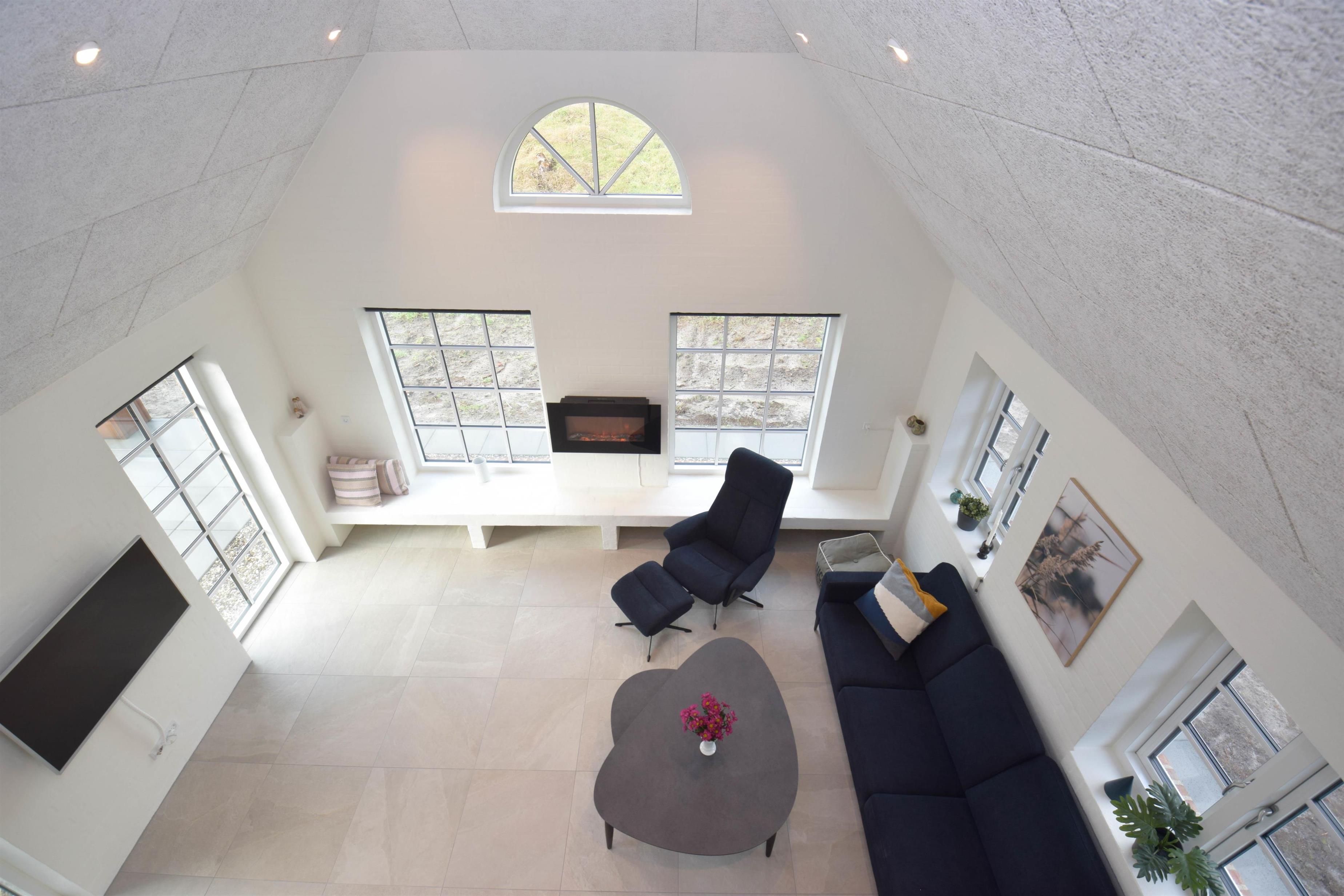 Das Haus ist modern und großzügig gestaltet, mit großen Fenstern, die viel Licht hereinlassen und die Natur zum Teil des Wohnraums machen.