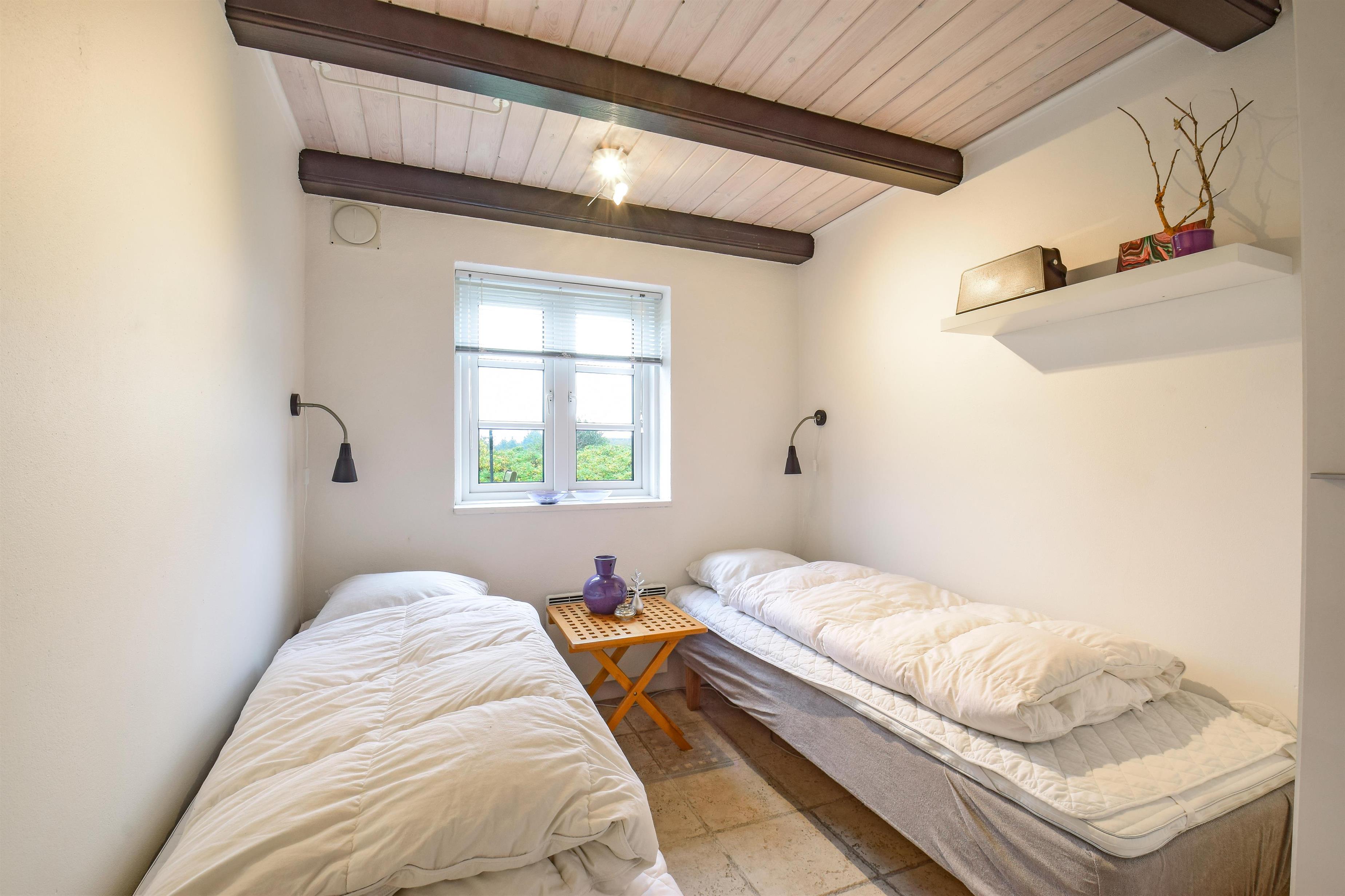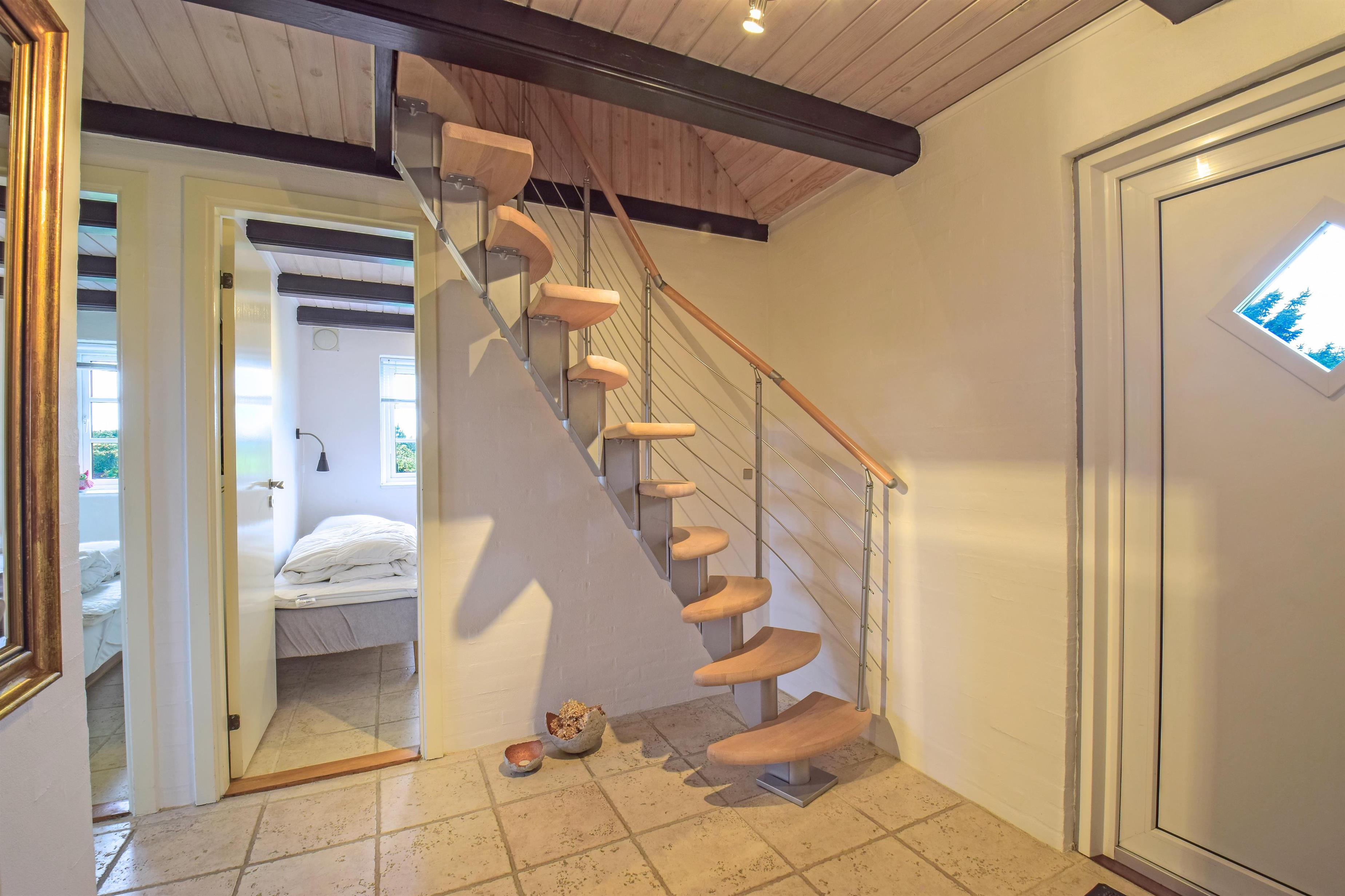 Das Ferienhaus ist mit viel Liebe zum Detail und mit Fokus auf Komfort eingerichtet. Im Eingangsbereich befindet sich eine großzügige Diele mit Treppe zum Obergeschoss, wo sich ein helles Schlafzimmer mit zwei Einzelbetten befindet – ideal für Gäste oder als zusätzlicher Rückzugsort.