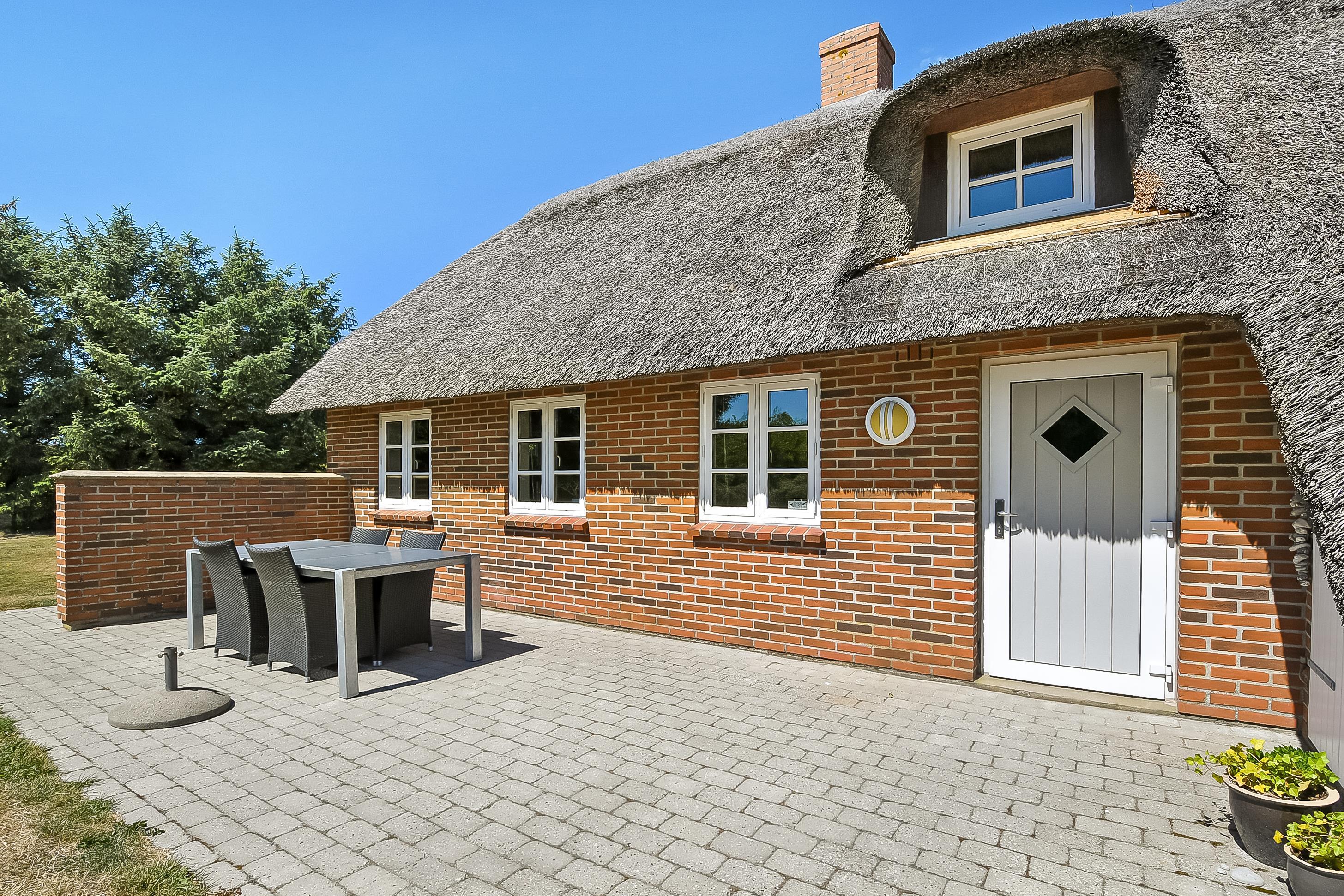 Nur etwa 800 Meter von der rauschenden Nordsee entfernt, mitten in der wunderschönen westjütländischen Natur, liegt dieses charmante, gemauerte Ferienhaus mit Reetdach – ein Haus voller Atmosphäre, Wärme und klassischer dänischer Gemütlichkeit. Hier findest du den idealen Ort für einen erholsamen Urlaub fernab vom Lärm der Großstadt – umgeben von Dünen, weiter Landschaft und frischer Meeresluft.