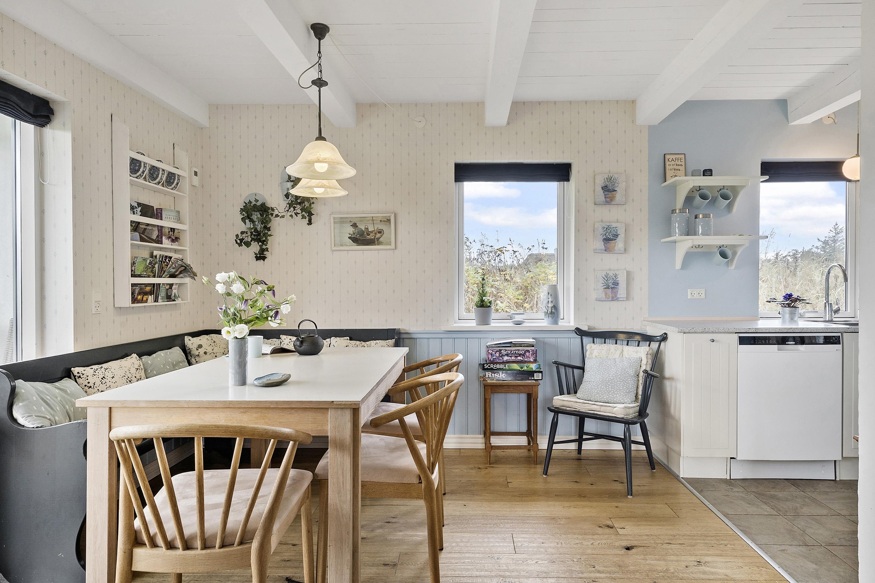 Dieses wirklich gemütliche Ferienhaus von ca. 90 qm liegt auf einem schönen 2.000 qm großen Naturgrundstück, umgeben von Ruhe und Frieden. Das Haus wurde 2009 komplett renoviert und präsentiert sich heute als charmantes und einladendes Refugium, in dem mit viel Liebe zum Detail und stilvollen Lösungen gearbeitet wurde – ein Ort, an dem du dich sofort wohlfühlst.