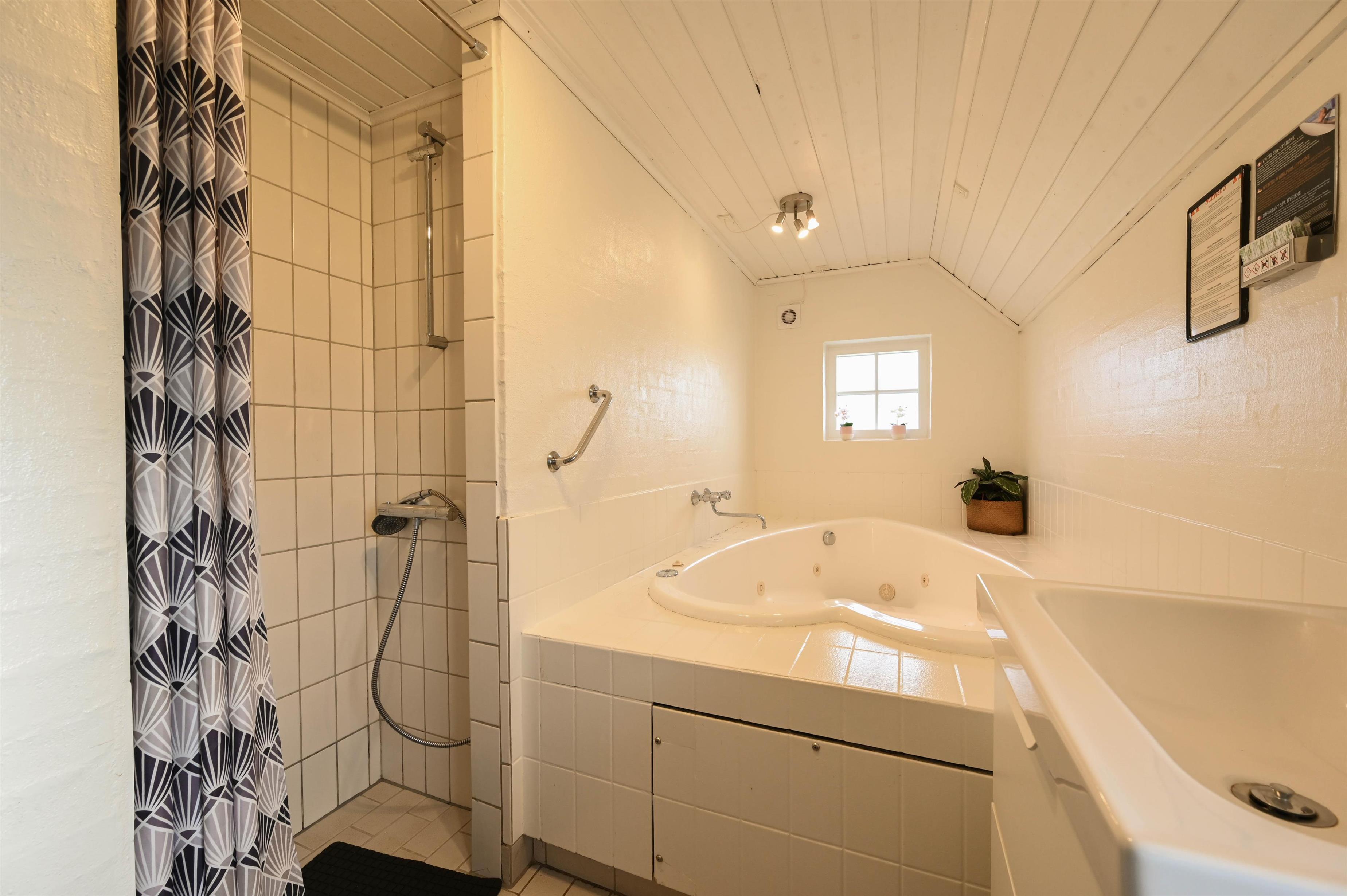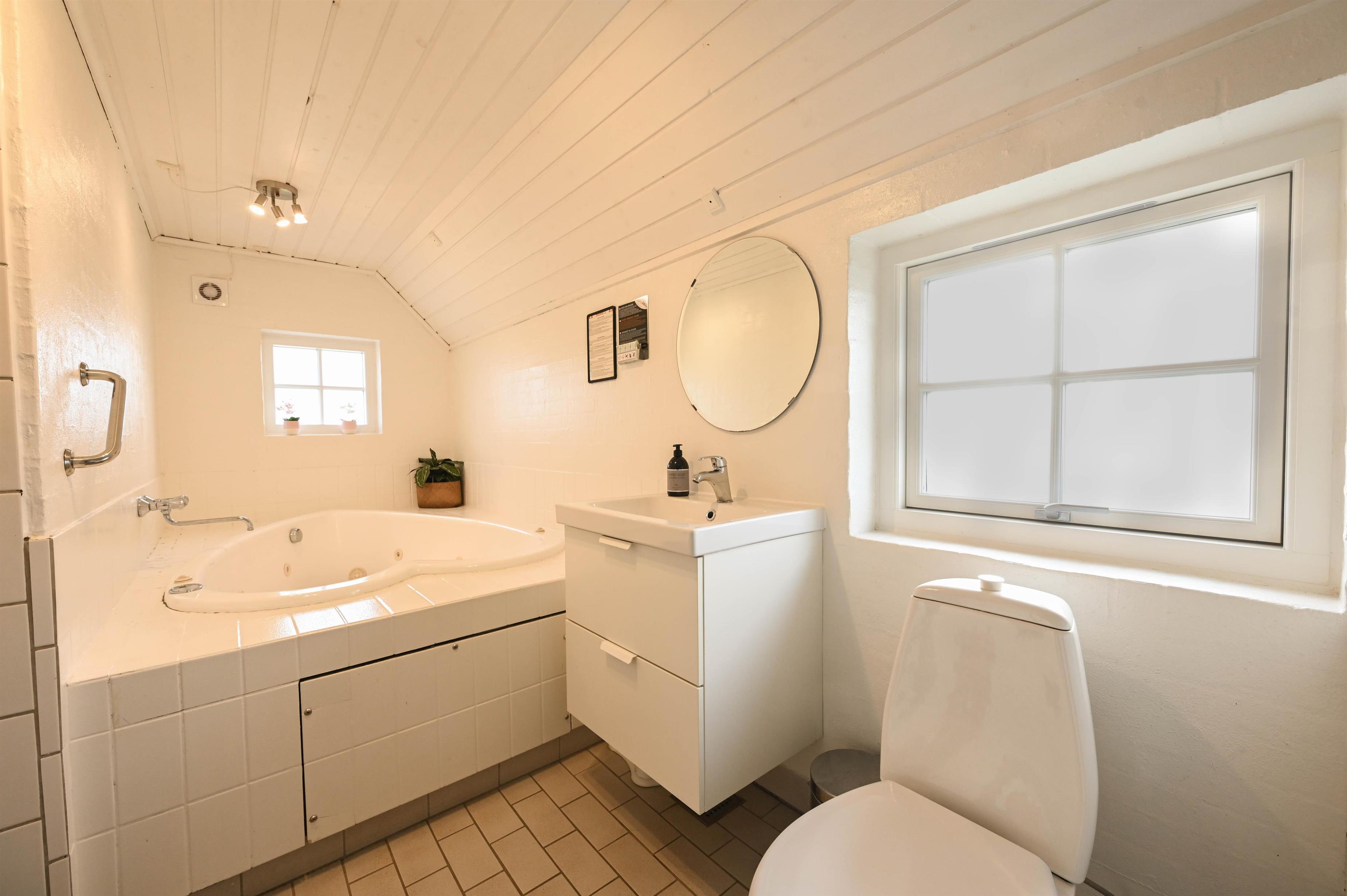 Helles Badezimmer mit Whirlpool, Sauna und Fußbodenheizung