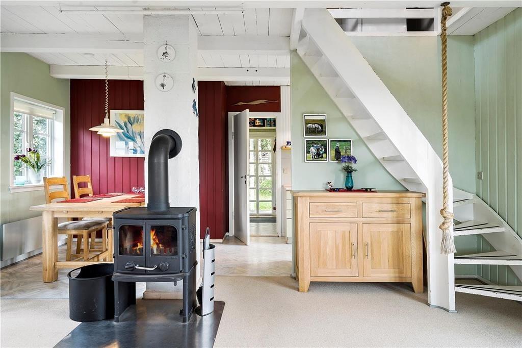Ländlicher Charme durchzieht dieses wunderschöne Ferienhaus. Im Inneren empfängt euch ein angenehmes Gefühl von Ruhe – unterstützt von den hellgrünen Wänden im Wohnzimmer, die eine entspannte Atmosphäre schaffen. Wenn ihr von einem schönen Spaziergang in der Umgebung zurückkommt, macht den Kamin an und genießt die wohlige Wärme und das gemütliche Knistern, während ihr plant, was ihr am nächsten Tag entdecken möchtet. Das Wohnzimmer ist offen mit der gemütlichen Essecke und der gut ausgestatteten Küche verbunden – perfekt für kulinarische Erlebnisse mit der ganzen Familie.
