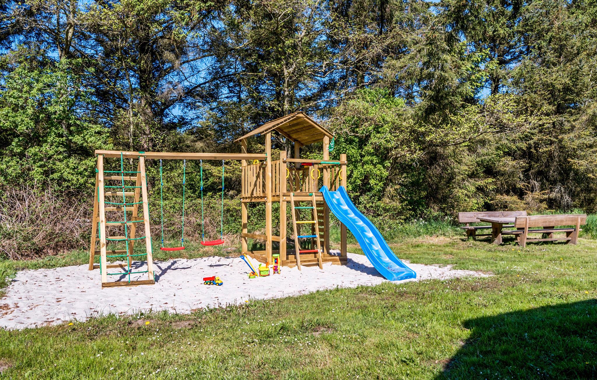 Auf der sonnigen Terrasse können Sie in großer Runde unter freiem Himmel grillen und speisen, während sich die jungen Gäste an den vielseitigen Spielmöglichkeiten im weitläufigen Garten erfreuen. Gönnen Sie sich wohlige Erlebnisse im Whirlpool und tanken Sie Sonne auf den bequemen Liegen.