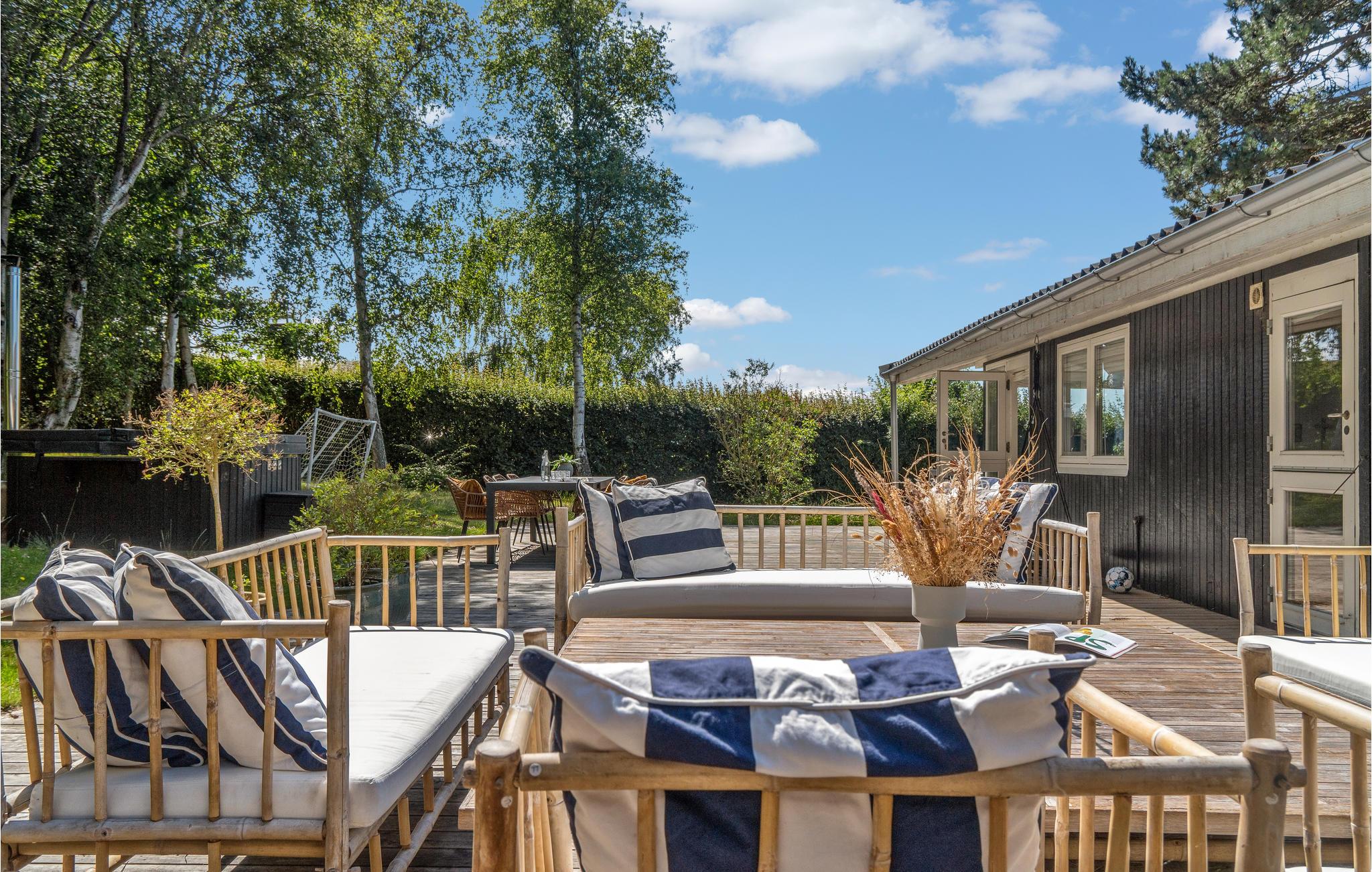 Packen Sie Ihre Kinder ein und freuen Sie sich auf Ihren Urlaub in diesem lichtdurchfluteten und familienfreundlichen Ferienhaus in Vejby Strand. Das Haus ist eine wahre Entspannungs- und Unterhaltungsoase für Sie und Ihre Lieben. Spiel und Spaß kommen hier nicht zu kurz, denn Spielzeug und Spiele stehen sowohl im Haus als auch im Garten für Kinder allen Alters bereit. Kochen Sie in der Küche Ihre Lieblingsgerichte und genießen diese auf der großen, sonnigen Holzterrasse. Springen Sie anschließend in den Pool und erfrischen und entspannen sich, während sich die Kinder auf dem Trampolin auspowern.
