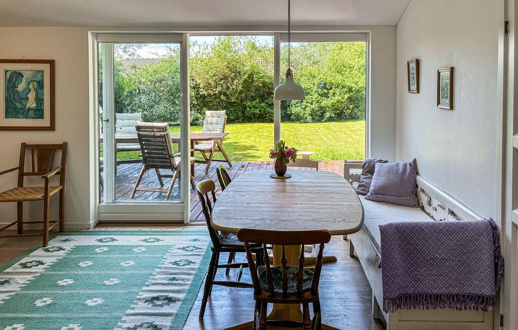 Ihr behagliches Ferienhaus ist der ideale Ort für entspannte Ferientage mit Ruhe, Natur und gemütlicher Atmosphäre. Genießen Sie die geschützte Lage, das üppige Grün rundherum und kurze Wege zum Meer. Der helle Wohn- und Essbereich ist mit Liebe zum Detail eingerichtet. Nehmen Sie Platz an der Eckbank, versammeln Sie sich am Esstisch mit Blick auf die Terrasse oder entspannen Sie im Wohnzimmer auf dem Sofa.