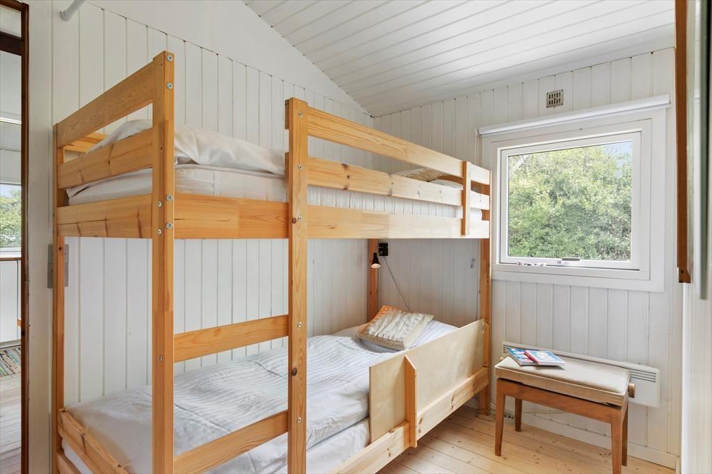 De to soveværelser er indrettet med henblik på at give en god nats søvn. Det ene soveværelse har en dobbeltseng og en skøn udsigt over landskabet, mens det andet soveværelse er udstyret med køjesenge – ideelt for børnene eller gæster.