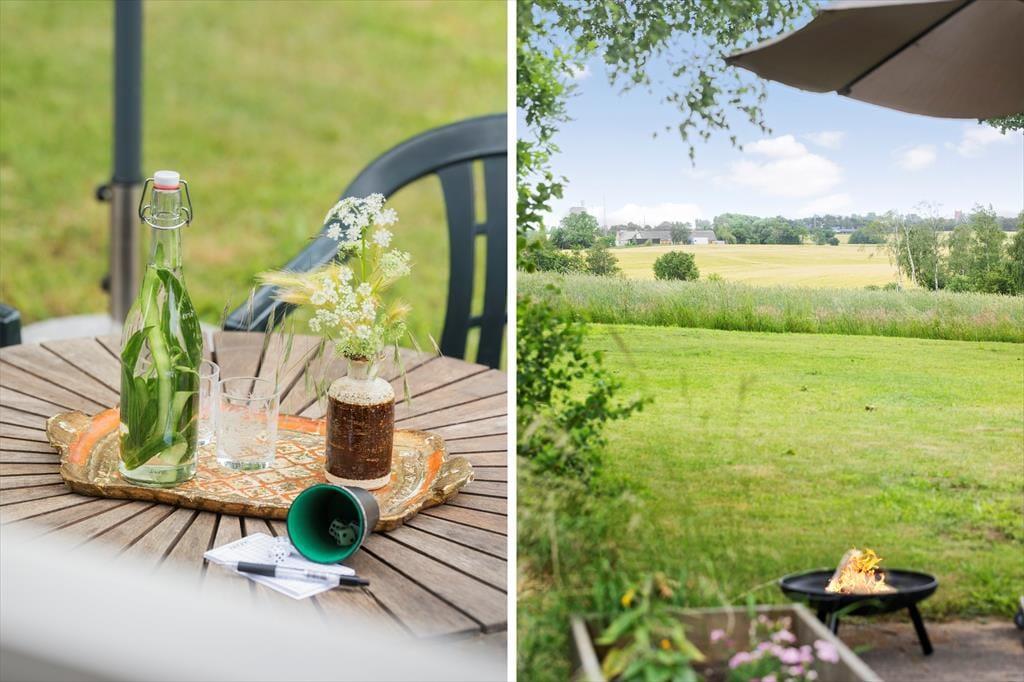 Udendørs er der rig mulighed for at nyde de gode stunder med flere hyggelige siddepladser på de to terrasser. Her kan du slappe af og nyde den skønne udsigt over landskabet. Derudover byder haven på en stor græsplæne med masser af plads til leg og aktiviteter for både børn og voksne.
