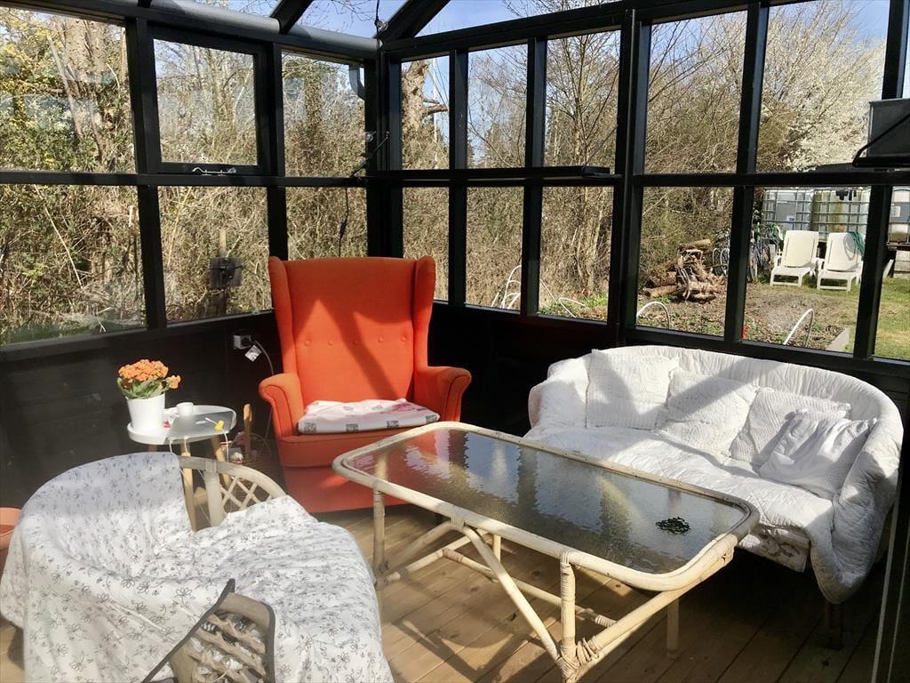 Der Garten ist eine grüne Oase, in der das Ferienleben in ruhigem Tempo stattfindet. Ein besonderes Highlight ist das schöne Orangerie, das schnell zum natürlichen Treffpunkt wird. Hier genießt ihr den Morgenkaffee im ersten Sonnenlicht, esst gemeinsam in geschützter Umgebung oder bleibt sitzen, wenn der Abend hereinbricht und die Gespräche weitergehen. Der Garten bietet viel Raum zum Entspannen, Lesen und Genießen der Stille.