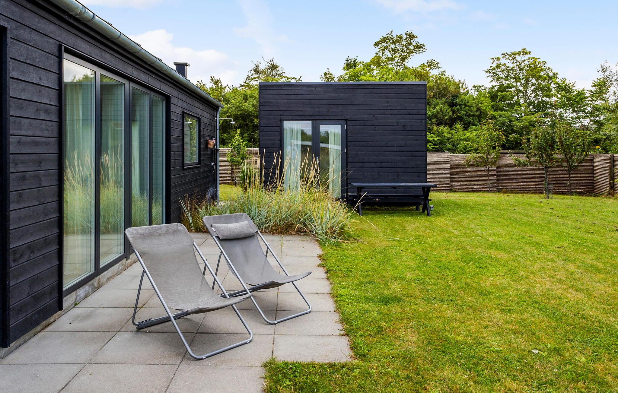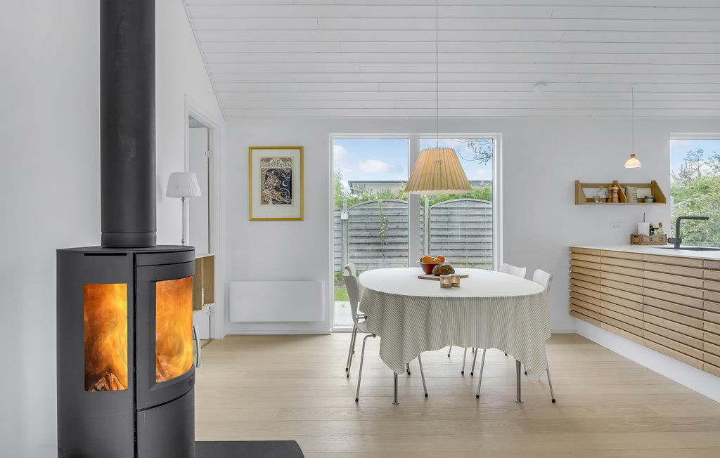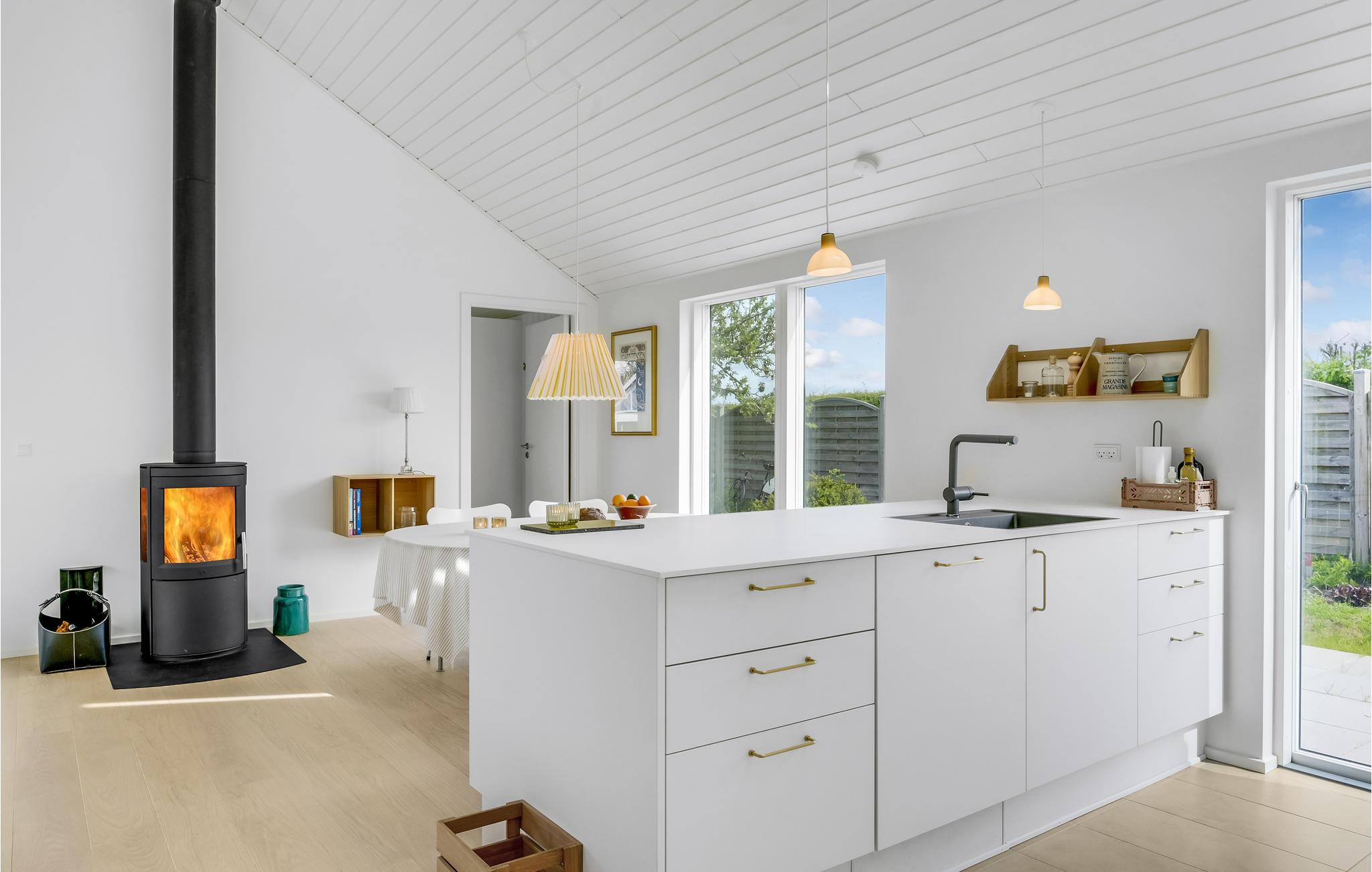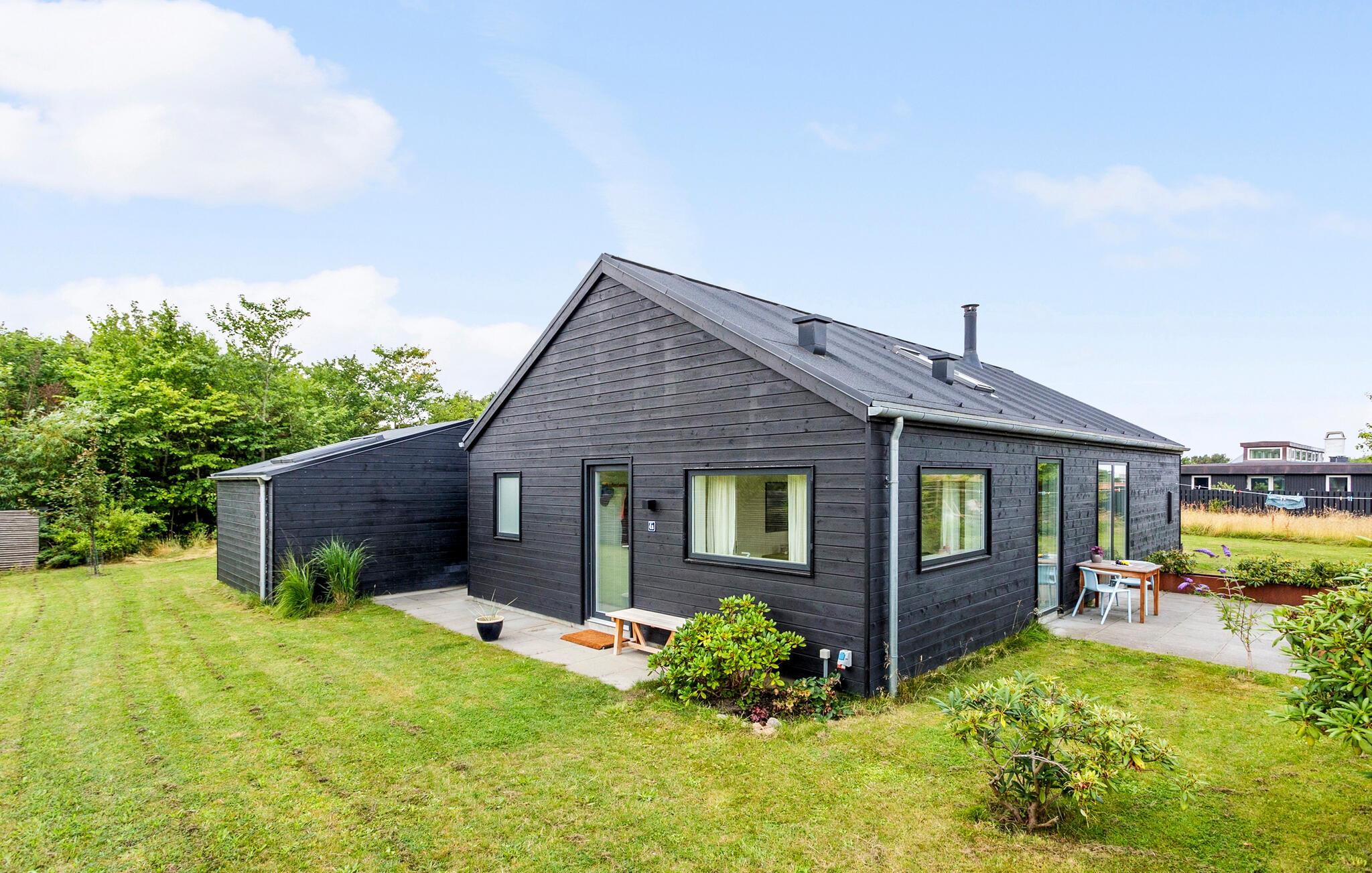 Modernes Ferienhaus in Vejby mit grüner Natur, Kaminofen und Strandnähe für entspannte Urlaubstage.