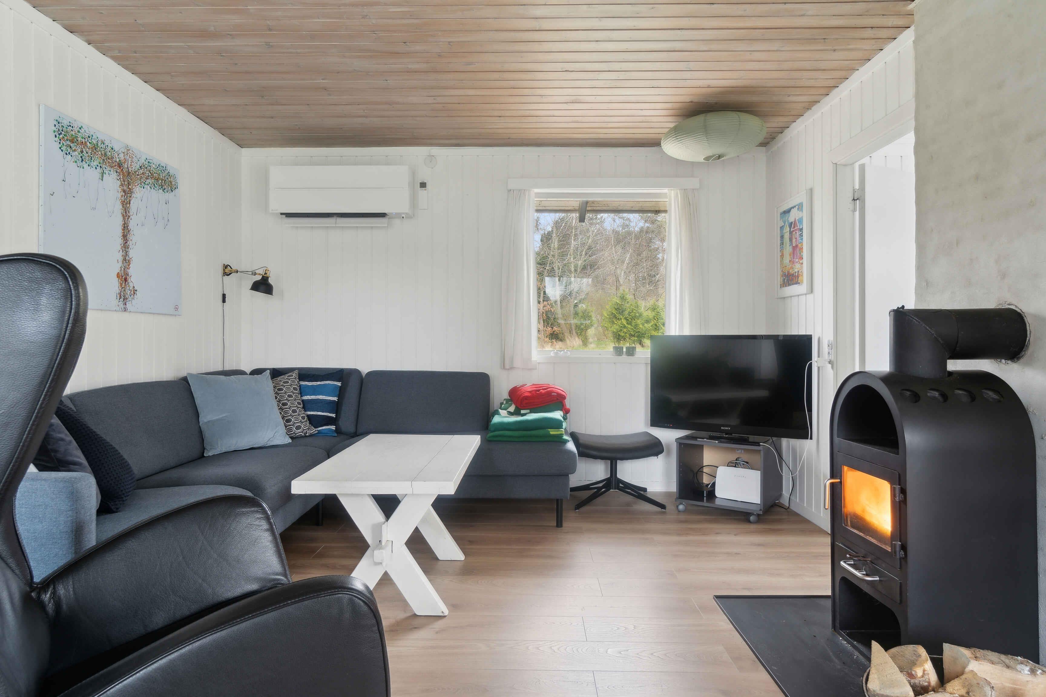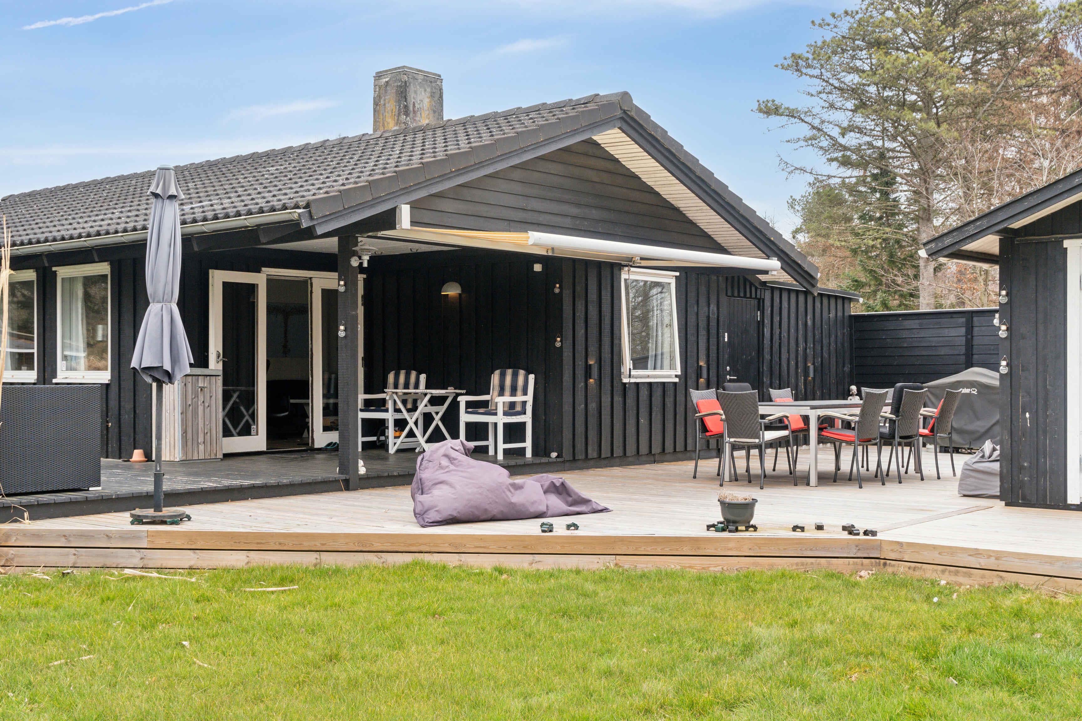 Das Ferienhaus befindet sich in einer ruhigen Umgebung und bietet einen sicheren und entspannenden Rahmen für die ganze Familie. Mit drei Schlafzimmern und sieben Schlafplätzen gibt es ausreichend Platz für Kinder und Erwachsene. Das Wohnzimmer verfügt über einen großen ausziehbaren Esstisch und bietet Unterhaltung über YouSee, Disney, Netflix und blitzschnelles Glasfaserinternet. Die Küche ist neu seit 2024 und mit allem ausgestattet, was Sie für die Urlaubskocherei benötigen. Draußen erwartet Sie eine große Terrassenlandschaft mit beweglichen Sitz- und Liegemöglichkeiten sowie einer Markise für Schatten. Der Garten ist eingezäunt, mit großer Rasenfläche, eingelassenem Trampolin und Platz zum Spielen.? Es gibt einen Weber-Grill, Kissenboxen und eine Spielzeugkiste – bereit für Sommertage und gemütliche Abende. Im Schuppen finden Sie eine Waschmaschine, einen Trockner und Kissen für die Gartenmöbel.? Die Gegend ist kinderfreundlich und perfekt für Entspannung, Spaziergänge oder Fahrradtouren in der Natur. Nur 800 Meter vom Haus entfernt finden Sie den Strand – ideal für ein Bad oder lange Tage im Sand. Die nähere Umgebung bietet charmante Hofläden, lokale Cafés und kleine Handwerker.? In der Nähe liegt Heatherhill, eine malerische Hügellandschaft mit Meerblick und geschützten Gebieten. Sie können auch einen Ausflug nach Tisvildeleje mit lebhaften Sommeraktivitäten und gemütlicher Atmosphäre unternehmen. Achtung: Wird nicht für gewerbliche Nutzung vermietet.