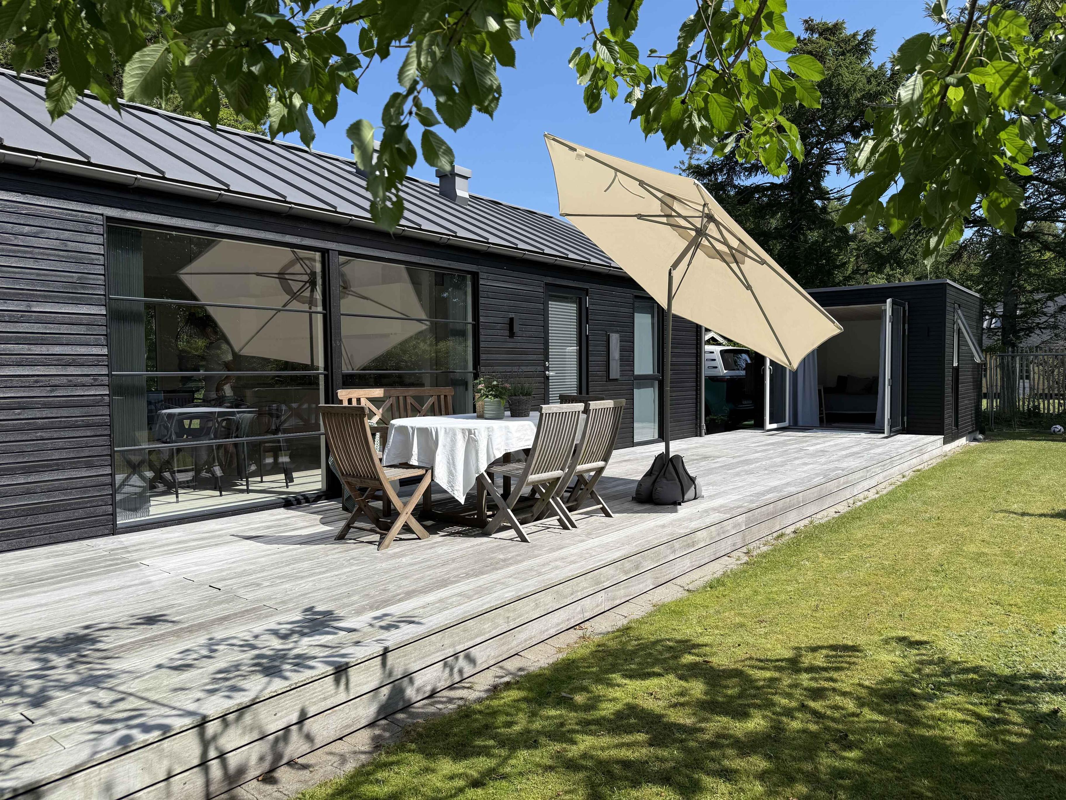 Modernes, stilvolles Ferienhaus von 2016 an der Nordküste Seelands. Kurzer Weg zum Strand und viele schöne Erlebnisse in Nordseeland. Großer, ungestörter Garten zum Entspannen und Spielen.