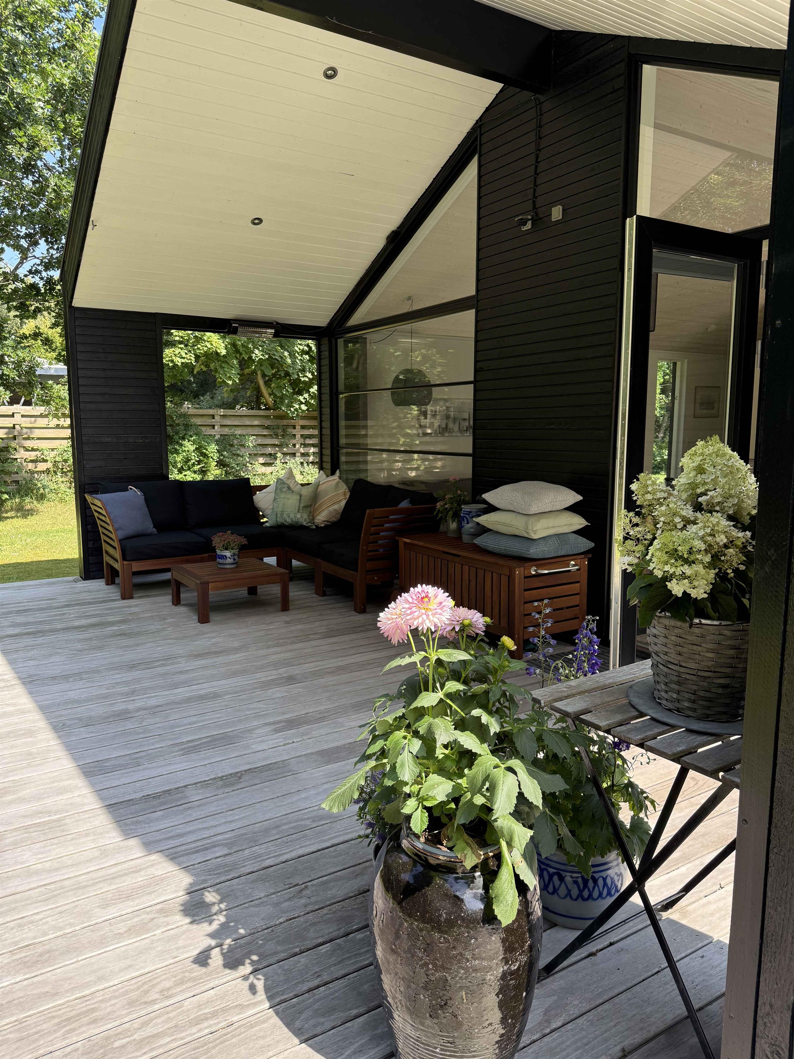 Hier haben Sie die Möglichkeit, in einem schönen Ferienhaus auf einem großen, bewachsenen Grundstück zu wohnen, nur etwa 250 Meter vom Wasser entfernt. Hier gibt es eine Wärmepumpe, Highspeed-Internet und eine Ladestation für Elektroautos. Das Haus ist gut eingerichtet und verfügt über eine schöne Küche mit allem, was man braucht, in offener Verbindung mit dem Wohnzimmer. Es gibt einen hohen Deckenbereich, der ein wirklich gutes Raumgefühl vermittelt. Das Wohnzimmer hat sowohl einen gemütlichen Essbereich als auch eine Sitzecke mit einem großen Sofa. Chromecast-TV und ein Hochstuhl sind ebenfalls vorhanden. Vom Wohnzimmer aus gelangt man auf die Terrasse. Es gibt ein Schlafzimmer mit einem Doppelbett und ein Zimmer mit einem Einzelbett und einer zusätzlichen Schlafgelegenheit. Außerdem gibt es eine Galerie mit einem Einzelbett. Schließlich gibt es ein nahegelegenes Annex mit direktem Zugang zur Terrasse und zwei Schlafplätzen, sodass die Schlafmöglichkeiten recht flexibel sind. Schönes Badezimmer mit Toilette, Dusche, Fußbodenheizung und Waschmaschine. Außen gibt es eine schöne, große offene Terrasse von mehr als 60 m², sowie eine überdachte Terrasse mit Gartenmöbeln und Liegen, in die man sich zurückziehen kann, wenn es spät am Abend oder die Temperaturen nicht ganz ideal sind. Es gibt auch einen Infrarot-Terrassenheizer zur Verfügung. Rågeleje ist einer der traditionsreichen Badeorte an der Nordküste von Seeland. Am Strand stehen Reihen von bonbonfarbenen Badhäusern – charakteristisch für Rågeleje und ikonisch für die Nordküste. Neben dem Strand ist Rågeleje von schöner Natur umgeben. Auf den heidebewachsenen Hügeln bei Heatherhill grasen im Sommer die Schafe, und hier können Sie schöne Wanderungen unternehmen und die herrliche Aussicht genießen. Ganzjährig sind die Hänge zum Wasser ein beliebtes Ziel für Paraglider.