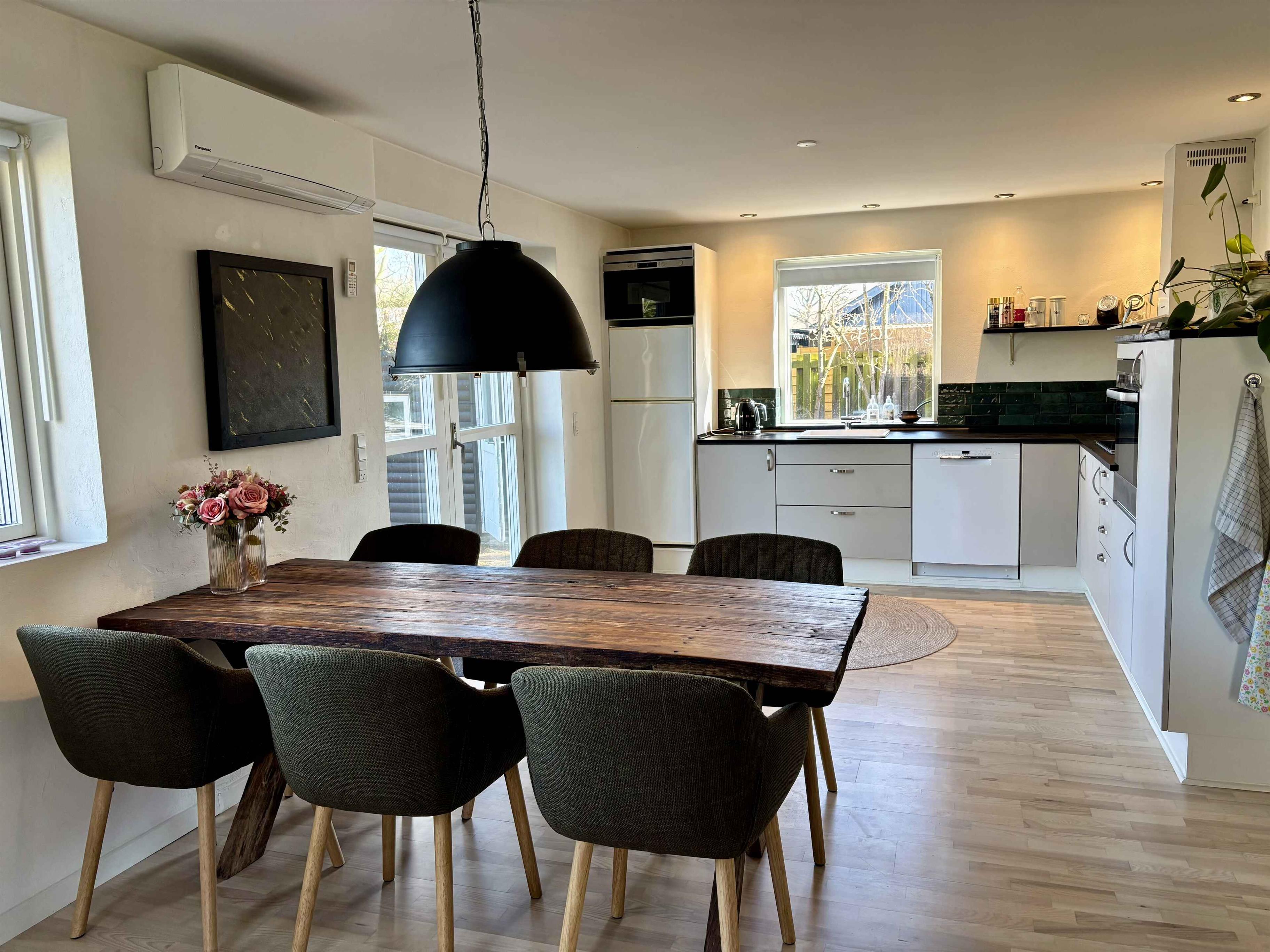 In dem charmanten Küsten- und Ferienort Rågeleje befindet sich dieses attraktive und neu renovierte (2018) Ferienhaus, nur 750 Meter vom Meer entfernt, in einem gemütlichen und bewachsenen Ferienhausgebiet. Das Haus bietet Platz für bis zu 6 Personen und verfügt über kostenloses Internet. Das helle und gut eingerichtete Wohnzimmer ist mit einem großen Ecksofa sowie einem einzigartigen, rustikalen Esstisch mit viel Platz ausgestattet. Hier lassen sich entspannte Stunden in angenehmer Atmosphäre verbringen. Im Wohnzimmer steht ein Chromecast zur Verfügung, sodass Sie Ihre eigenen Streaming-Dienste nutzen können. Doppelte Glastüren führen direkt auf die schöne Terrasse mit Blick ins Grüne. Das Haus ist in hellen, weißen Farbtönen gehalten, die in Kombination mit den hellen Holzböden und den besonderen Einrichtungselementen für ein freundliches und einladendes Gesamtbild sorgen. Die offene Küche ist unter anderem mit einem Einbaubackofen und einer Spülmaschine ausgestattet. Von der Küche aus haben Sie direkten Zugang zum Garten. Das Ferienhaus verfügt über 3 Schlafzimmer. Zwei der Schlafzimmer sind mit Einzelbetten (90 x 200 cm) ausgestattet, die je nach Wunsch zusammen- oder auseinander gestellt werden können. Das dritte Schlafzimmer – das Kinderzimmer – verfügt ebenfalls über zwei Einzelbetten (70 x 190 cm) mit guten Matratzen, sodass auch ein kleinerer Erwachsener hier bequem schlafen kann. Das Badezimmer bietet eine Dusche sowie Fußbodenheizung. Außerdem stehen eine Waschmaschine und ein Trockner zur Verfügung. Im Außenbereich befindet sich eine großzügige Terrasse von ca. 30 m² mit Gartenmöbeln und Grill. Ein Parkplatz steht auf dem Grundstück zur Verfügung. Rågeleje ist einer der historischen Badeorte an der Nordküste Seelands. Die alten Sommerhäuser liegen hoch oben auf der Böschung über der Küstenstraße, und am Strand stehen die charakteristischen gestreiften Badehäuschen. Die Küstenstraße verläuft über weite Strecken direkt am Meer, sodass man hier Wind und Wetter besonders intensiv erleben kann. An windigen Tagen lassen sich zahlreiche Kite- und Windsurfer beobachten. In der Umgebung gibt es zudem viele spannende Angebote aus den Bereichen Kunst, Geschichte und Gastronomie. Einkaufsmöglichkeiten finden Sie im ca. 10 km entfernten Helsinge. Helsingør liegt rund 40 km entfernt und bietet unter anderem das Schloss Kronborg sowie das sehenswerte Schifffahrtsmuseum. Kopenhagen erreichen Sie in etwa einer Stunde (60 km). Das Haus wird ausschließlich für Familienurlaube vermietet. Achtung: Wird nicht für gewerbliche Nutzung vermietet.