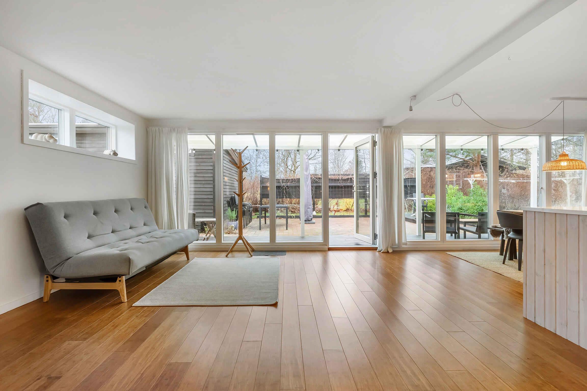 Helles Ferienhaus in Rågeleje mit großem Garten, Terrasse und Nähe zum Strand für entspannte Urlaube zu jeder Jahreszeit.