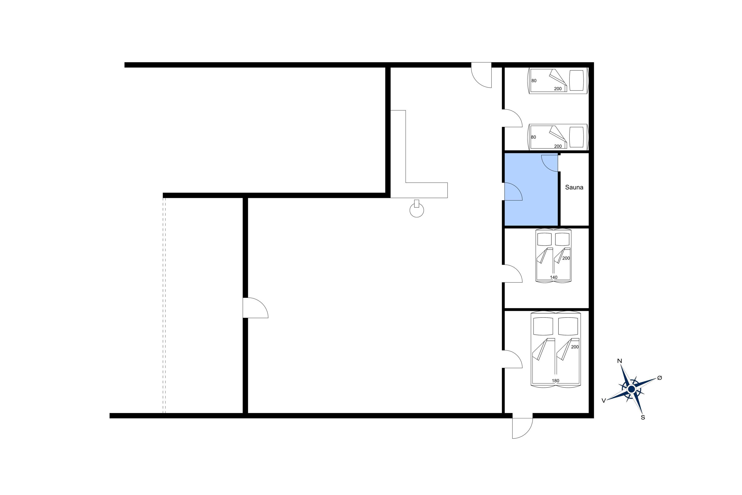 Das Wohnzimmer verfügt über einen Holzofen, einen Smart-TV mit dänischen Kanälen im gesamten Wohnzimmer und eine Satellitenschüssel mit ausländischen Kanälen. Es gibt WLAN zur Nutzung und eine Wärmepumpe. Das Wohnzimmer bietet außerdem einen Essbereich am Ende des Wohnzimmers. Vom Wohnzimmer aus hat man Zugang zu 3 Schlafzimmern: DS + DS + 2S. Badezimmer mit Dusche/WC, Sauna.