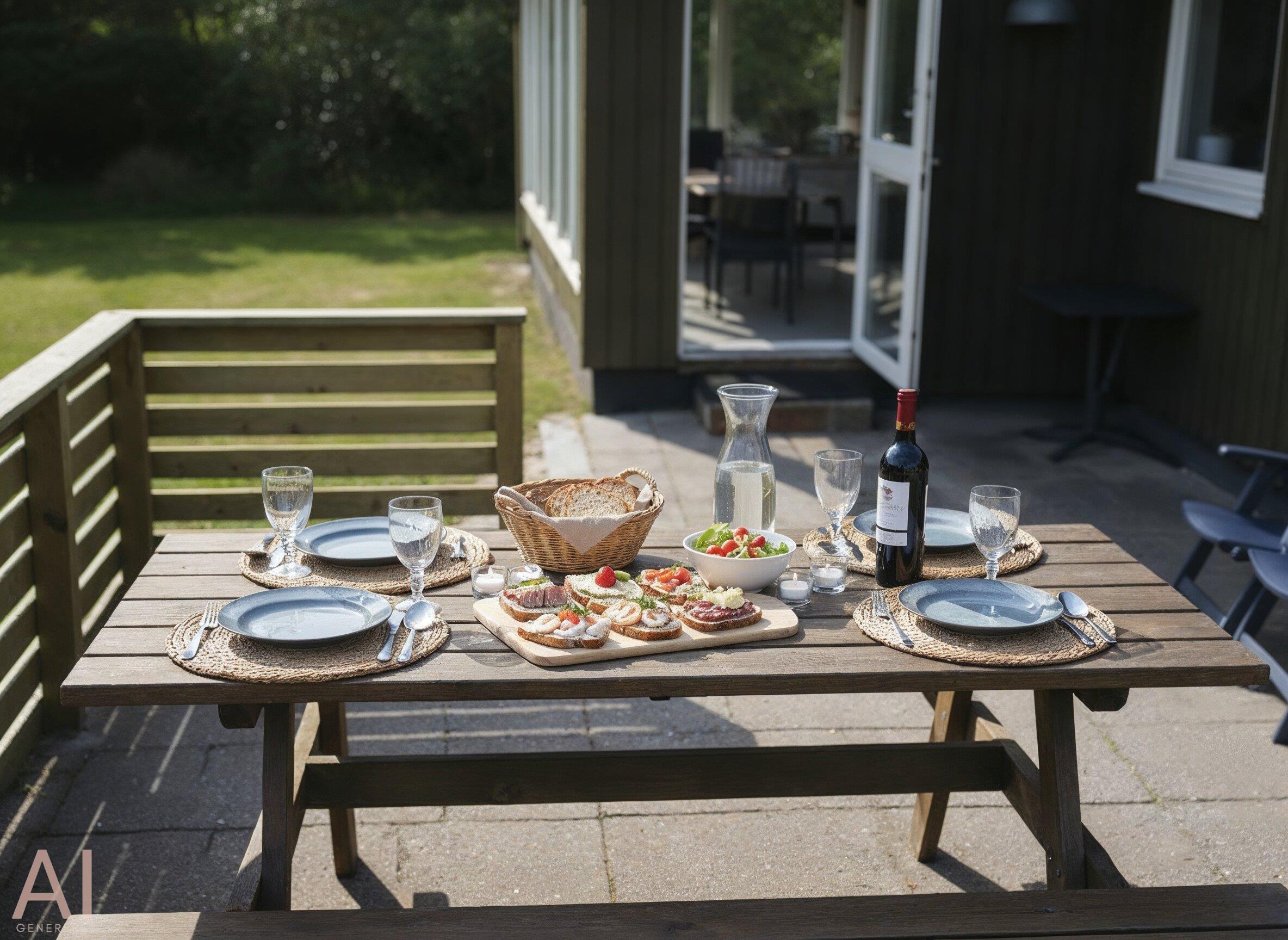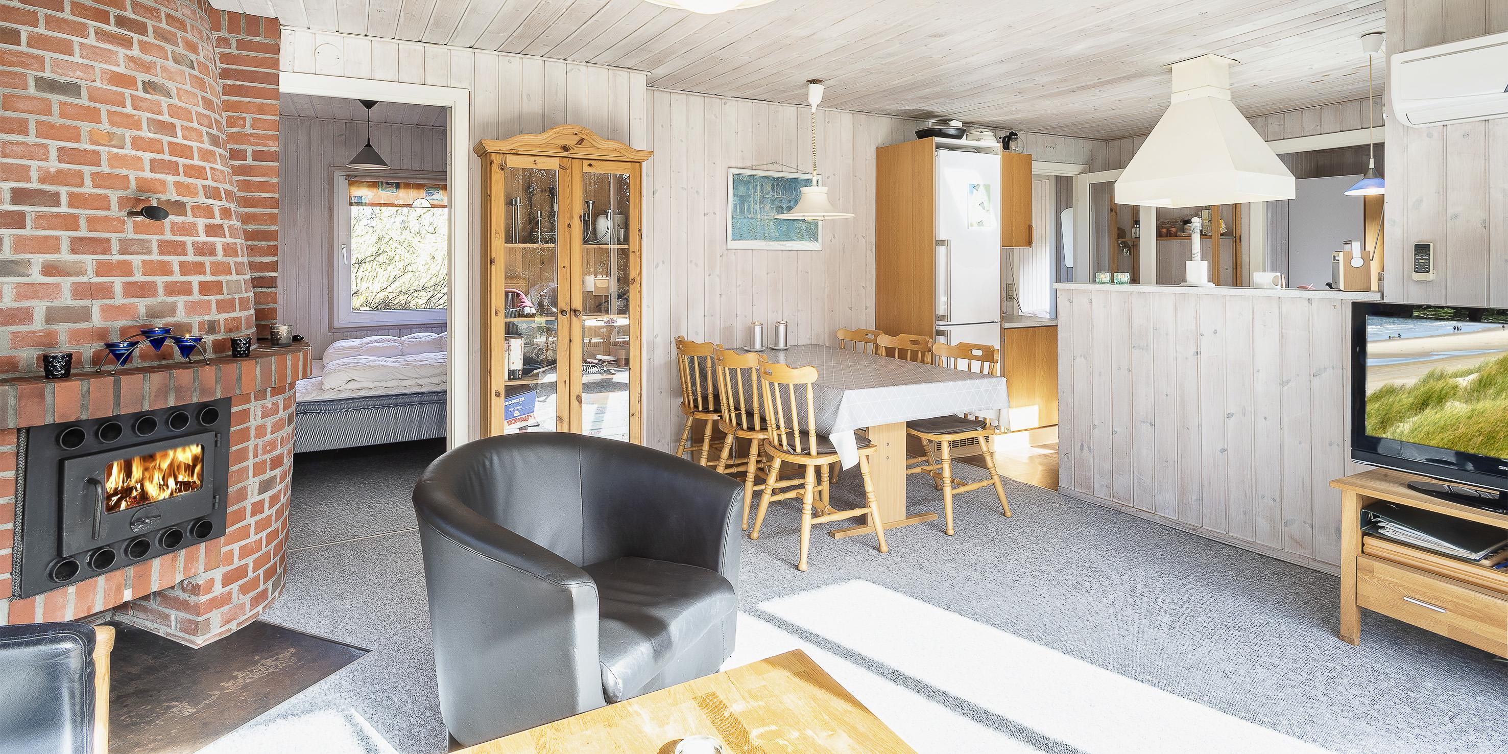 Kleines einfaches Ferienhaus mit Namen ”Enghyllen” auf einem großen Naturgrundstück gelegen. Das Ferienhaus ist für 6 Personen ausgestattet und der Strand ist ca, 1 Km vom Ferienhaus entfernt. Der Wohnbereich ist mit einem gemauerten Kamin. Es befindet sich eine Warmepumpe im Ferienhaus. Mit dieser Warmepumpe haben sie die Möglichkeit die Stromkosten zu senken, denn die Warmepumpe ist energiesparend. Das deutsche Fernsehprogramm empfangen Sie über eine Parabolantenne. Google Chrome Cast. Der Küchenbereich ist einfach und verfügt über einen Herd mit Cerankochfeld,einem Backofen und einem Kühlschrank. Das Badezimmer ist mit einem WC, einem Handwaschbecken und einer Dusche ausgestattet. Die Waschmaschine ist hier im Badezimmer untergebracht. Insgesamt stehen den Gästen drei Schlafzimmer zur Verfügung: DB + 2B + 2B. Auf dem Terrassenbereich ist Platz um Ihren Kaffee zu geniessen oder auch Ihr Sonnenbad. Für Ihr Fahrzeug steht ein Carport zur Verfügung und für kleine Gäste ist eine Sandkiste auf dem Grundstück aufgestellt. Das Ferienhaus verfügt über einen Internetanschluss (W-Lan). Es sind max. drei Haustiere erlaubt. Das Rauchen ist nicht gestattet. Das Ferienhaus ist 1972 erbaut worden.