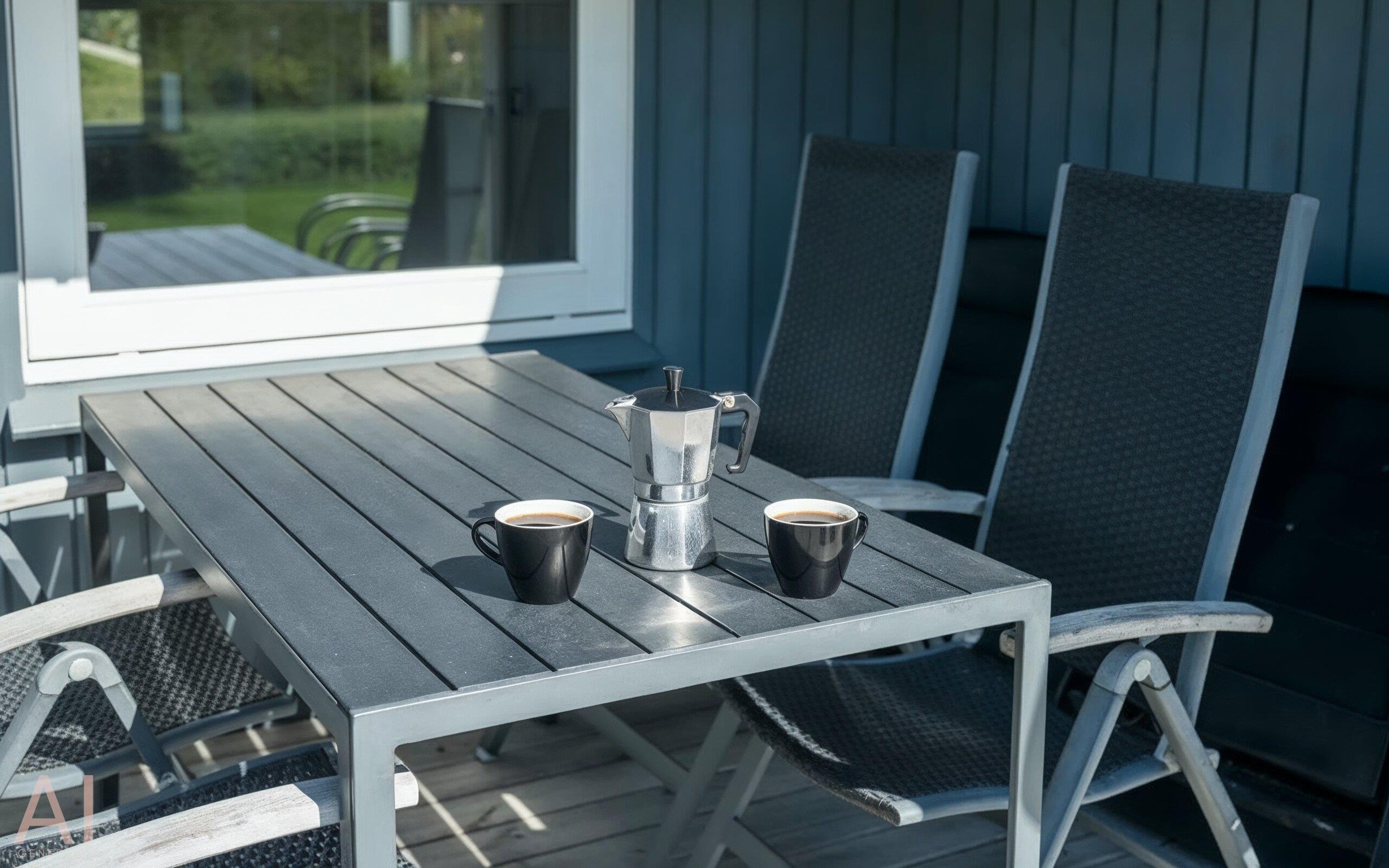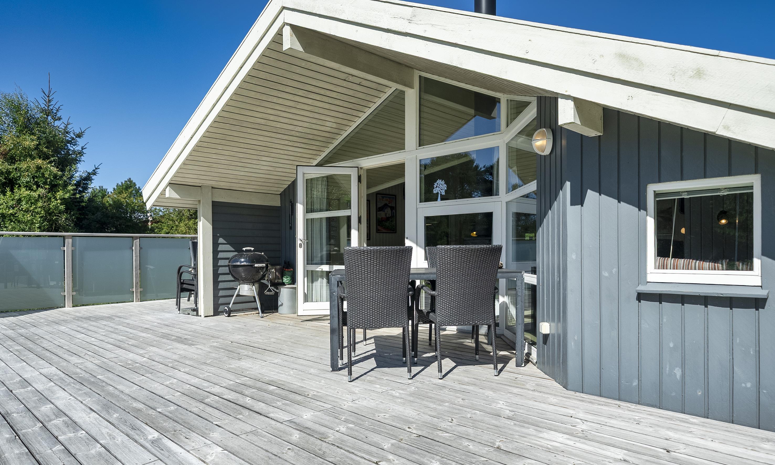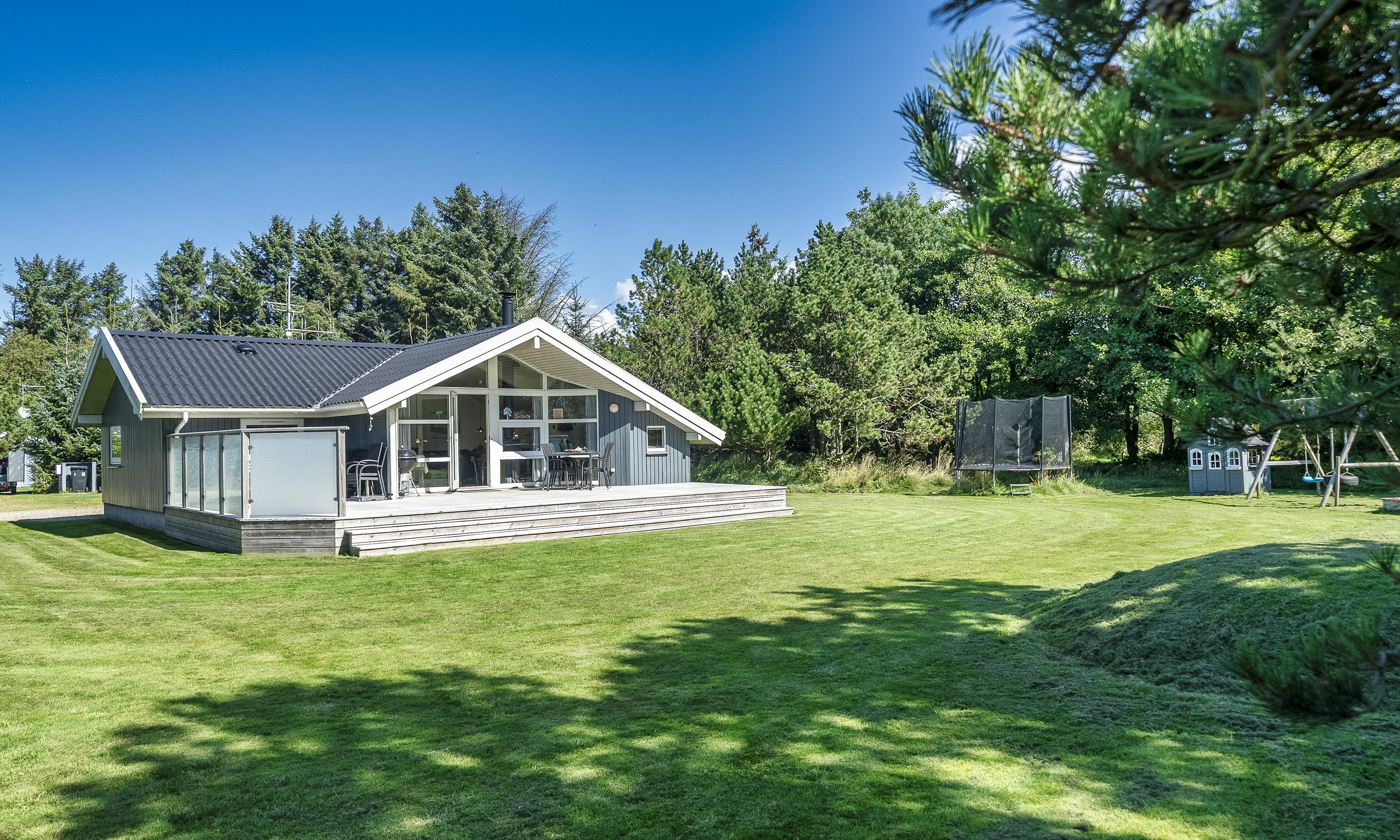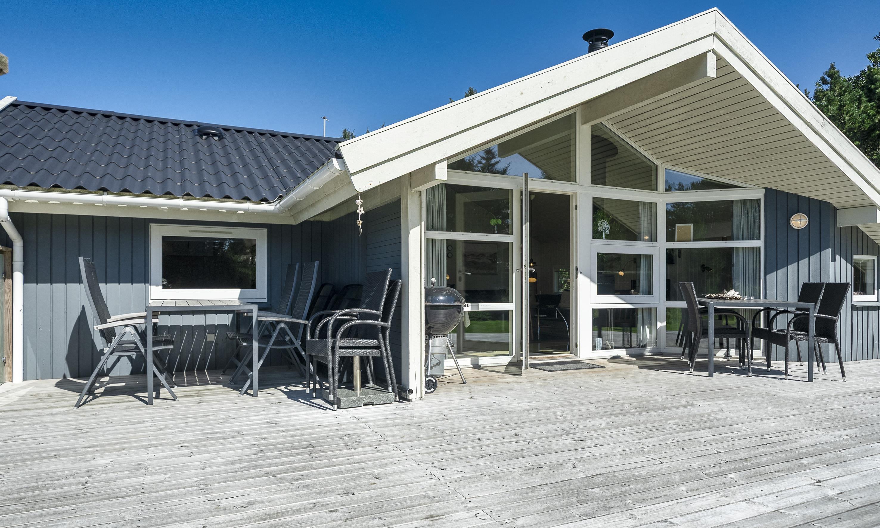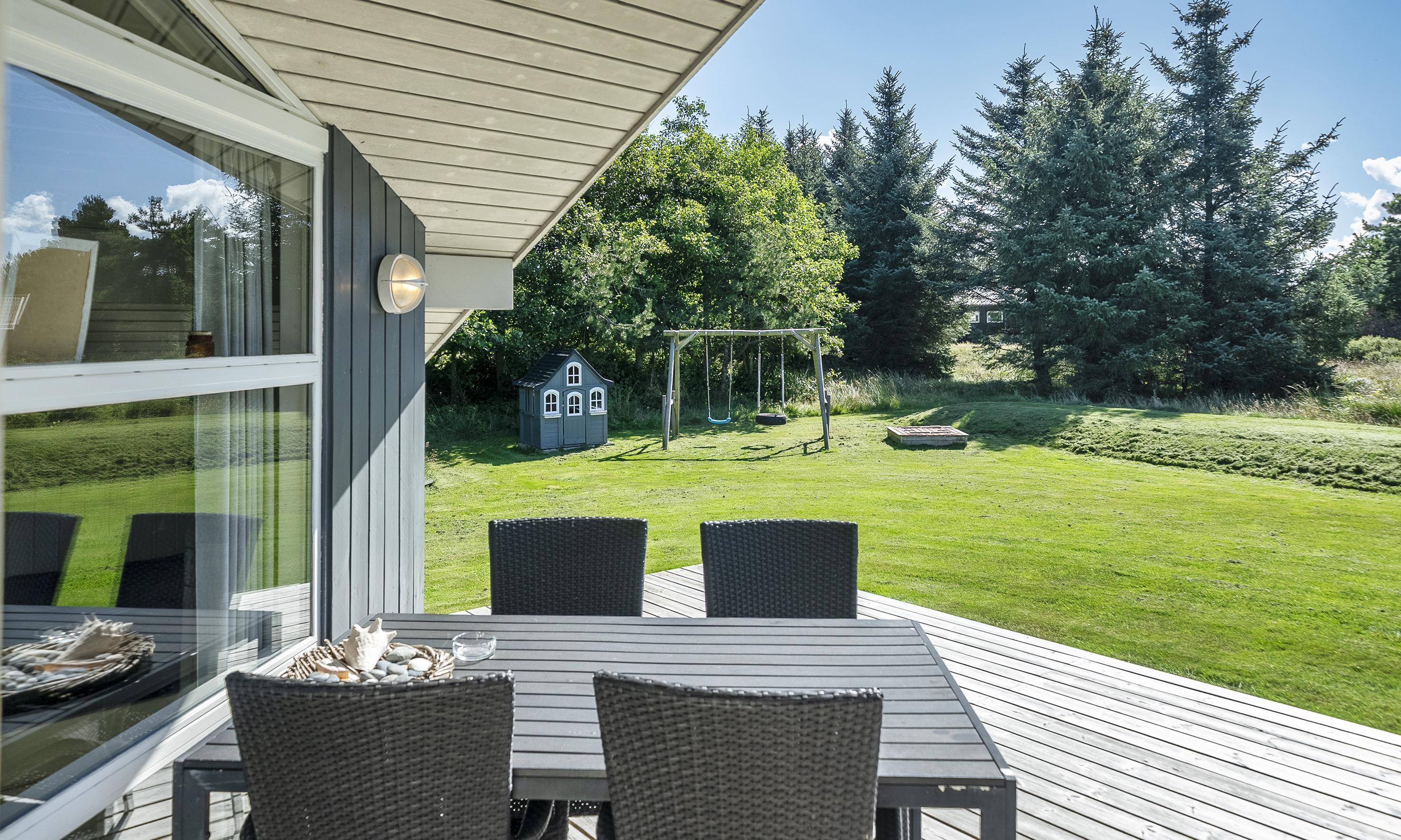 Hell und freundlich ausgestattetes Ferienhaus auf einem großen Rasengrundstück. Das Ferienhaus ist für 6 Personen ausgestattet. Der Strand ist ca. 1 Km vom Haus entfernt. Der Wohn- und Essbereich ist modern eingerichtet und farblich toll abgestimmt. Es stehen gemütliche Sitzmöbel zur Verfügung. Im Wohnbereich ist der Kamin aufgestellt. Das deutsche Fernsehprogramm empfangen Sie über eine Parabolantenne. Es befindet sich eine Warmepumpe im Ferienhaus. Mit dieser Warmepumpe haben sie die Möglichkeit die Stromkosten zu senken, denn die Warmepumpe ist energiesparend. Ein im Wohnbereich befindlicher Alkoven bietet Ihnen eine Möglichkeit sich zurück zuziehen und zu entspannen oder auch Ihr spannendes Buch zu lesen. Die Küche ist zum Wohn- und Essbereich offen gehalten und verfügt über einen Herd mit Cerankochfeld, einem Backofen, einer Geschirrspülmaschine, einer Mikrowelle und einer Kühl- und Gefrierkombination. Es stehen Ihnen ein großes Badezimmer und ein weiteres Gästebad zur Verfügung. Das große Badezimmer ist mit einem WC, einem Handwaschbecken, einer Dusche, einer Sauna und einem Whirlpool ausgestattet. Die Waschmaschine befindet sich in dem großen Badezimmer. Das Gästebad verfügt über ein WC, ein Handwaschbecken und eine Dusche. Insgesamt befinden sich drei Schlafzimmer im Ferienhaus: DB + DB + 2B. Zwei der Schlafzimmer sind mit je einem Doppelbett ausgestattet und das Dritte verfügt über zwei Einzelbetten. Das Ferienhaus verfügt über einen Internetanschluss (W-Lan 200mbit). Auf der Holzterrasse ist genügend Platz um Ihren Kaffee zu geniessen, ein Sonnenbad zu nehmen oder auch Ihren hyggeligen Grillabend zu gestalten. Für die kleinen Gäste steht ein Schaukelstativ auf dem Grundstück bereit sowie eine Sandkiste. Max. ein Haustier ist erlaubt. Rauchen ist nicht erlaubt. Das Ferienhaus wurde 1994 erbaut. Für dieses Ferienhaus entstehen Zusatzkosten für den Wasserverbrauch.