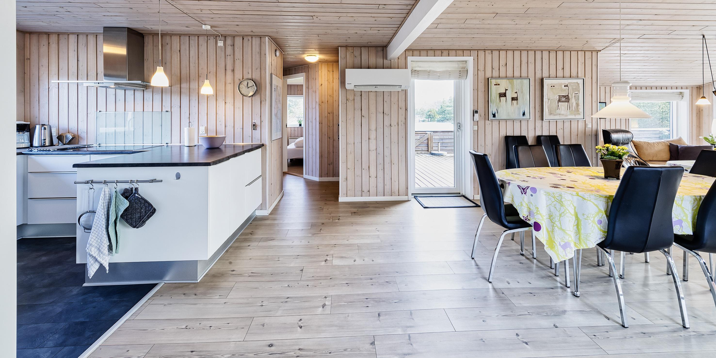 Gemütliches und gepflegtes Ferienhaus auf einem schönen Naturgrundstück gelegen. Dicht zum Wald und zu dem Fahrradweg, der von Vejers Strand zum Grærup Strand führt. Hier können Sie in Ruhe Ihren Spaziergang machen, ohne den normalen PKW-Verkehr. Der ist hier nämlich nicht erlaubt. Das Ferienhaus ist für 6 Personen ausgestattet. Der Strand ist ca. 1 Km vom Haus entfernt. Der Wohnbereich ist mit dem Essbereich zusammen und offen zur Küche gehalten. Im Wohn- und Essbereich ist der Kamin aufgestellt. Es befindet sich eine Warmepumpe im Ferienhaus. Mit dieser Warmepumpe haben sie die Möglichkeit die Stromkosten zu senken, denn die Warmepumpe ist energiesparend. Das deutsche Fernsehprogramm empfangen Sie über eine Parabolantenne.Desweiteren steht Ihenen Chrome Cast zur Verfügung. Die Küche verfügt über einen Herd mit Cerankochfeld/Induktionsfeld, einem Backofen in Arbeitshöhe, einer Geschirrspülmaschine, einer Mikrowelle und einer Kühl- und Gefrierkombination. Das Badezimmer hat ein WC, ein Handwaschbecken und eine Dusche. Im Ferienhaus befindet sich eine Waschmaschine und ein Trockner, die gerne benutzt werden dürfen. Insgesamt stehen den Gästen drei Schlafzimmer zur Verfügung: DB + DB + DB. Der Terrassenbereich am Ferienhaus ist teilweise überdacht und geschlossen. Auf dem großen Rasengrundstück ist für kleinen Gäste des Hauses genügend Platz zum Spielen. Das Rauchen im Ferienhaus ist nicht erlaubt. Das Ferienhaus verfügt über einen Internetanschluss (W-Lan). Es sind zwei Haustiere erlaubt. Der kann auf der Terrasse zwischendurch mal Luft schnappen, ohne das er gleich stiften gehen kann. Das Ferienhaus ist 1984 erbaut worden und in 2010 umgebaut.