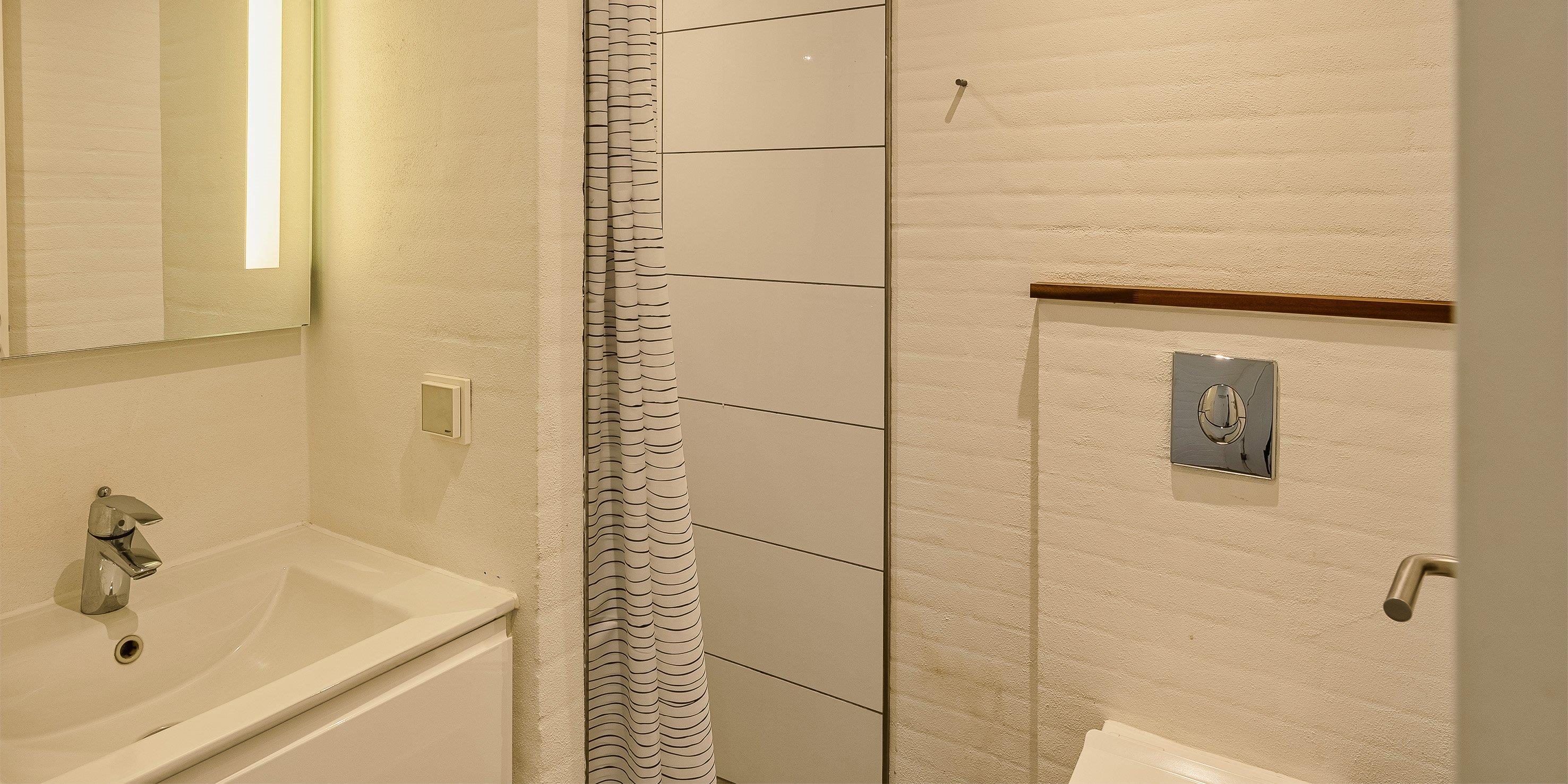 Badezimmer mit Toilette, Dusche und Waschbecken