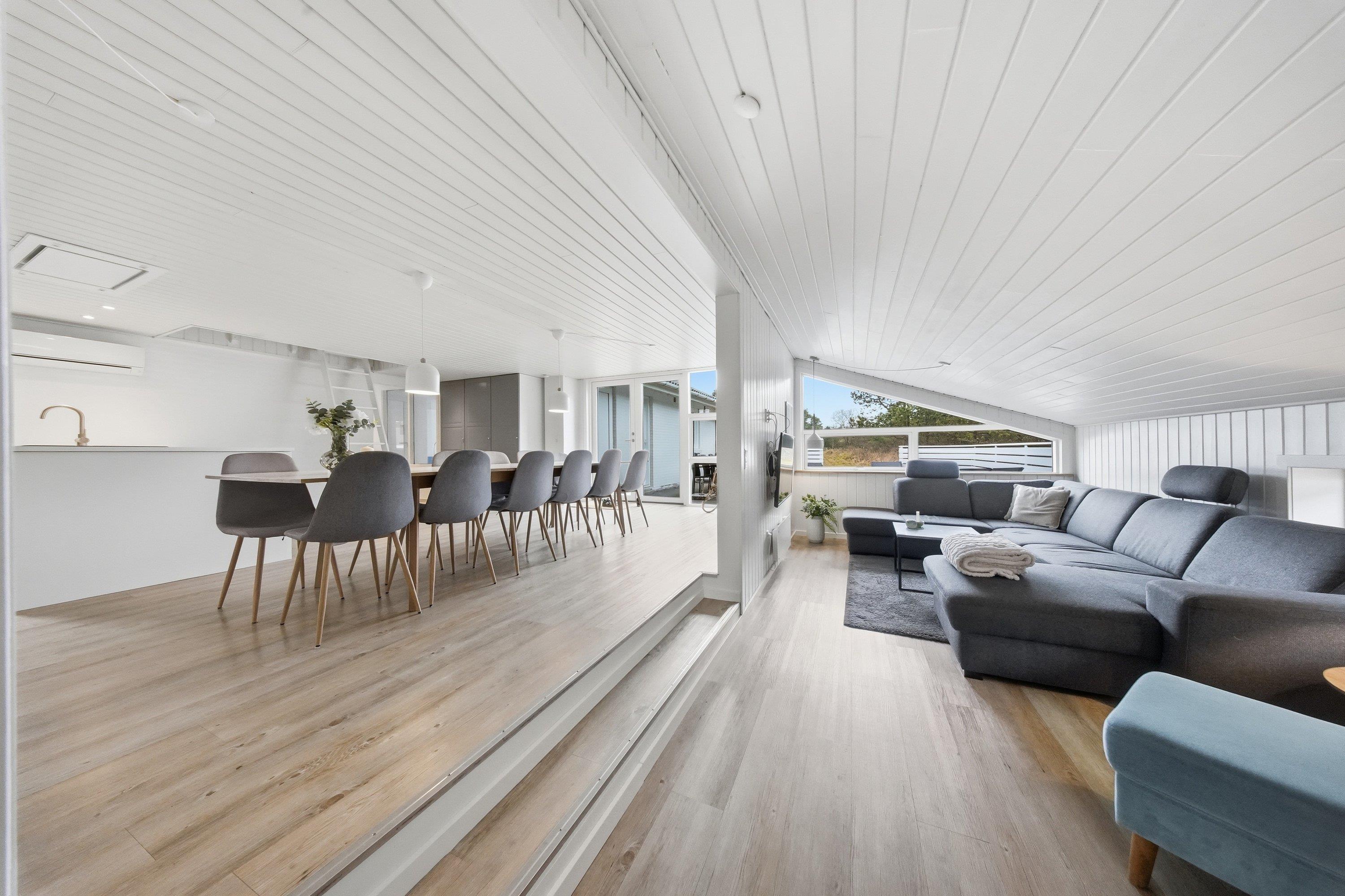 Das Ferienhaus liegt auf einem schönen Naturgrundstück und der Strand ist nur ca. 1200 Meter vom Haus entfernt. Das Ferienhaus bietet Platz für insgesamt 12 Personen. Das Haus hat eine Wohnfläche von ca. 205 m² mit einer angenehmen Atmosphäre für Gross und Klein das ganze Jahr über.