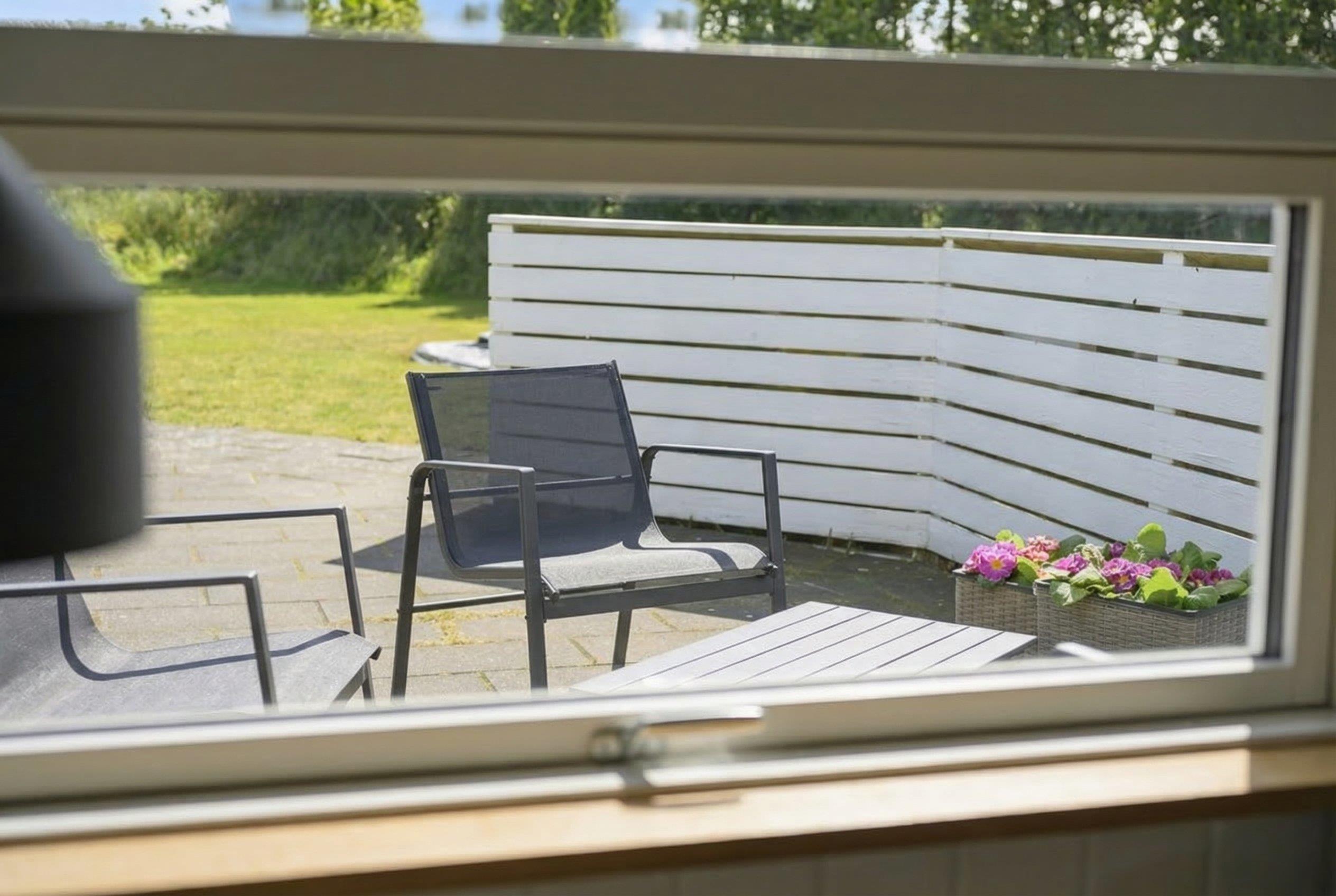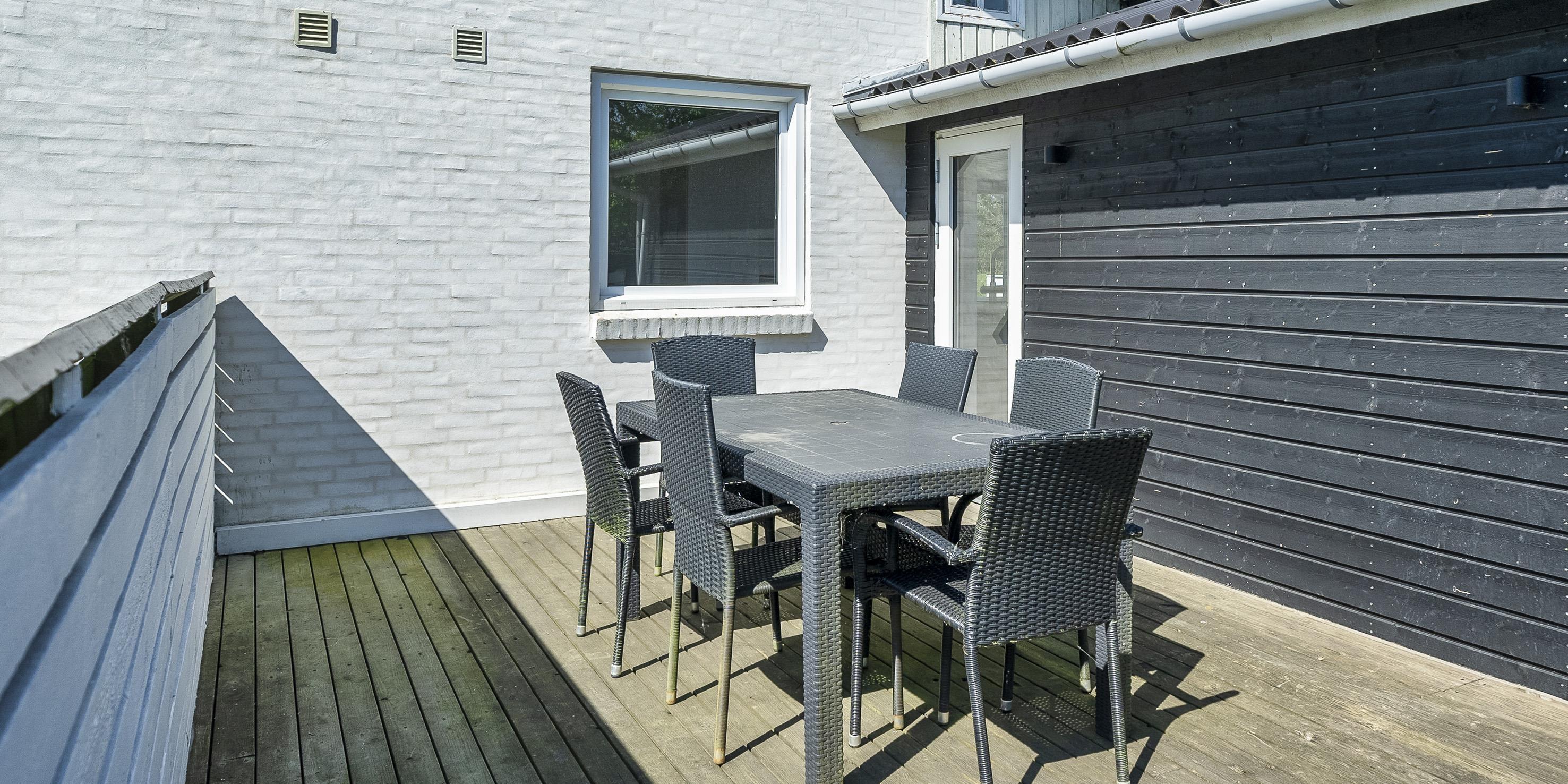 Die Außenanlagen bieten eine schöne, geschützte Terrasse, auf der sich die Abende bis in den Frühling/Herbst hinein verlängern und genießen lassen. Das Sommerhaus liegt auf einem großen Grundstück mit guten Parkbedingungen.