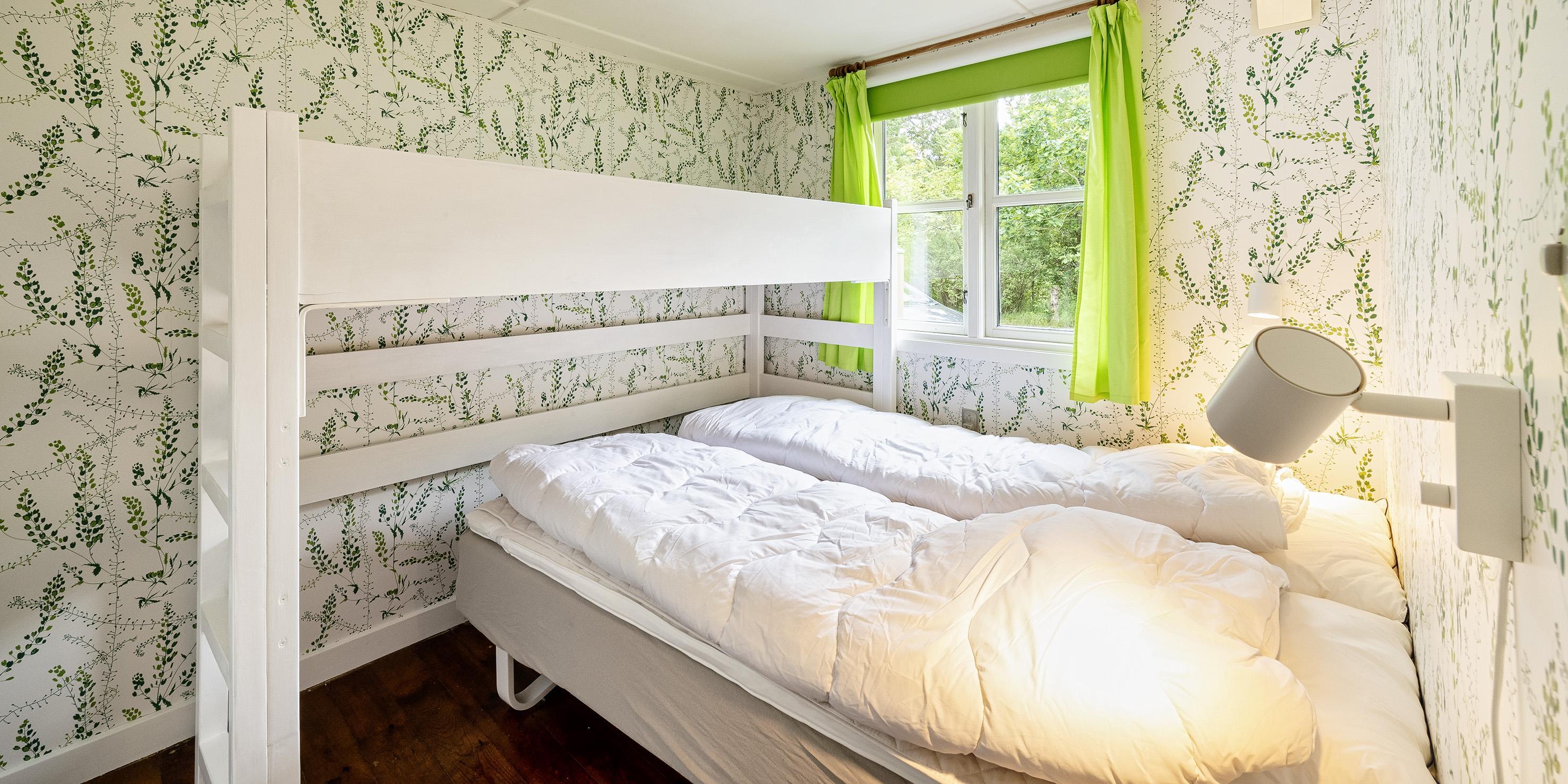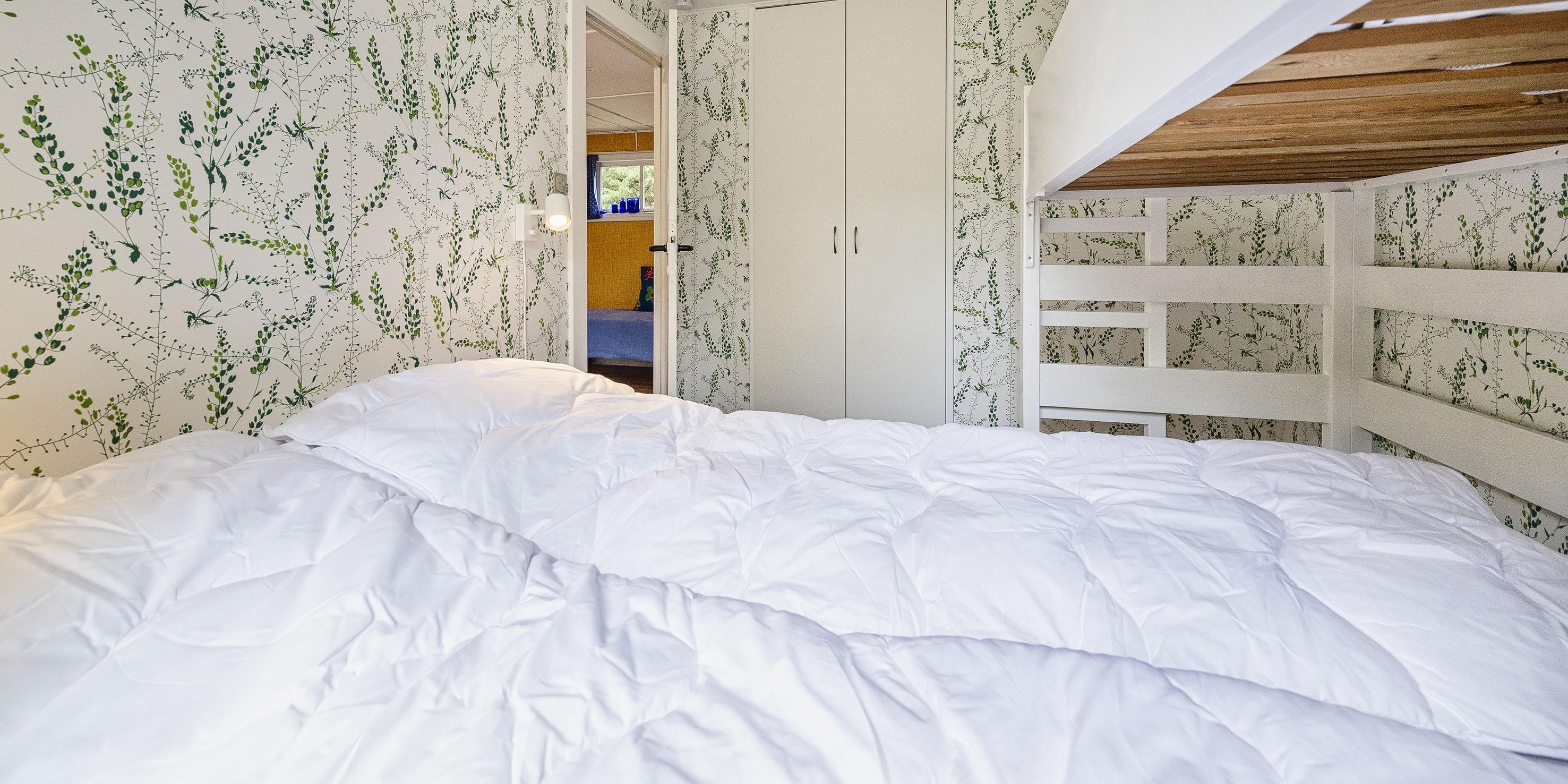 2 Schlafzimmer. 1 mit Doppelbett 140 x 220 cm, 1 mit 140 x 200 cm + ein Etagenbett (90 x 200 cm)