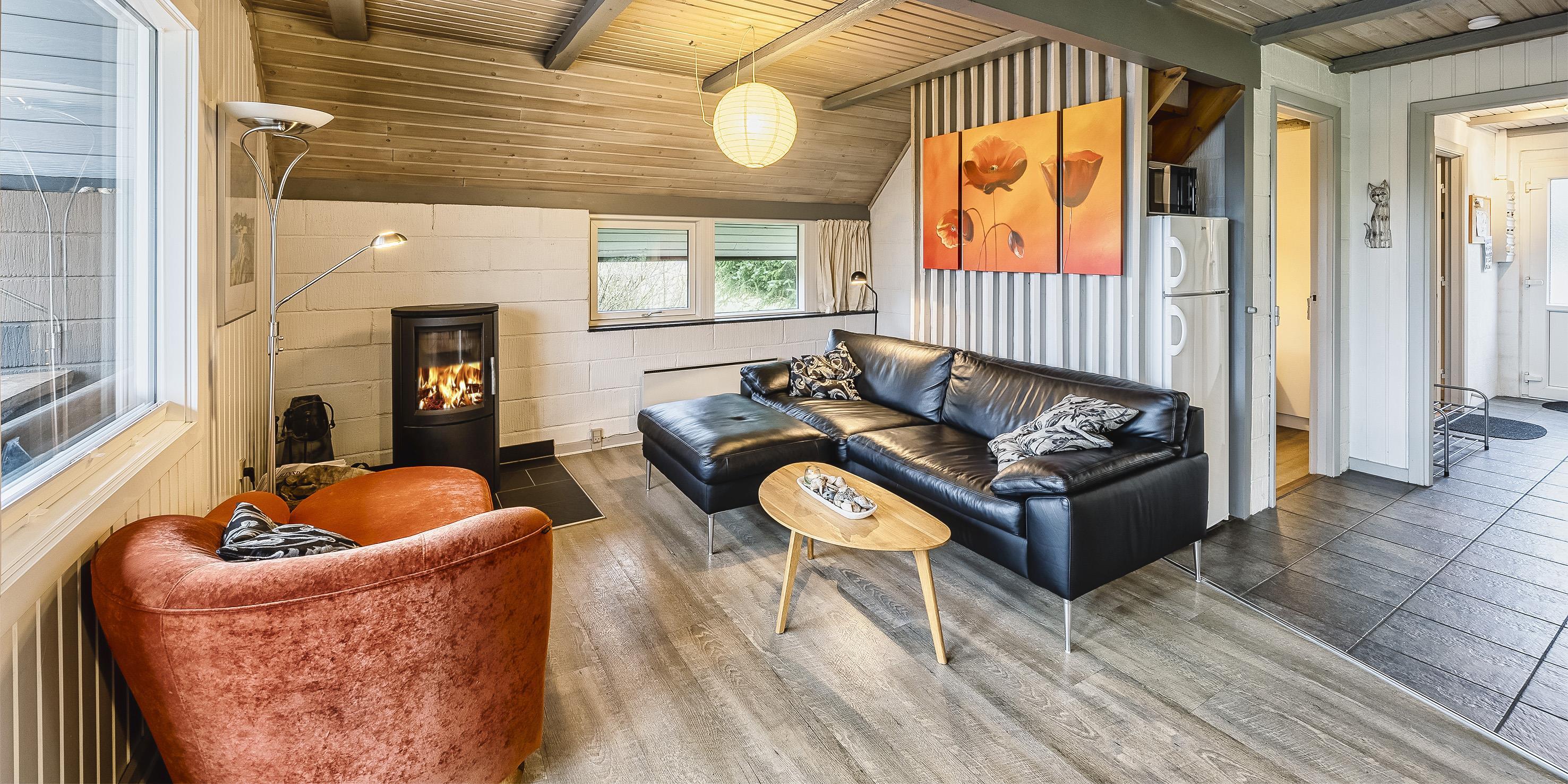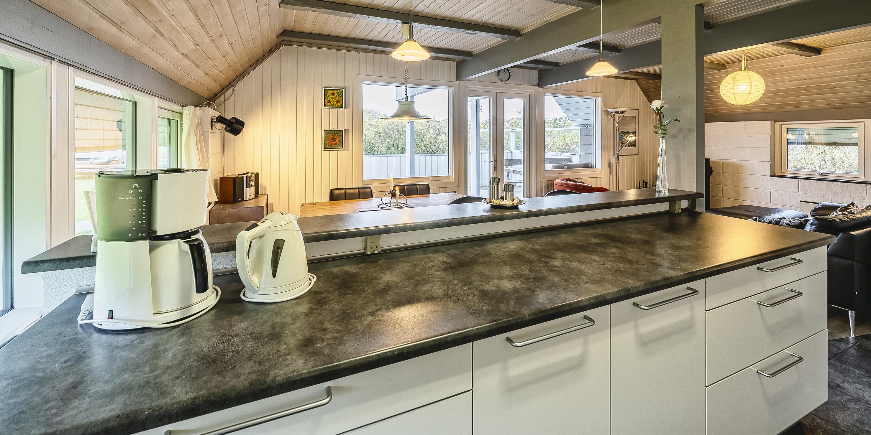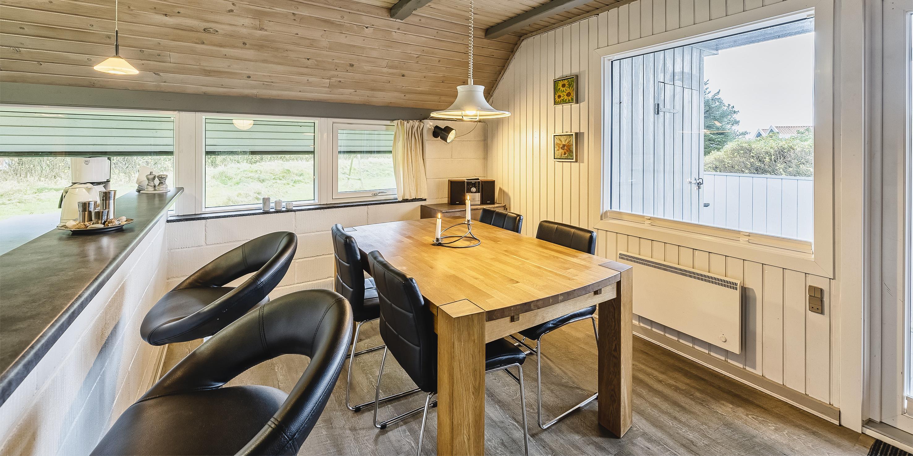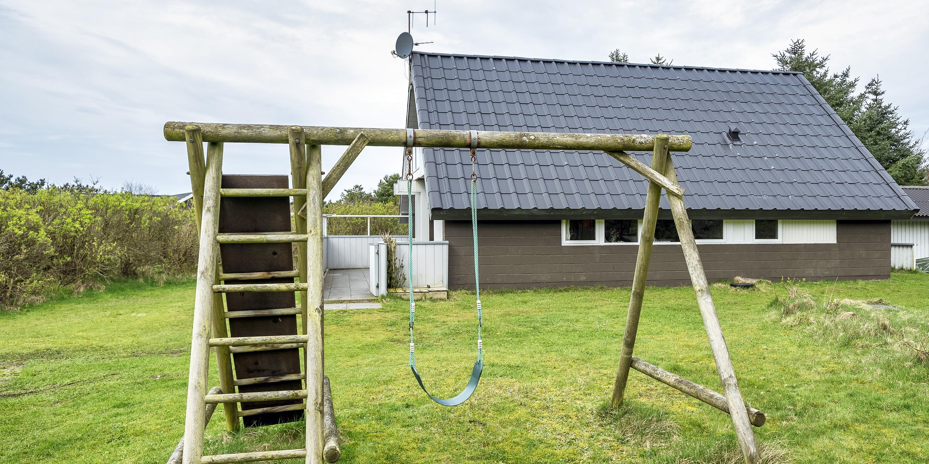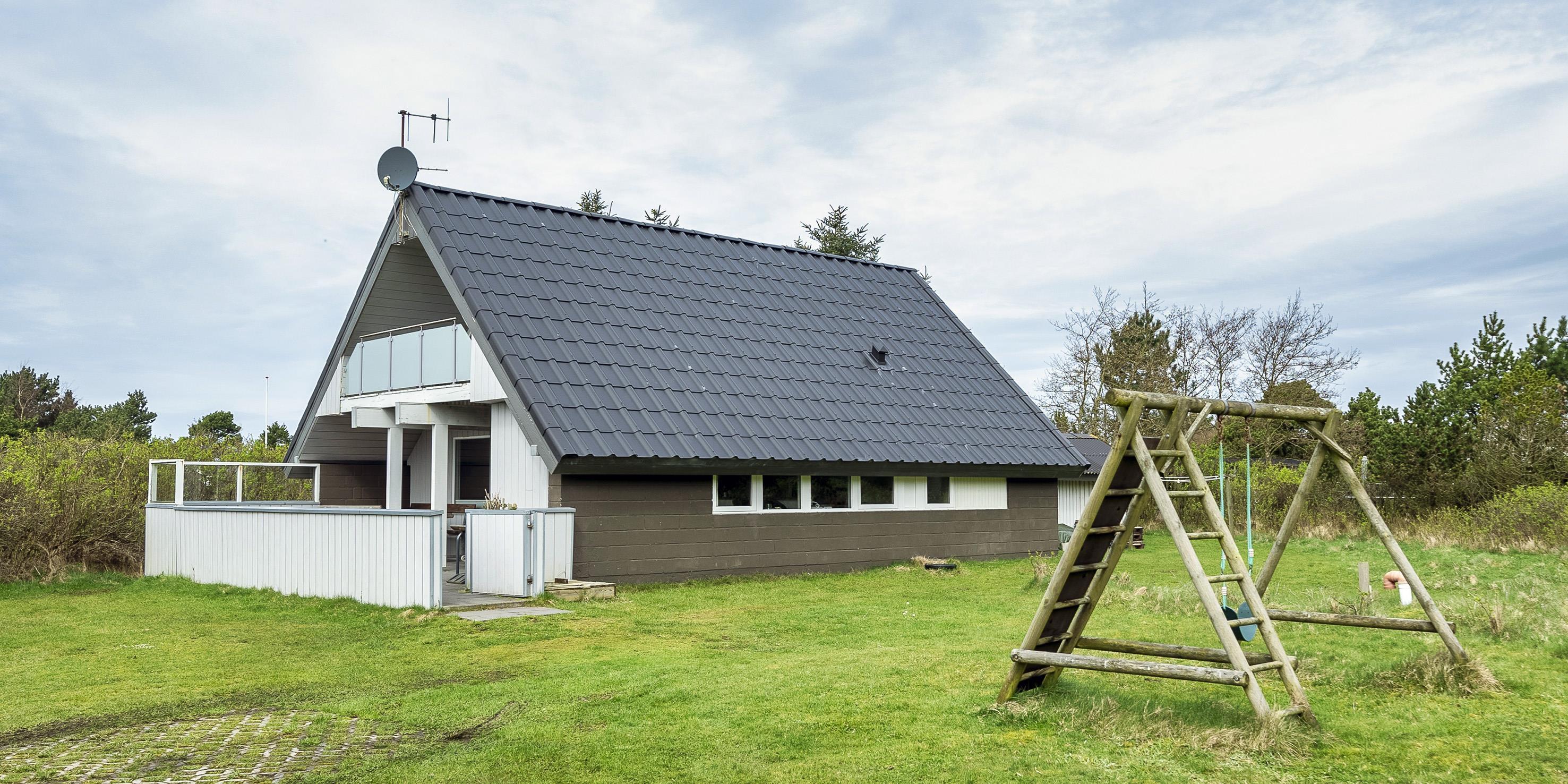 Großes Ferienhaus auf einem naturbelassenem Grundstück gelegen. Das Ferienhaus ist für 6-7 Personen ausgestattet und der Strand ist etwa 1 Km vom Ferienhaus entfernt. Die Räumlichkeiten sind auf 2 Ebenen verteilt. Im Erdgeschoss befindet sich ein Wohnbereich, die Küche, das Badezimmer und zwei Schlafzimmer. Im Obergeschoss dann weitere zwei Schlafzimmer und ein Wohnzimmer. Der Wohnbereich im Erdgeschoss ist mit einer gemütlichen Sitzgarnitur gegenüber dem Kamin ausgestattet. Die Wohnküche ist mit dem Essplatz durch einen Tresen, mit zwei Barhockern, verbunden und verfügt über einen Herd mit Cerankochfeld, einem Backofen, einer Geschirrspülmaschine, einer Mikrowelle und einer Kühl- und Gefrierkombination. Das Badezimmer hat ein WC, ein Handwaschbecken, eine Dusche und genügend Ablagefläche für Ihre Badutensilien. Die Waschmaschine und der Trockner sind hier im Badezimmer untergebracht. 4 Schlafzimmer: DB + DB + DB + 2B. Das Eine Schlafzimmer im Erdgeschoss verfügt über ein Doppelbett und das Andere über eine Schlafcouch. Über eine Holztreppe im Wohnzimmer gelangen Sie dann ins Obergeschoss. Dort stehen Sie dann gleich in dem gemütlichen Wohnraum. Hier steht eine weitere Sitzgarnitur in Form einer Rundsitzecke zur Verfügung. Ein Fernsehgerät ist hier aufgestellt und ein DVD-Abspielgerät ist auch vorhanden. Das deutsche Fernsehprogramm empfangen Sie über eine Parabolantenne. Hier vom Wohnbereich haben Sie einen Zugang zum Balkon. Es stehen weitere zwei Schlafzimmer zur Verfügung. Eines ist mit einem Doppelbett ausgestattet und das Andere verfügt über zwei Einzelbetten. Ein geschützter und geschlossener Terrassenbereich steht den Gästen zur Verfügung. Direkt am Haus ist sogar ein kleiner Teil der Terrasse überdacht. Hier können Sie Ihre Vierbeiner mal Luft schnappen lassen ohne das sie gleich stiften gehen können. Es sind max. zwei Haustiere erlaubt. Eine Blockhaussauna( im AB auf dem Grundriss) steht den Gästen auch bereit. Das Rauchen im Ferienhaus ist nicht erlaubt. Für die Kleinen Gäste steht ein Schaukelstativ und eine Sandkiste auf dem Grundstück zur Verfügung. Das Ferienhaus ist 1985 erbaut worden und in 2010 renoviert. Neues Dach im Jahr 2024.