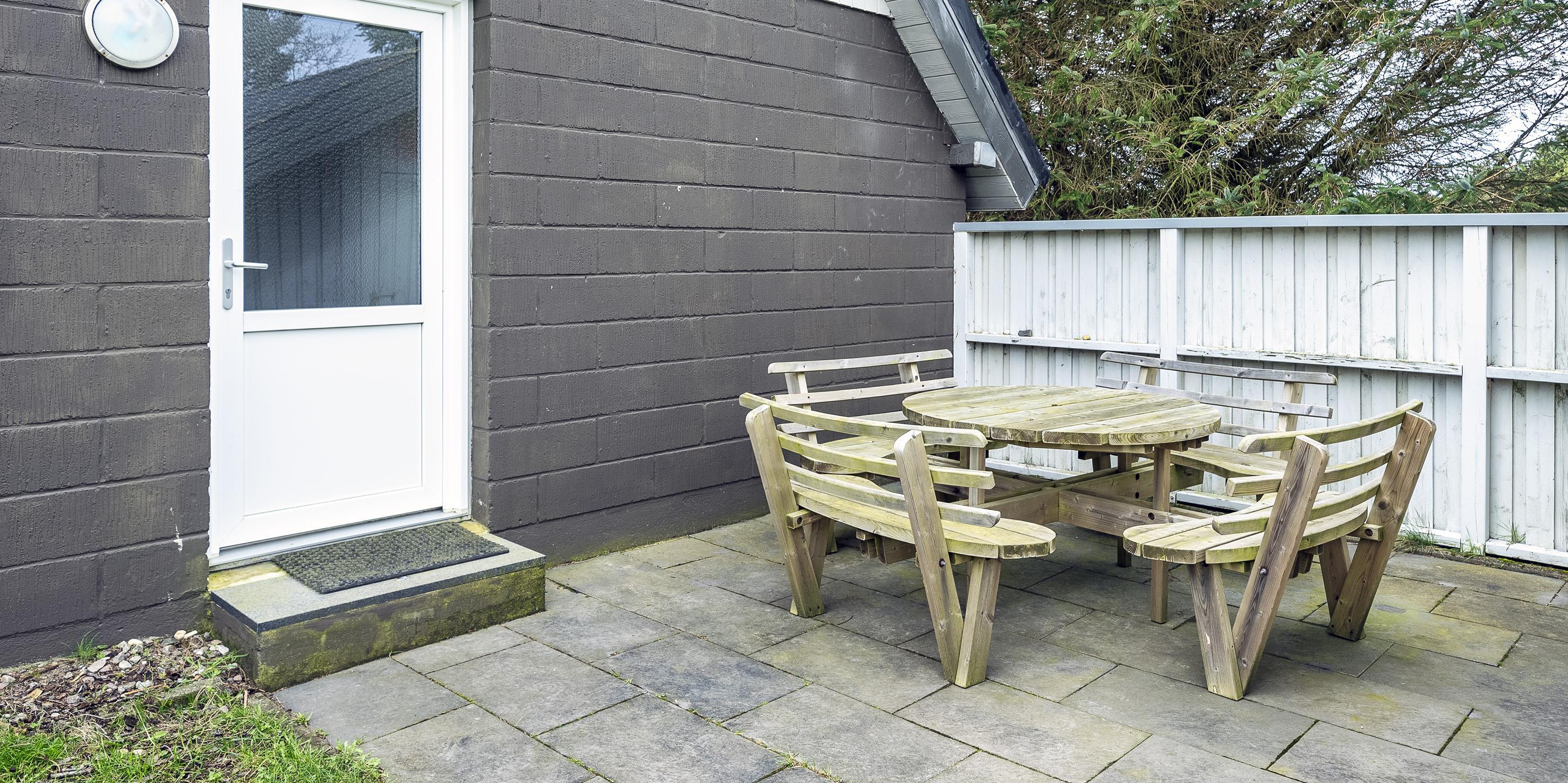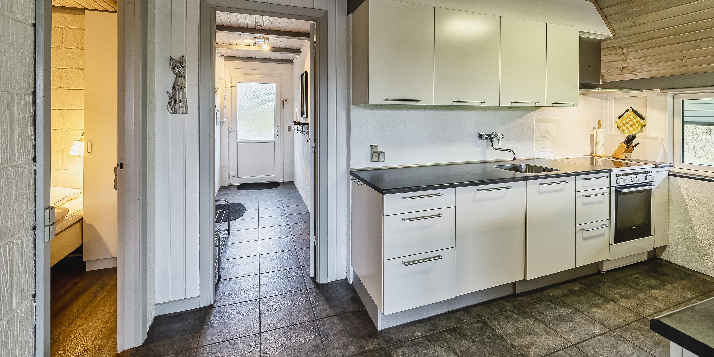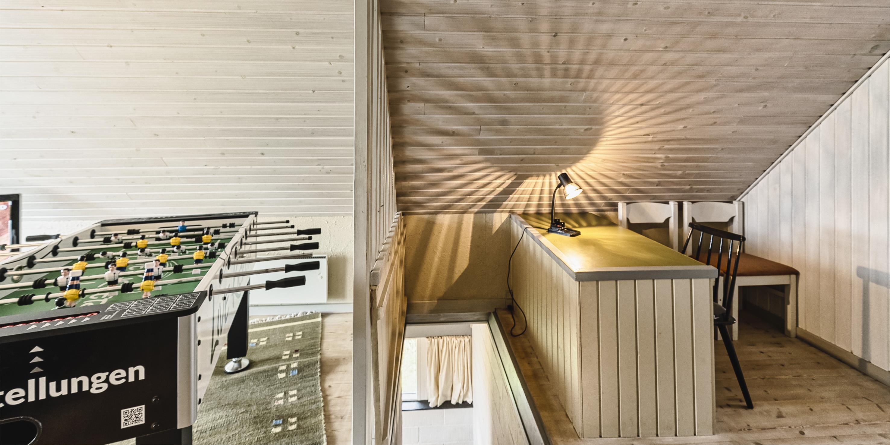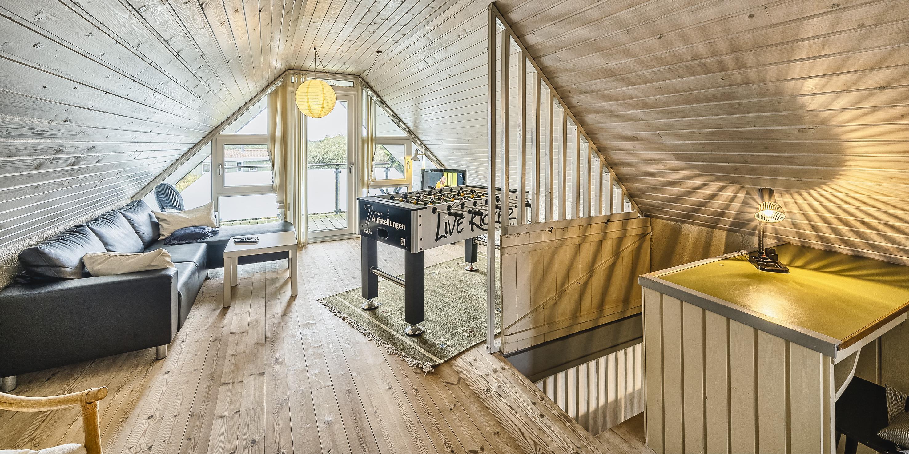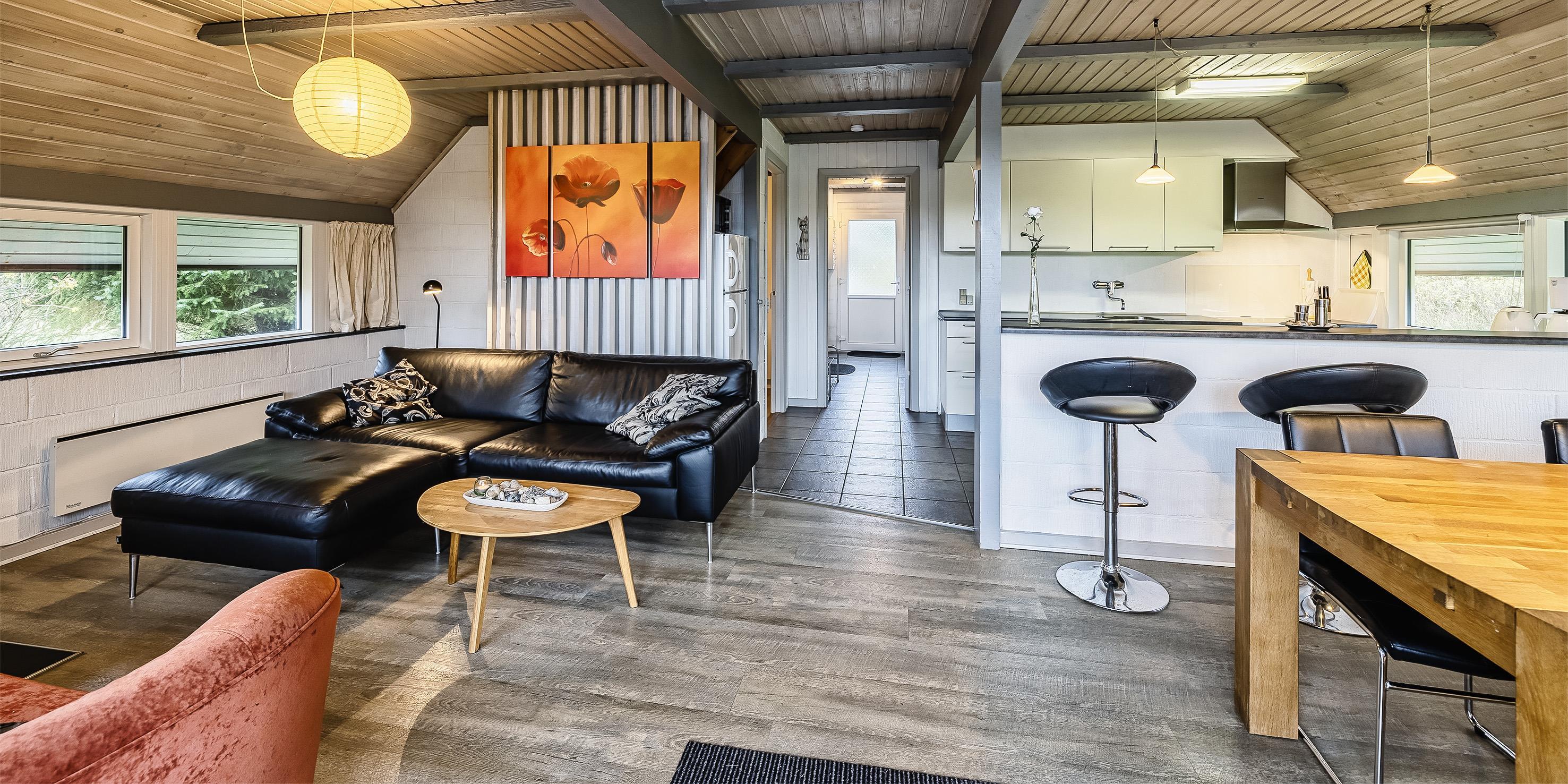 Großes Ferienhaus auf einem naturbelassenem Grundstück gelegen. Das Ferienhaus ist für 6-7 Personen ausgestattet und der Strand ist etwa 1 Km vom Ferienhaus entfernt. Die Räumlichkeiten sind auf 2 Ebenen verteilt. Im Erdgeschoss befindet sich ein Wohnbereich, die Küche, das Badezimmer und zwei Schlafzimmer. Im Obergeschoss dann weitere zwei Schlafzimmer und ein Wohnzimmer. Der Wohnbereich im Erdgeschoss ist mit einer gemütlichen Sitzgarnitur gegenüber dem Kamin ausgestattet. Die Wohnküche ist mit dem Essplatz durch einen Tresen, mit zwei Barhockern, verbunden und verfügt über einen Herd mit Cerankochfeld, einem Backofen, einer Geschirrspülmaschine, einer Mikrowelle und einer Kühl- und Gefrierkombination. Das Badezimmer hat ein WC, ein Handwaschbecken, eine Dusche und genügend Ablagefläche für Ihre Badutensilien. Die Waschmaschine und der Trockner sind hier im Badezimmer untergebracht. 4 Schlafzimmer: DB + DB + DB + 2B. Das Eine Schlafzimmer im Erdgeschoss verfügt über ein Doppelbett und das Andere über eine Schlafcouch. Über eine Holztreppe im Wohnzimmer gelangen Sie dann ins Obergeschoss. Dort stehen Sie dann gleich in dem gemütlichen Wohnraum. Hier steht eine weitere Sitzgarnitur in Form einer Rundsitzecke zur Verfügung. Ein Fernsehgerät ist hier aufgestellt und ein DVD-Abspielgerät ist auch vorhanden. Das deutsche Fernsehprogramm empfangen Sie über eine Parabolantenne. Hier vom Wohnbereich haben Sie einen Zugang zum Balkon. Es stehen weitere zwei Schlafzimmer zur Verfügung. Eines ist mit einem Doppelbett ausgestattet und das Andere verfügt über zwei Einzelbetten. Ein geschützter und geschlossener Terrassenbereich steht den Gästen zur Verfügung. Direkt am Haus ist sogar ein kleiner Teil der Terrasse überdacht. Hier können Sie Ihre Vierbeiner mal Luft schnappen lassen ohne das sie gleich stiften gehen können. Es sind max. zwei Haustiere erlaubt. Eine Blockhaussauna( im AB auf dem Grundriss) steht den Gästen auch bereit. Das Rauchen im Ferienhaus ist nicht erlaubt. Für die Kleinen Gäste steht ein Schaukelstativ und eine Sandkiste auf dem Grundstück zur Verfügung. Das Ferienhaus ist 1985 erbaut worden und in 2010 renoviert. Neues Dach im Jahr 2024.