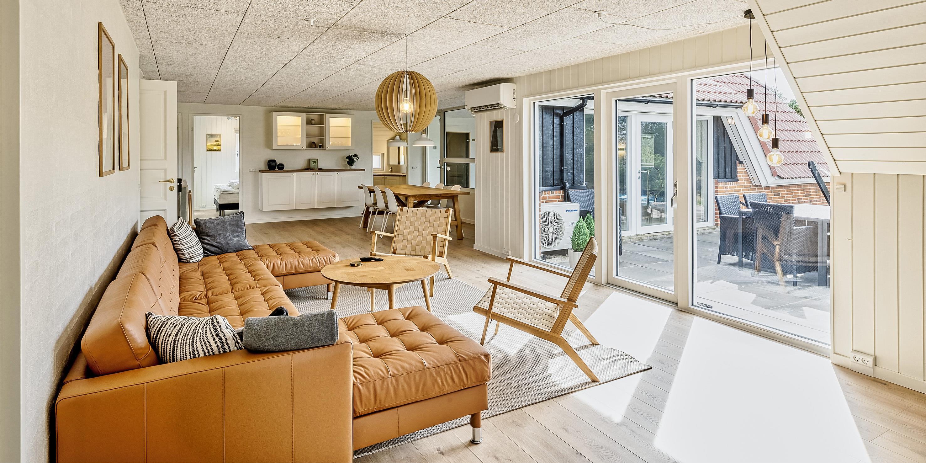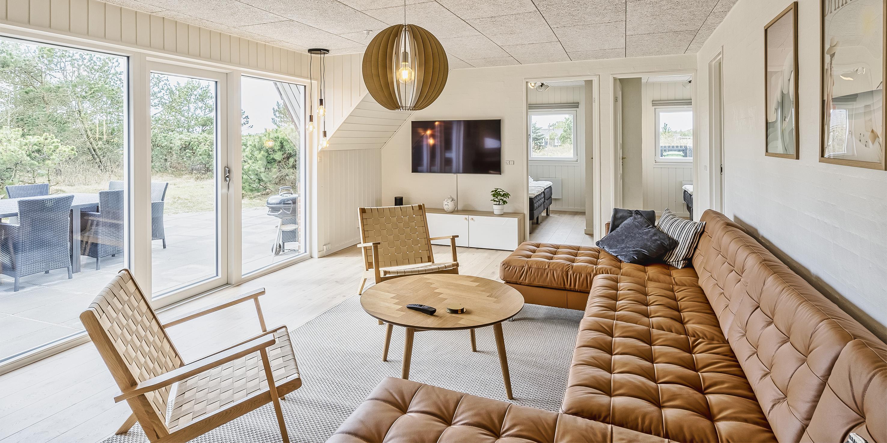 Nett eingerichtetes Poolhaus auf einem großen naturbelassenem Rasengrundstück gelegen und ist für 10 Personen ausgestattet. Der Strand ist 900 Meter vom Ferienhaus entfernt. Das Ferienhaus befindet sich in einer Sackgasse und grenzt an den Fußweg, wo man von Vejers nach Grærup wandern kann, ohne dass dort Autos vorbei fahren. Hirsche und das Rotwild können Sie auch öfter beobachten, wenn sie aus dem Wald kommen. Die Tiere lieben es von den Gästen mit Obst und Gemüse verwöhnt zu werden. Der Wohnbereich ist zum Essplatz offengehalten und in der Mitte der beiden Bereiche ist der Kamin aufgestellt. Ausserdem gibt es eine Wärmepumpe im Haus. Mit dieser Wärmepumpe haben Sie die Möglichkeit die Stromkosten zu senden, denn sie ist energiesparend. Das Fernsehprogramm empfangen Sie über Smart TV und über eine YouSee App. An dem Tresen vom Küchenbereich, stehen Ihnen einige Barhocker zum Sitzen zur Verfügung. Der Küchenbereich ist mit einem Herd mit Cerankochfeld, einem Backofen, einer Geschirrspülmaschine, einer Mikrowelle und einer Kühl- und Gefrierkombination ausgestattet. Es sind insgesamt zwei neurenovierte Bäder in Ferienhaus. Beide Badezimmer verfügen über ein WC, ein Handwaschbecken und eine Dusche. Fünf Schlafzimmer stehen für die Gäste bereit: DB + DB + DB + DB + 2B. Vier davon sind mit je einem Doppelbett ausgestattet und eines verfügt über zwei Einzelbetten. Der Poolbereich ist separat und der Zugang ist vom Essplatz. Durch die großen Glasscheiben haben Sie einen direkten Blick in den Poolbereich und auf das Schwimmbecken, das hat eine Größe vom ca. 7,25 meter x 3,20 meter x 1,30 Meter Tiefe. Eine Sauna befindet sich im Poolbereich. Desweiteren ist hier der Standwasser-Whirlpool (für ca. 6 Personen)in den Boden eingelassen. Eine Waschmaschine mit Trockner ist in einem der Bäder untergebracht und steht den Bewohnern zur Verfügung. Auf dem großen Grundstück stehen ein Schaukelstativ und ein Trampolin für die Kleinen Gäste bereit. Großzügiger Terrassenbereich vorhanden. Es sind max. drei Hausiere erlaubt. Katzen und das Rauchen im Hause sind nicht erlaubt. Das Ferienhaus verfügt über einen Internetanschluss (W-Lan). Ladestation für E-Fahrzeuge vorhanden ( Type 2). Baujahr des Hauses ist 1992 und renoviert im Jahr 2023.