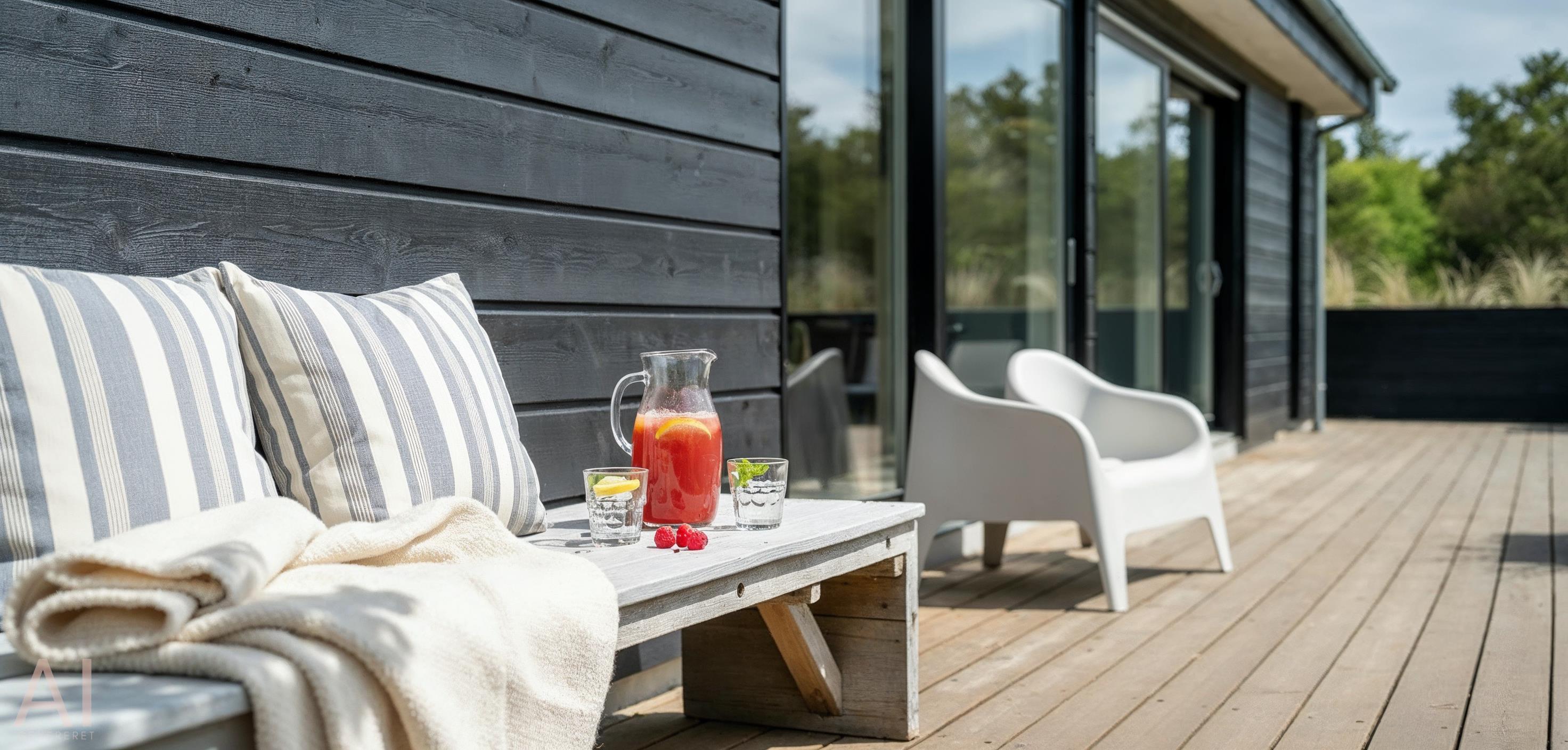 Die Außenanlagen bieten eine schöne große teilweise überdachte Holzterrasse, auf der die Abende verlängert und bis weit in den Frühling/Herbst hinein genossen werden können. Das Sommerhaus liegt auf einem schönen Grundstück mit guten Parkmöglichkeiten. Schöne große Holzterrassenumgebung mit Außendusche, die im Sommer genutzt werden kann.
