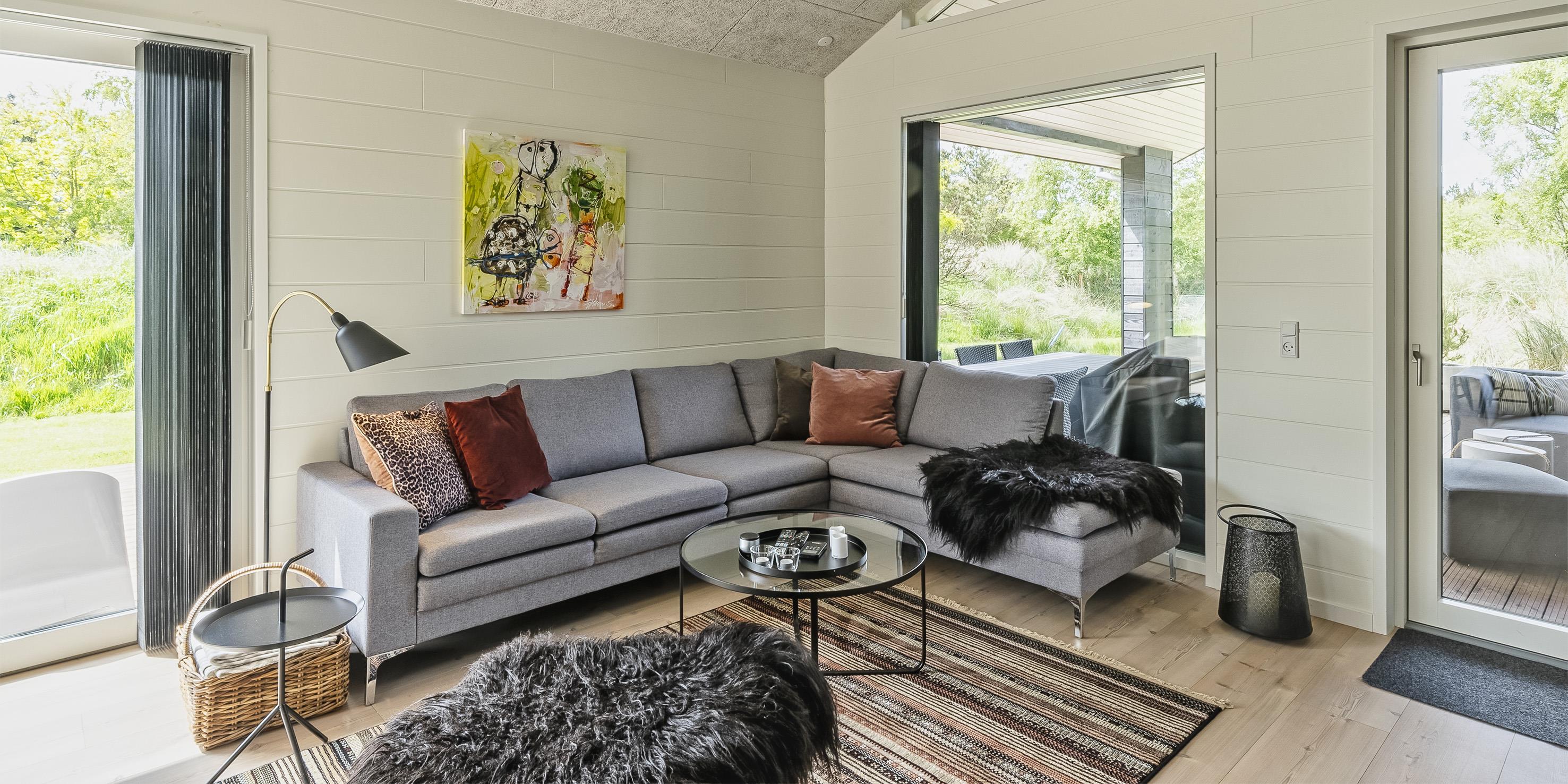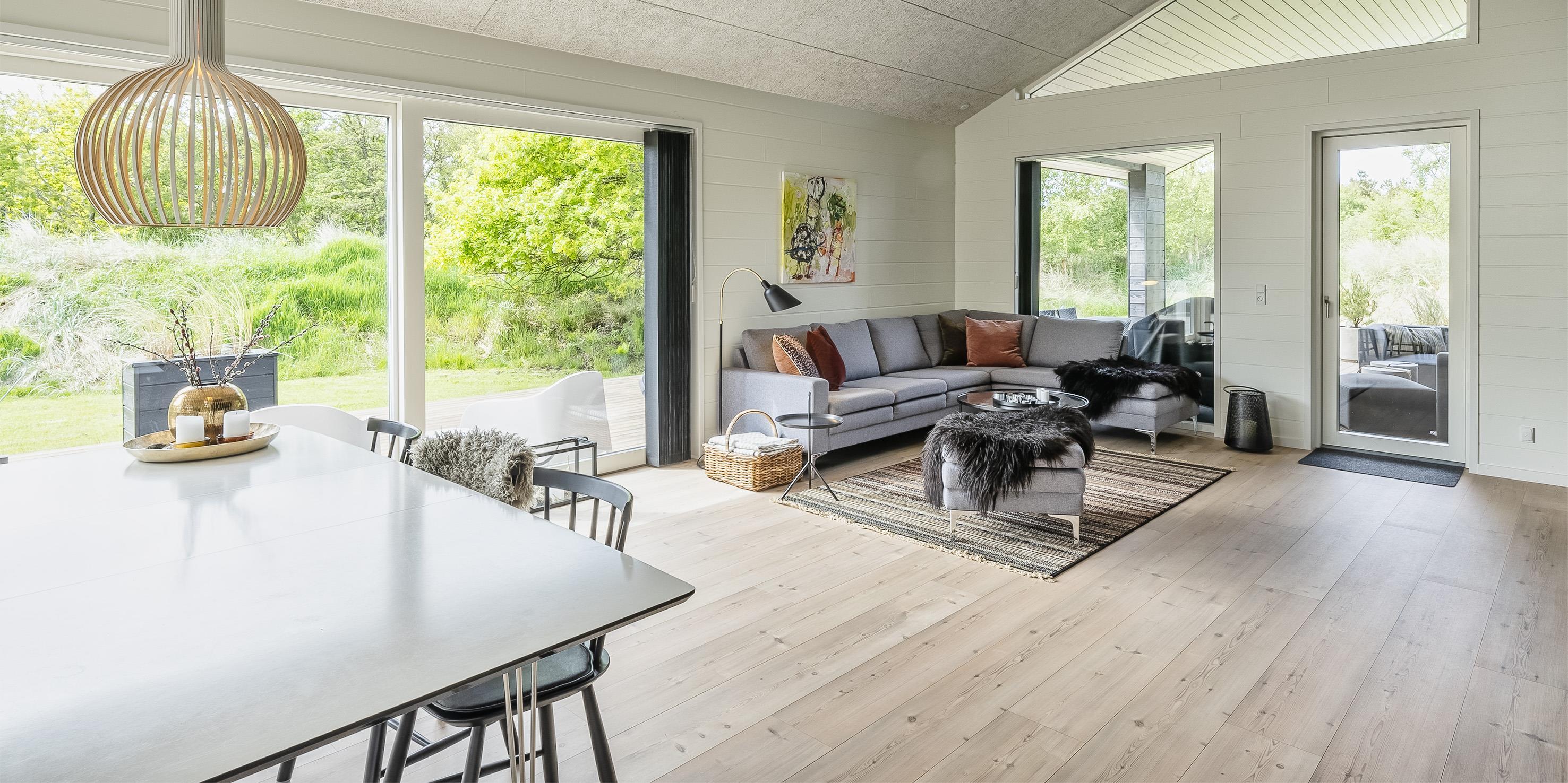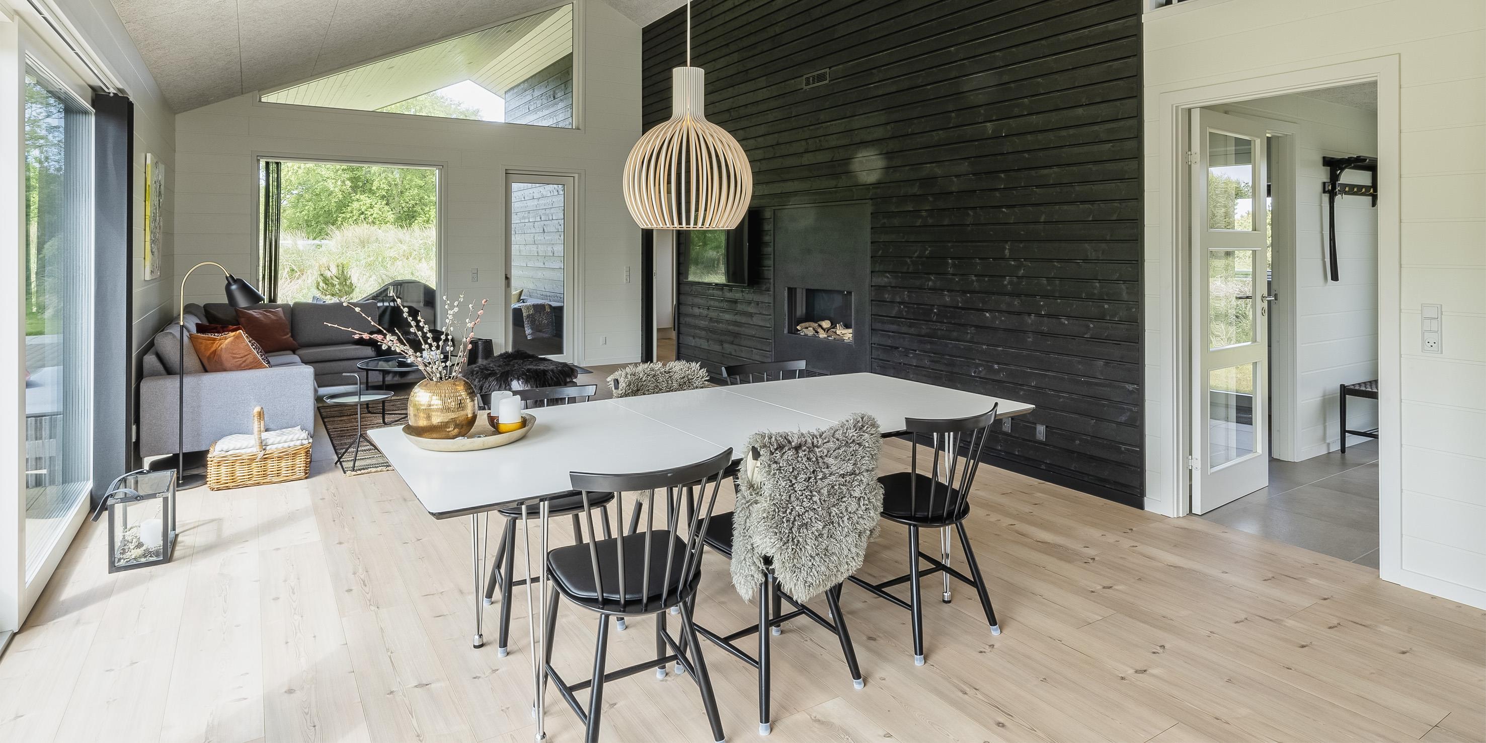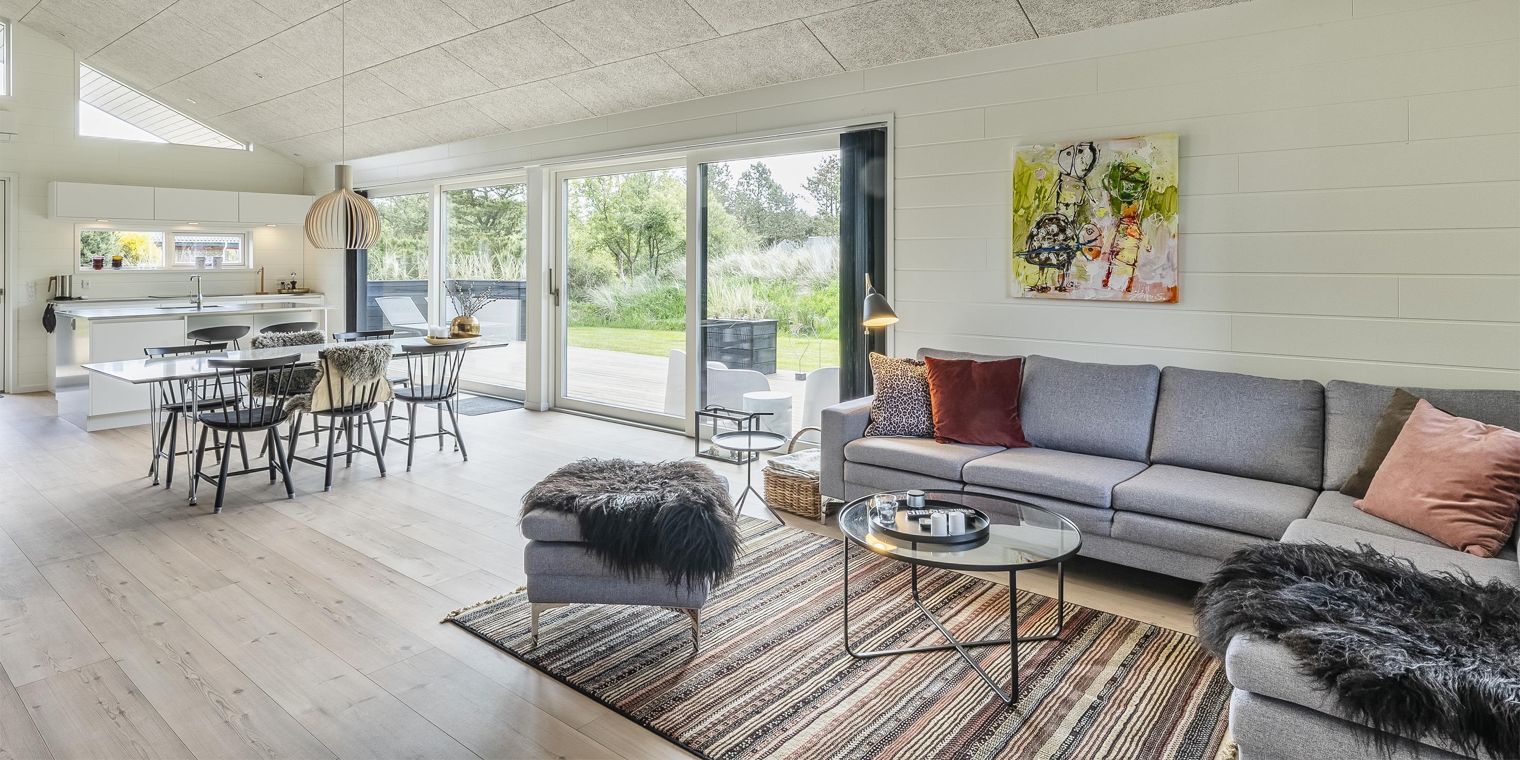 Der Eingangsbereich bietet viel Platz für die Garderobe. Der große Wohnbereich ist mit der offenen Küche verbunden und strahlt eine besondere Atmosphäre aus. Genießen Sie den tollen Blick auf den Gas-Kamin, dazu ein Gläschen Wein und die Erholung kann beginnen. Der Essbereich teilt den Wohnbereich von der Küche. Hier haben alle Gäste genügend Platz. Das Haus hat einen tollen Lichteinfall durch die hohen und großen Fensterfronten. Smart-TV, Stofa-Ferienhauspaket für das Fernsehprogramm (daher nur 5-8 deutsche Fernsehprogramme zu empfangen) und WLAN-Internetzugang mit guter Abdeckung (Glasfaser), außerdem Bluetooth-Lautsprecher und Chrome Cast stehen den Gästen zur Verfügung. Desweiteren ist hier im Wohnbereich eine Fußbodenheizung. Auch der Essbereich und die der Küchenbereich verfügen über eine Fussbodenheizung. Die Küche ist mit allem Komfort wie einer Geschirrspülmaschine, einer Mikrowelle, einem großen Kühlschrank, einem Herd und einer Dunstabzugshabe im Ceranfeld, einem Backofen in arbeitshöhe ausgestattet. Den Gästen stehen zwei schöne Badezimmer mit Fußbodenheizung zur Verfügung. Beide verfügen jeweils über ein Handwaschbecken, ein WC und eine Dusche. Es gibt insgesamt drei Schlafzimmer für die Gäste. DB + DB + DB. Eins der Schlafzimmer hat einen Zugang zum Terrassenbereich. In Verlängerung des Ferienhauses befindet sich ein Hauswirtschaftsraum. Hier ist ein Gefrierschrank (180 Liter), eine Waschmaschine und ein Trockner Wäschetrockner untergebracht. Zugang zum Hems ist vom Küchen-/ Essbereich. Das Haus wird mit Fußbodenheizung, Elektroradiatoren und zusätzlich mit einer Wärmepumpe beheizt. Mit dieser Wärmepumpe haben Sie die Möglichkeiten die Stromkosten zu senken, denn sie ist energiesparend. Haustiere und Rauchen sind nicht erlaubt. Private Ladesteckdosen für Elektroautos. Baujahr 2021.