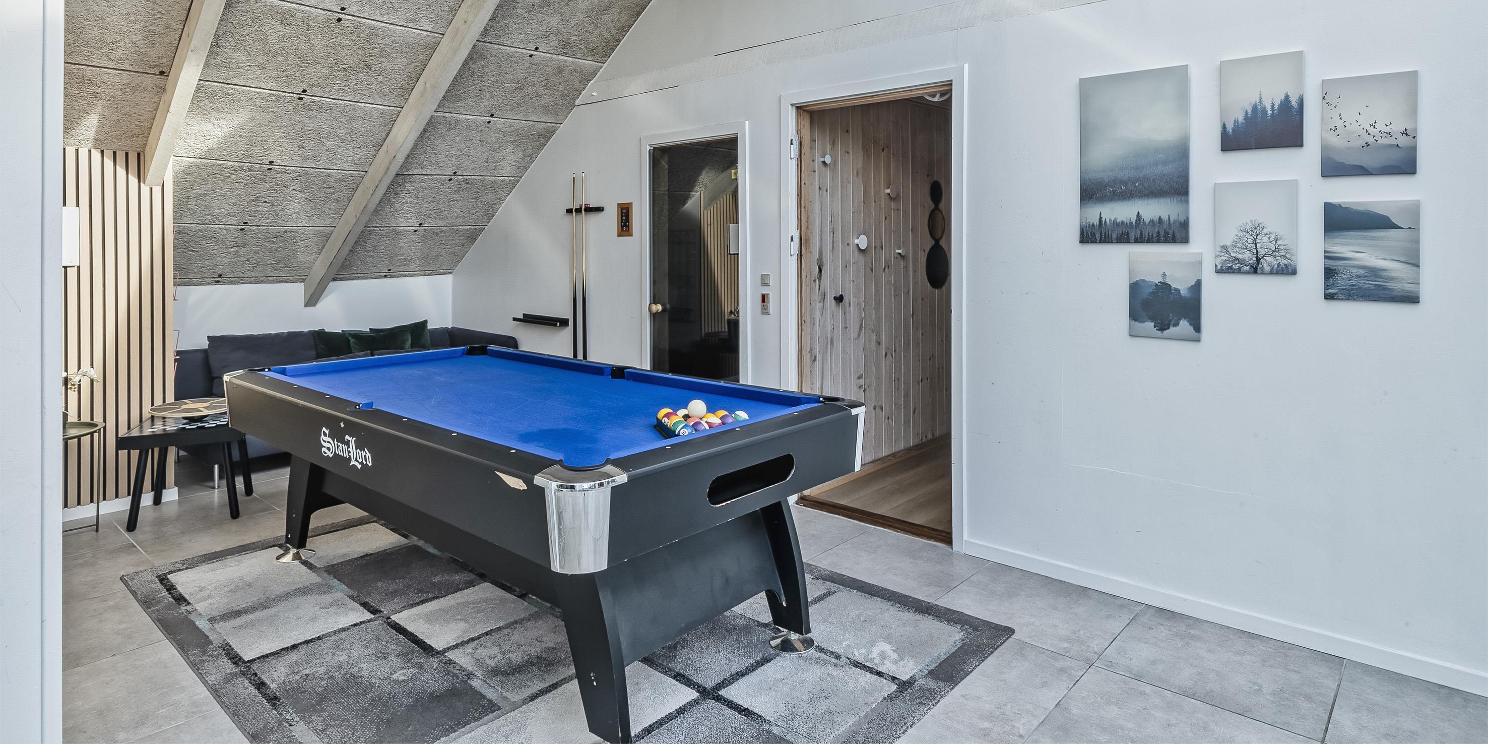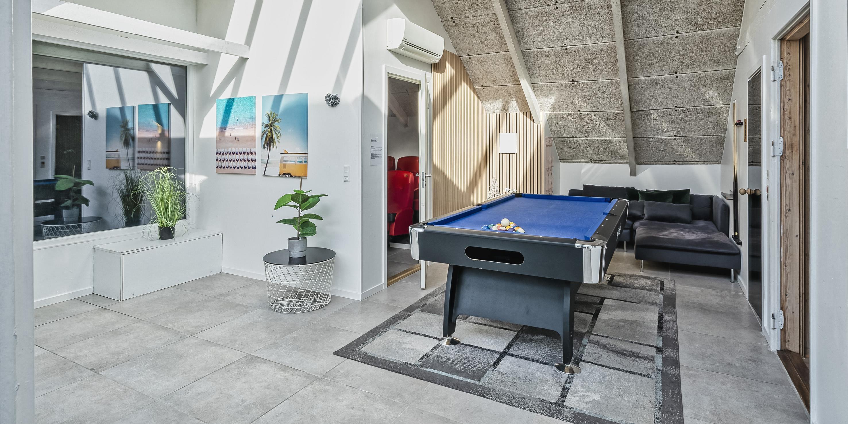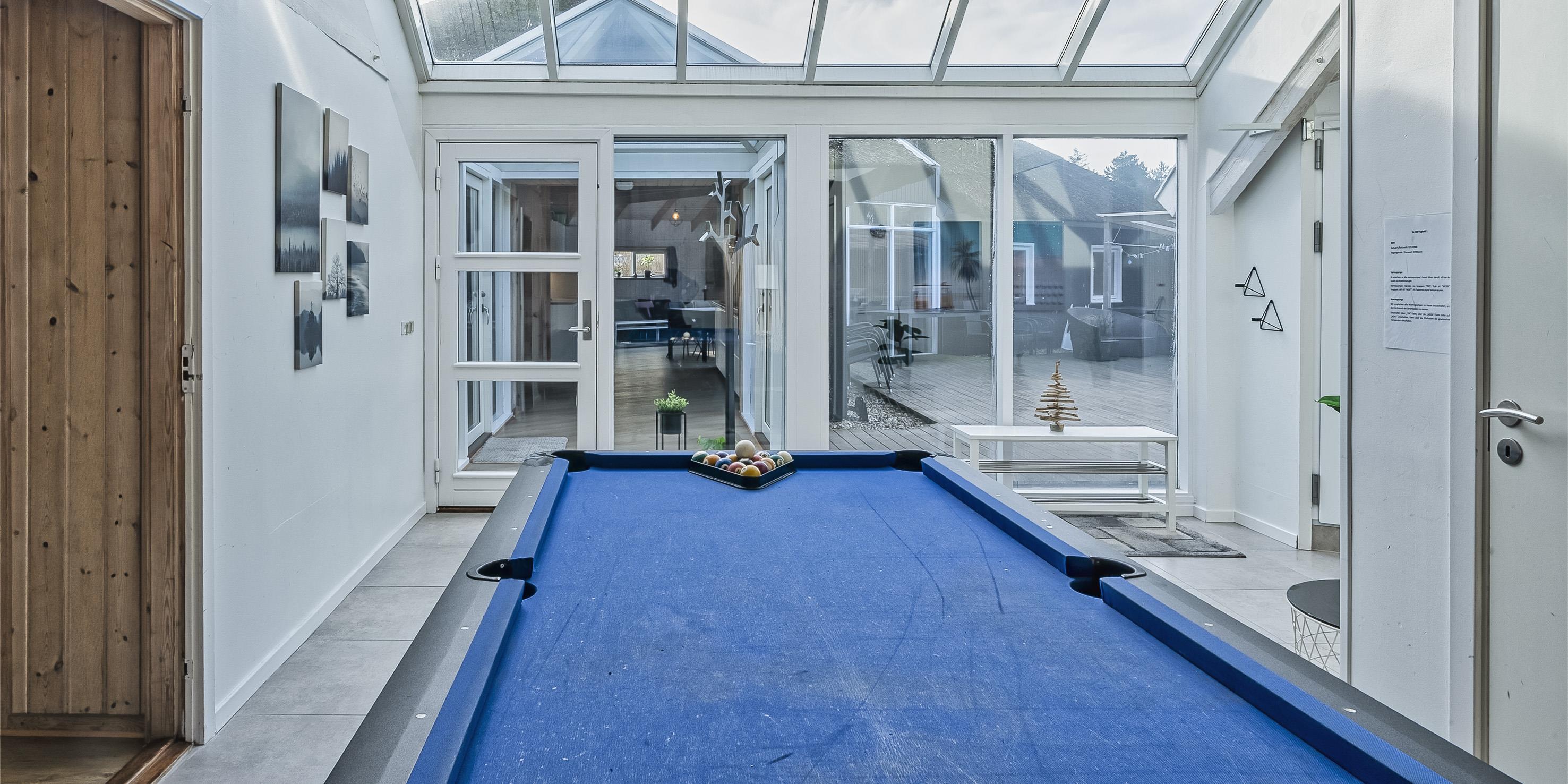 Der Strand ist ca. 1,8 Km vom Haus entfernt und gibt den Gästen einen schönen Spaziergang durch den kleinen Ort Vejers Strand zum Strand hin. Innen im Haus befindet sich dann ein separater Aktivitätsraum. Hier ist ein Billiard-Tisch aufgestellt.