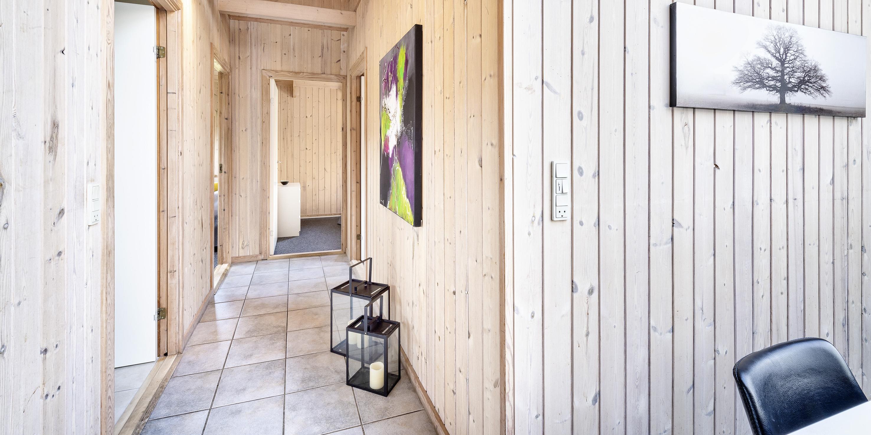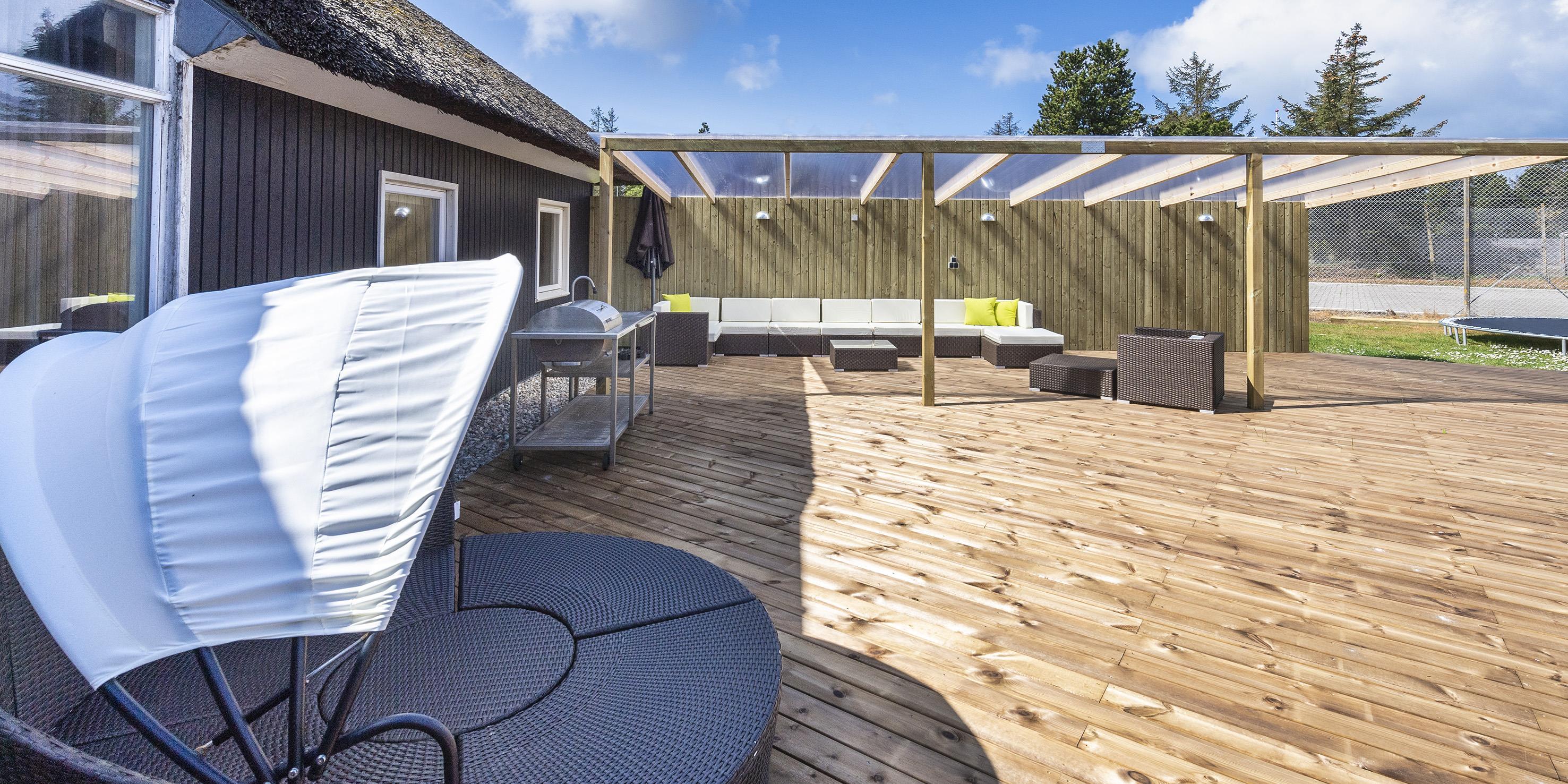 Vom Eingangsbereich haben Sie dann den Aussenzugang zum Terrassenbereich. Zur linken Seite ist ein grösserer Teil überdacht und hier können sie die Ruhe mit Ihrer Lektüre geniessen oder auch die Grillabende toll gestalten. Dafür steht dann auch eine kleine Aussenküche mit einem Kohle-Grill zur Verfügung. Ein Aussen-Jacuzzi ( für ca. 6 Personen) steht den Gästen auch das ganze Jahr zur Verfügung und befindet sich unter der Überdachung. Dieser überdachte Terrassenbereich kann sowie im Frühjahr als auch im Herbst genutzt werden und selbstverständlich in den Sommermonaten. Ein Internet-Anschluss (W-lan) steht den Gästen im Ferinhaus zur Verfügung. Es sind max. 2 Haustiere erlaubt. Das Rauchen im Ferienhaus ist untersagt. Es sind keine Jugendgruppen im Ferienhaus erlaubt. Es fallen zusätzlich Wasserkosten bei diesm Ferienhaus an. Die offengelegten Balken im Ferienhaus und die Oberlichter geben dem Ferienhaus den besonderen Sommerhaus-Stil mit seiner Gemütlichkeit.
