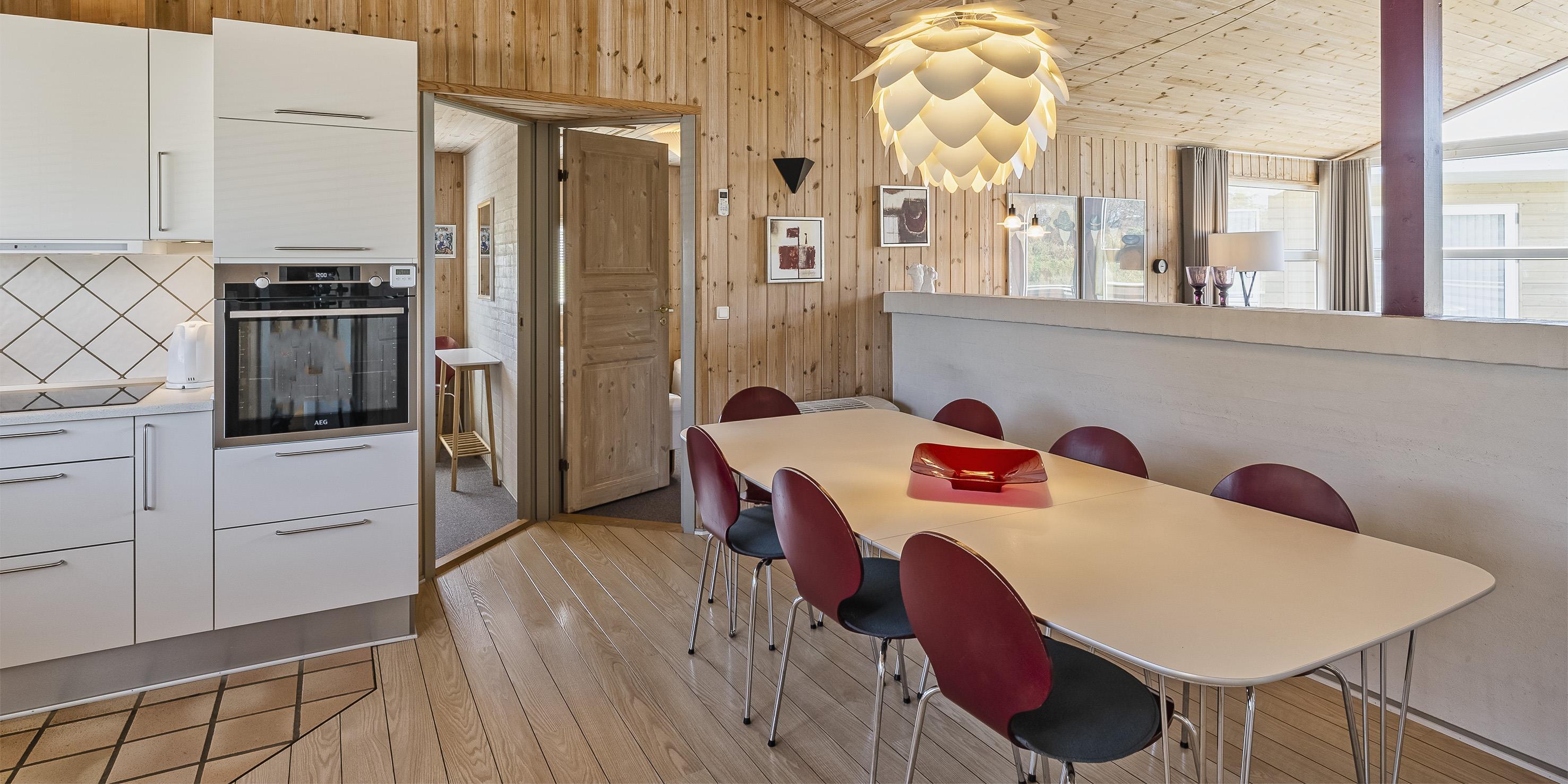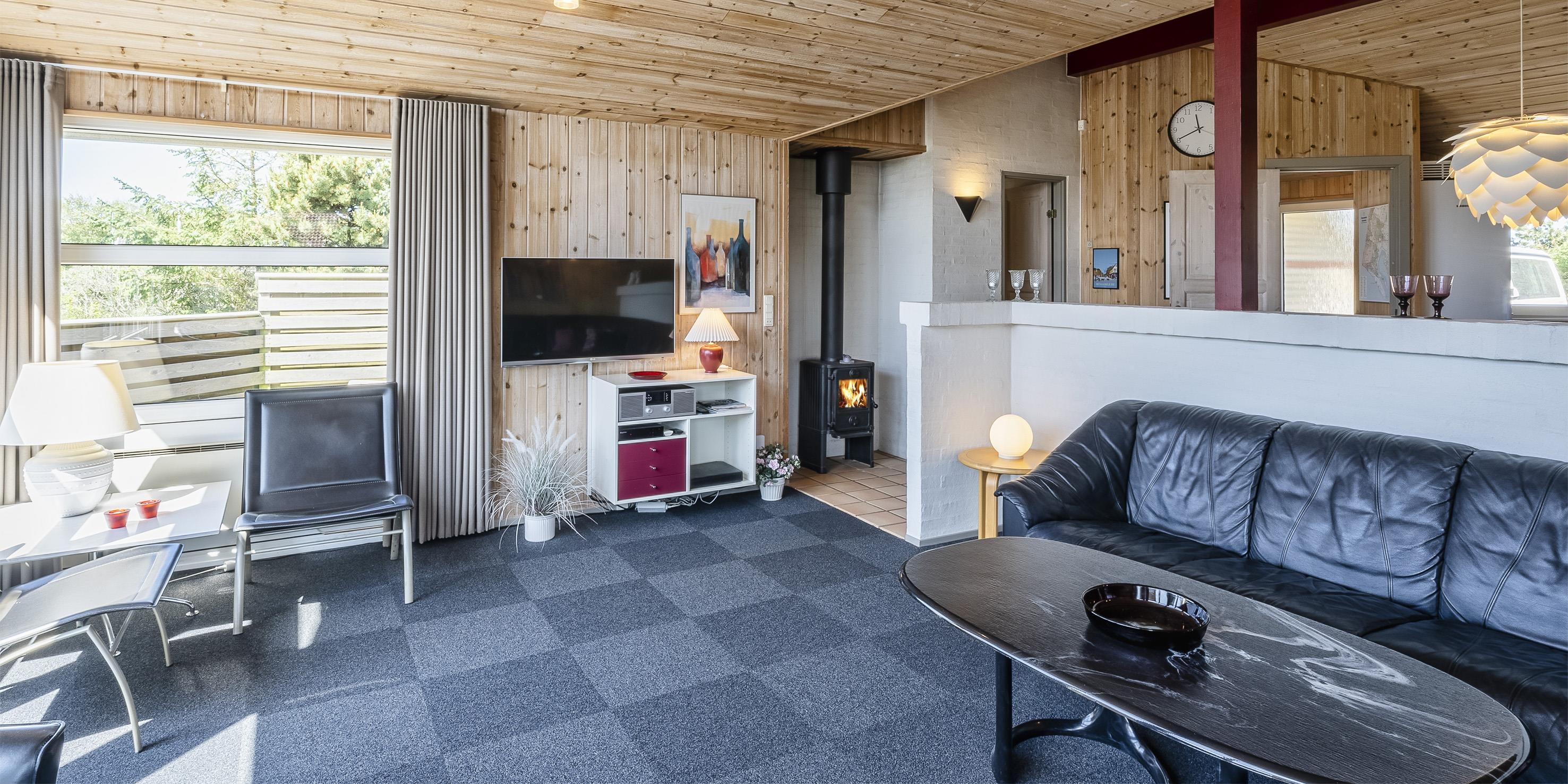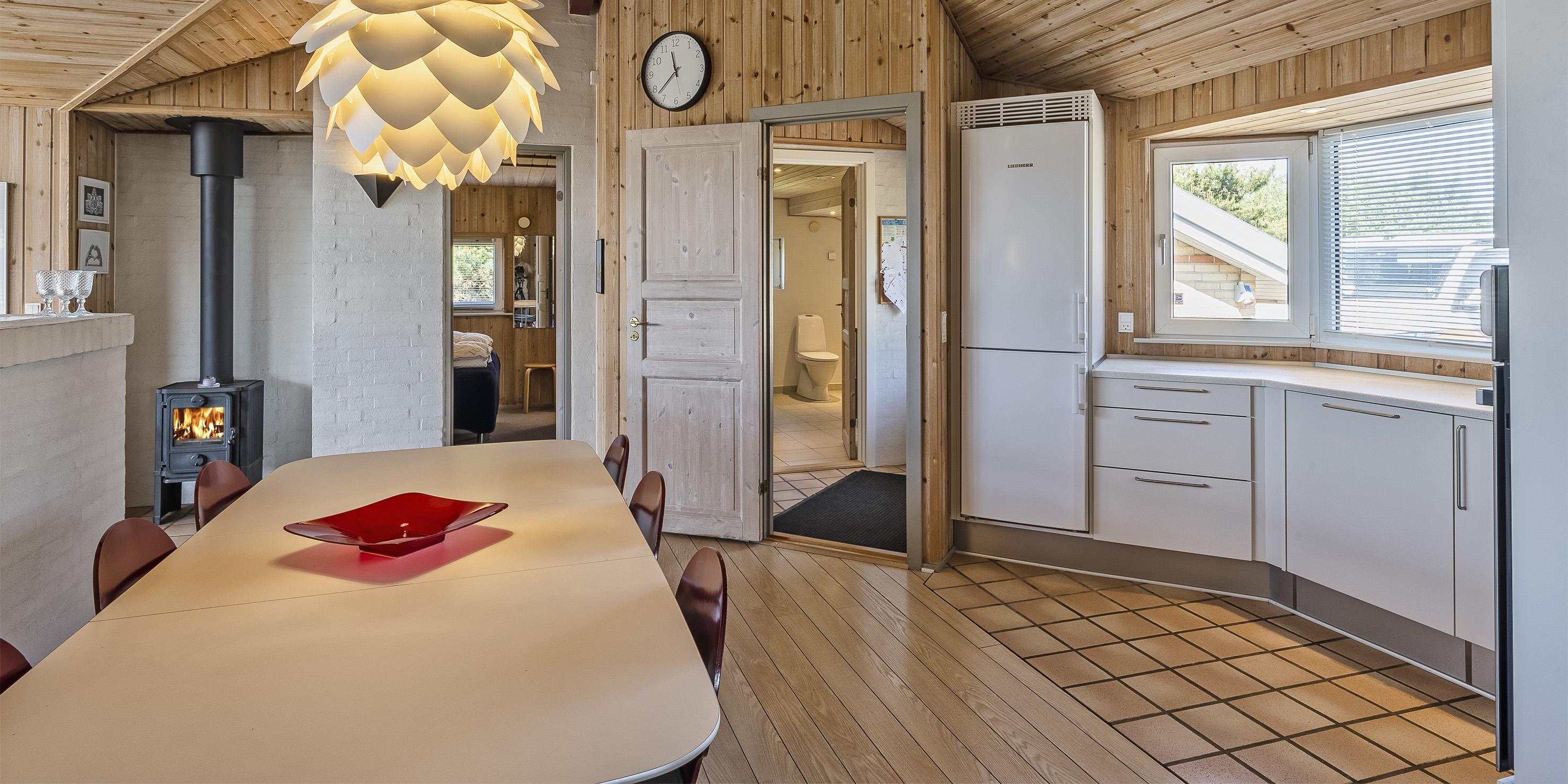 Flott eingerichtetes Ferienhaus auf einem großen naturbelassenem Rasengrundstück gelegen. Das Ferienhaus ist für 6 Personen ausgestattet. Der Strand ist etwa 1 Km vom Haus entfernt. Das Wohnzimmer verfügt über eine gemütliche Rundsitzecke und der Kamin ist hier auch untergebracht. Er gibt eine angenehme Wärme ab und man fühlt dann gleich diese tolle Gemütlichkeit. Es befindet sich eine Warmepumpe im Ferienhaus. Mit dieser Warmepumpe haben sie die Möglichkeit die Stromkosten zu senken, denn die Warmepumpe ist energiesparend. Das deutsche Fernsehprogramm empfangen Sie über Stofa, daher sind es nur 5-8 Kanäle die Sie empfangen können. Smart-Tv. Die neue Küche dient als Wohnküche, denn hier ist der Speiseplatz mit integriert. Die Küche verfügt über einen Herd mit Cerankochfeld, einem Backofen, einer Geschirrspülmaschine, einer Mikrowelle und einer Kühl- und Gefrierkombination. Das große Badezimmer hat ein WC, ein Handwaschbecken, eine Dusche und einen Whirlpool. Hier in dem großen Badezimmer sind die Waschmaschine und der Trockner untergebracht. Ein weiteres kleines neues Badezimmer hat von einem Schlafzimmer aus einen Zugang und ist mit einem WC, einem Handwaschbecken und einer Dusche ausgestattet. Insgesamt stehen den Gästen drei Schlafzimmer zur Verfügung: DB + DB + 2B. Zwei der Schlafzimmer sind mit je einem Doppelbett ausgestattet und das Dritte verfügt über zwei Einzelbetten. Das Ferienhaus hat einen Internetanschluss (W-Lan). Ein schöner Terrassenbereich steht Ihnen am Ferienhaus zur Verfügung (Teilweise geschlossen).Rauchen und Haustiere sind nicht erlaubt. Zusätzlich befindet sich ein Anschluss am Ferienhaus für El-Fahrzeuge - Bringen Sie selbst ein Kabel mit. Gratis Eintritt für das Golf in Ho bei Blåvand für 2026. Das Ferienhaus ist 1994 erbaut worden. Renoviert 2018/2019.