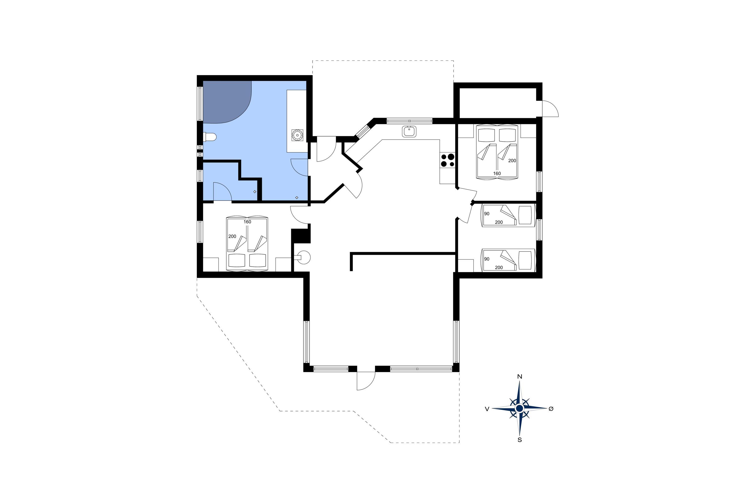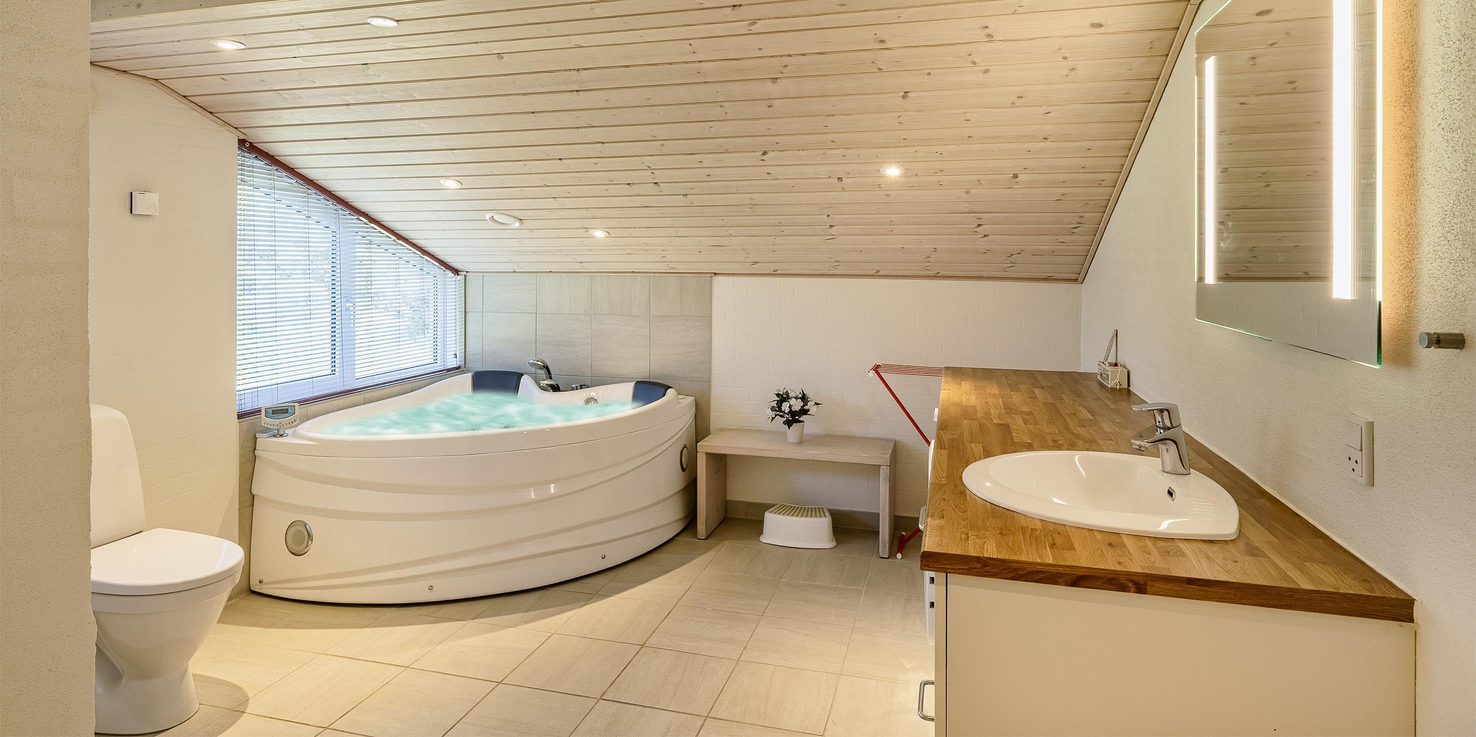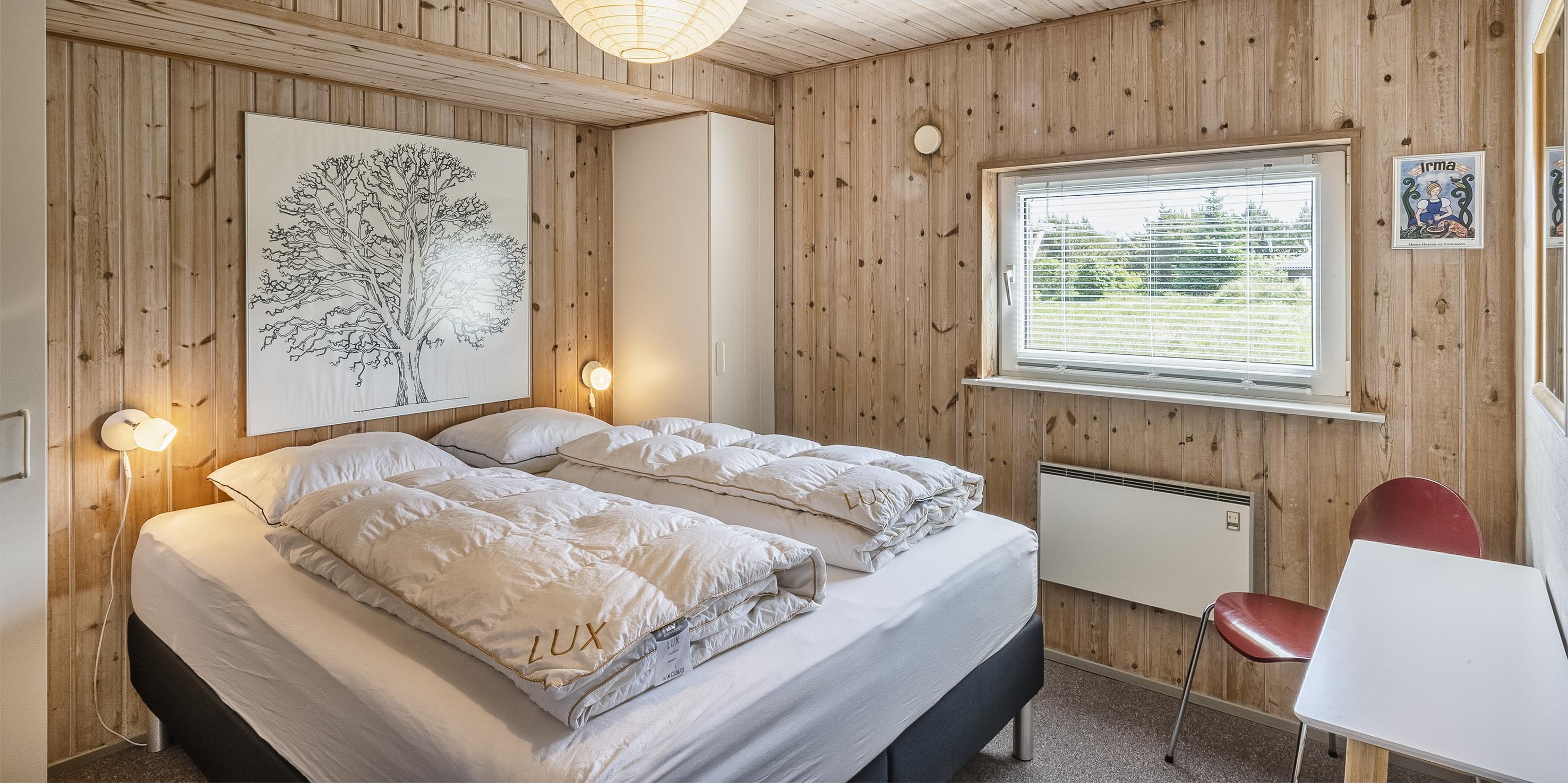 Flott eingerichtetes Ferienhaus auf einem großen naturbelassenem Rasengrundstück gelegen. Das Ferienhaus ist für 6 Personen ausgestattet. Der Strand ist etwa 1 Km vom Haus entfernt. Das Wohnzimmer verfügt über eine gemütliche Rundsitzecke und der Kamin ist hier auch untergebracht. Er gibt eine angenehme Wärme ab und man fühlt dann gleich diese tolle Gemütlichkeit. Es befindet sich eine Warmepumpe im Ferienhaus. Mit dieser Warmepumpe haben sie die Möglichkeit die Stromkosten zu senken, denn die Warmepumpe ist energiesparend. Das deutsche Fernsehprogramm empfangen Sie über Stofa, daher sind es nur 5-8 Kanäle die Sie empfangen können. Smart-Tv. Die neue Küche dient als Wohnküche, denn hier ist der Speiseplatz mit integriert. Die Küche verfügt über einen Herd mit Cerankochfeld, einem Backofen, einer Geschirrspülmaschine, einer Mikrowelle und einer Kühl- und Gefrierkombination. Das große Badezimmer hat ein WC, ein Handwaschbecken, eine Dusche und einen Whirlpool. Hier in dem großen Badezimmer sind die Waschmaschine und der Trockner untergebracht. Ein weiteres kleines neues Badezimmer hat von einem Schlafzimmer aus einen Zugang und ist mit einem WC, einem Handwaschbecken und einer Dusche ausgestattet. Insgesamt stehen den Gästen drei Schlafzimmer zur Verfügung: DB + DB + 2B. Zwei der Schlafzimmer sind mit je einem Doppelbett ausgestattet und das Dritte verfügt über zwei Einzelbetten. Das Ferienhaus hat einen Internetanschluss (W-Lan). Ein schöner Terrassenbereich steht Ihnen am Ferienhaus zur Verfügung (Teilweise geschlossen).Rauchen und Haustiere sind nicht erlaubt. Zusätzlich befindet sich ein Anschluss am Ferienhaus für El-Fahrzeuge - Bringen Sie selbst ein Kabel mit. Gratis Eintritt für das Golf in Ho bei Blåvand für 2026. Das Ferienhaus ist 1994 erbaut worden. Renoviert 2018/2019.
