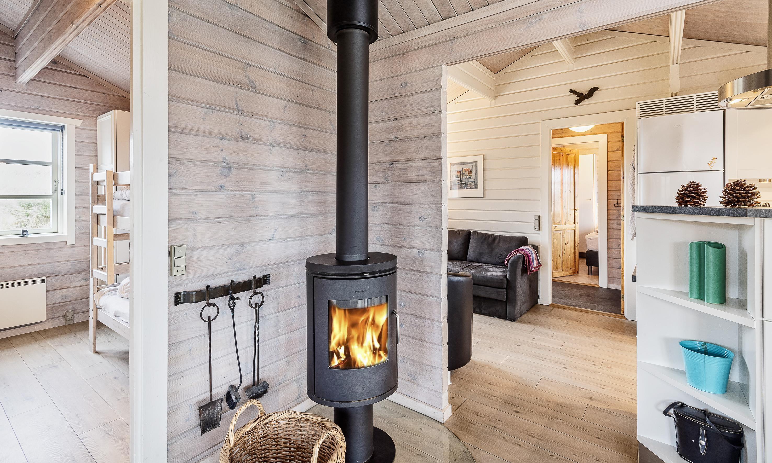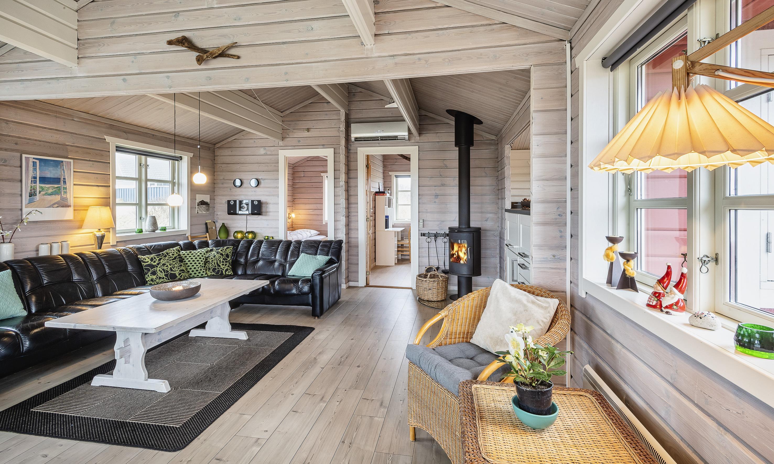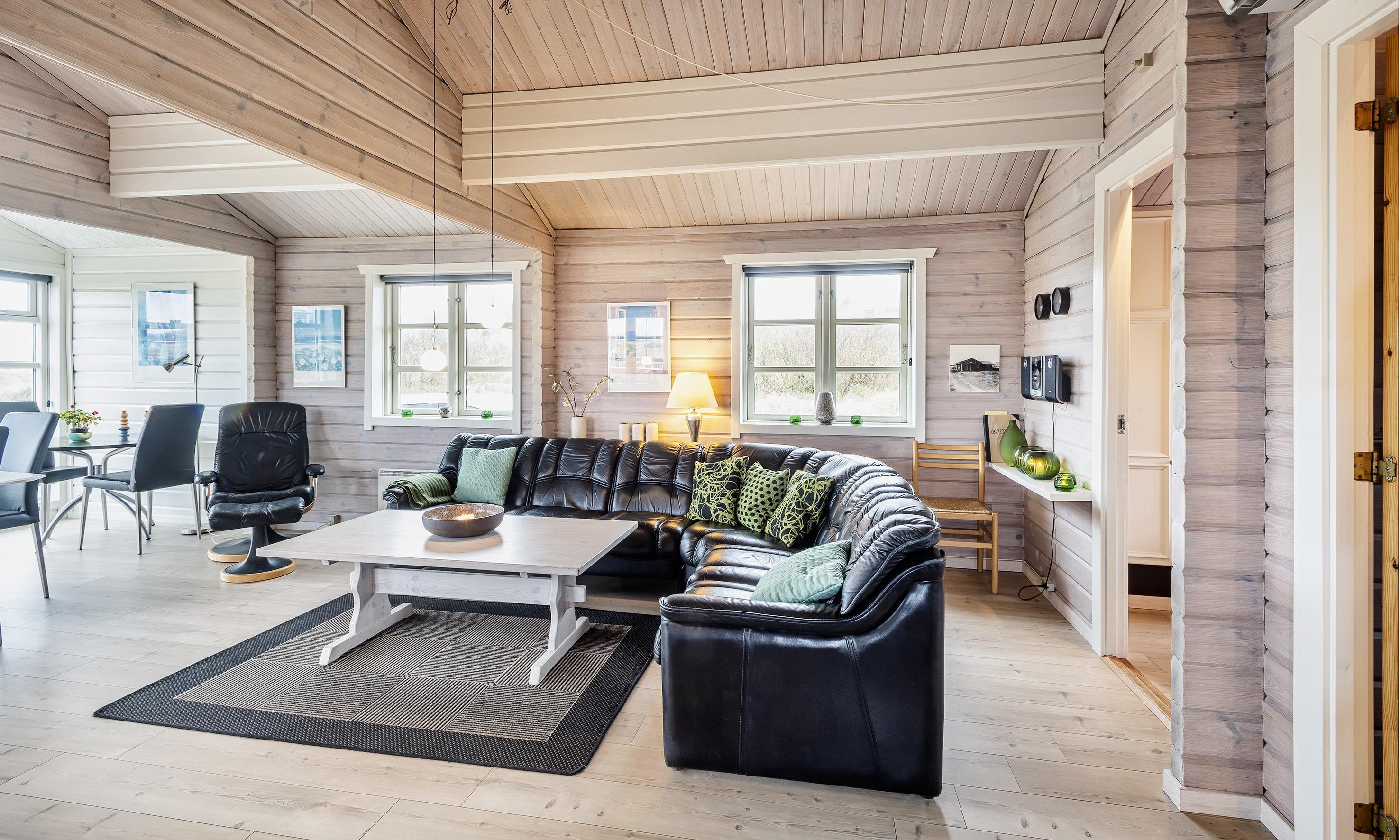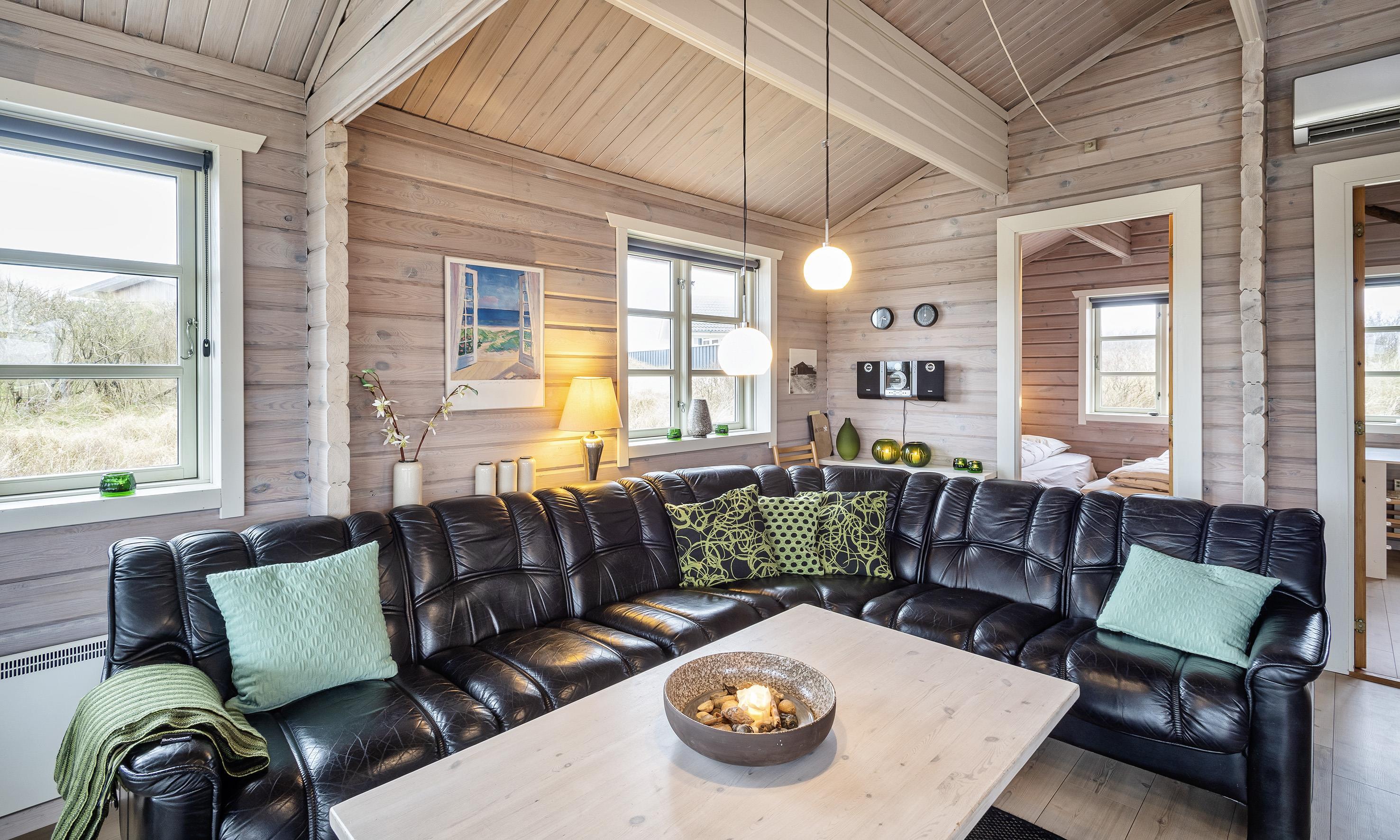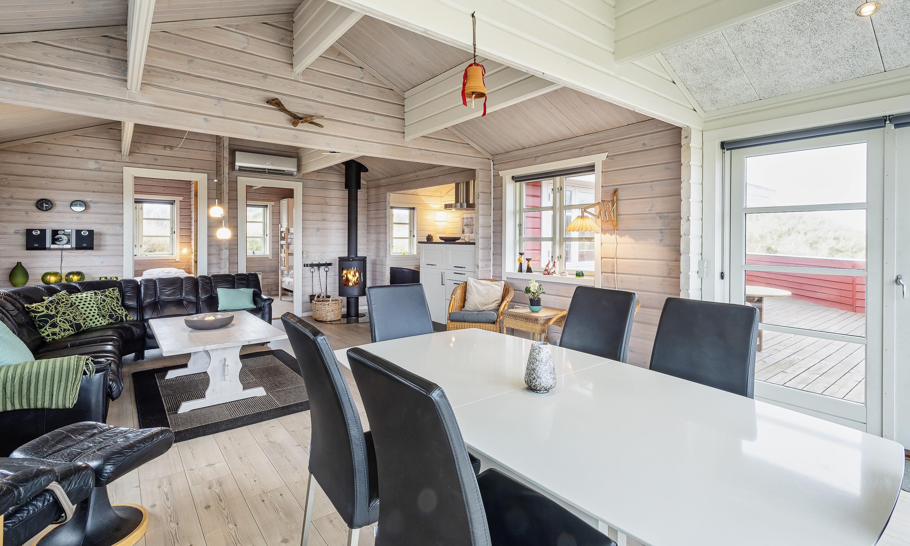 Charmant eingerichtetes Ferienhaus auf einem wunderschönen Dünengrundstück gelegen. Das Feierhaus ist für 6 Personen ausgestattet und weniger als 100 Meter vom Strand entfernt. Im Wohnbereich ist eine gemütliche große Leder-Rundsitzecke aufgestellt und ein Kamin. Es befindet sich eine Warmepumpe im Ferienhaus. Mit dieser Warmepumpe haben sie die Möglichkeit die Stromkosten zu senken, denn die Warmepumpe ist energiesparend. Ein Fernsehgerät ist in einem separaten Zimmer aufgestellt. Die deutschen Programme empfangen Sie über eine Parabolantenne. Der Essbereich befindet sich vor einer großen Fensterfront. Von hier haben Sie auch einen tollen Ausblick auf die Dünen. Im gesamten Wohn-, Ess- und Küchenbereich ist ein schicker Holzfußboden verlegt. In einer Ecke im Wohnbereich ist eine kleine Leseecke mit zwei Rattansesseln eingerichtet. Die Küche ist modern und hat einen Herd mit Cerankochfeld, ein Backofen, eine Geschirrspülmaschine und eine Kühl- und Gefrierkombination. Mikrowelle im Abstellraum. Das Badezimmer ist mit einem WC, einem Handwaschbecken und einer Dusche ausgestattet. Eine Handtuchhaltereizung ist ebenfalls installiert. Insgesamt befinden sich drei Schlafzimmer im Ferienhaus: DB + 2B + 2B. Eine hat ein Doppelbett, eines hat zwei Einzelbetten und eines hat Etagenbetten. Eine Waschmaschine steht den Gästen auch zur Verfügung. Das Ferienhaus verfügt über einen Internetanschluss (W-Lan). Ein großzügiger Terrassenbereich steht Ihnen für Ihr Sonnenbad oder Ihre Kaffeetafel zur Verfügung. Schaukel. Hinterm Haus steht eine kleine Sitzgruppe vor einer Düne zum ausruhen bereit. Es ist max. ein Haustier erlaubt. Freie Das Ferienhaus ist 1983 erbaut worden. Gratis Eintritt für das Badeland und Bowling in Varde in 2026. Das Rauchen ist nicht gestattet. Renoviert 2010.