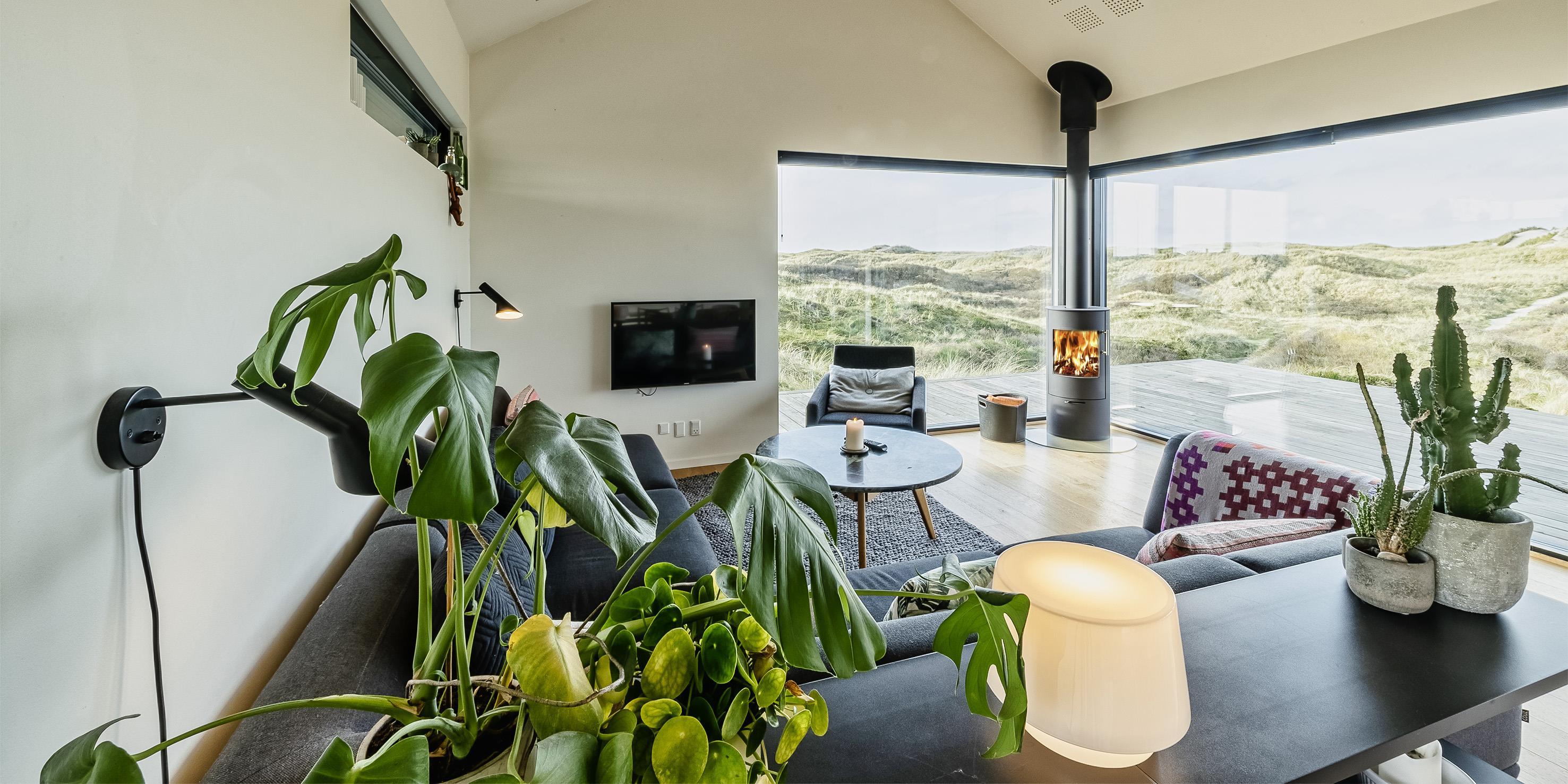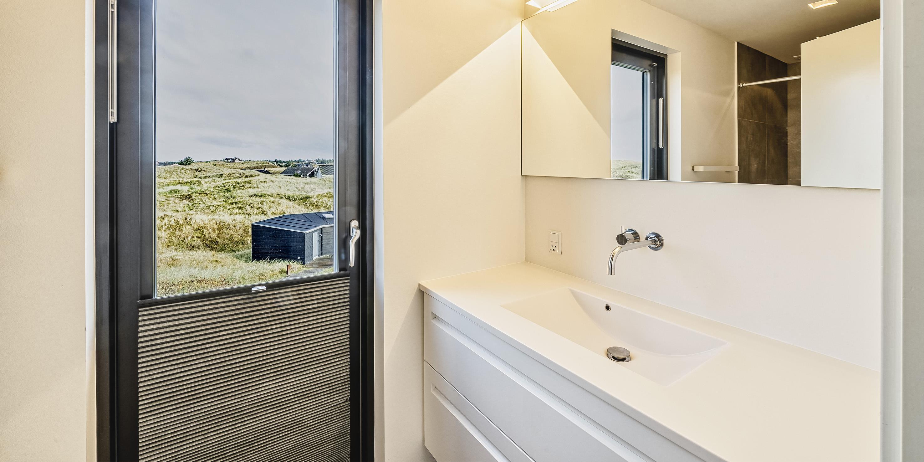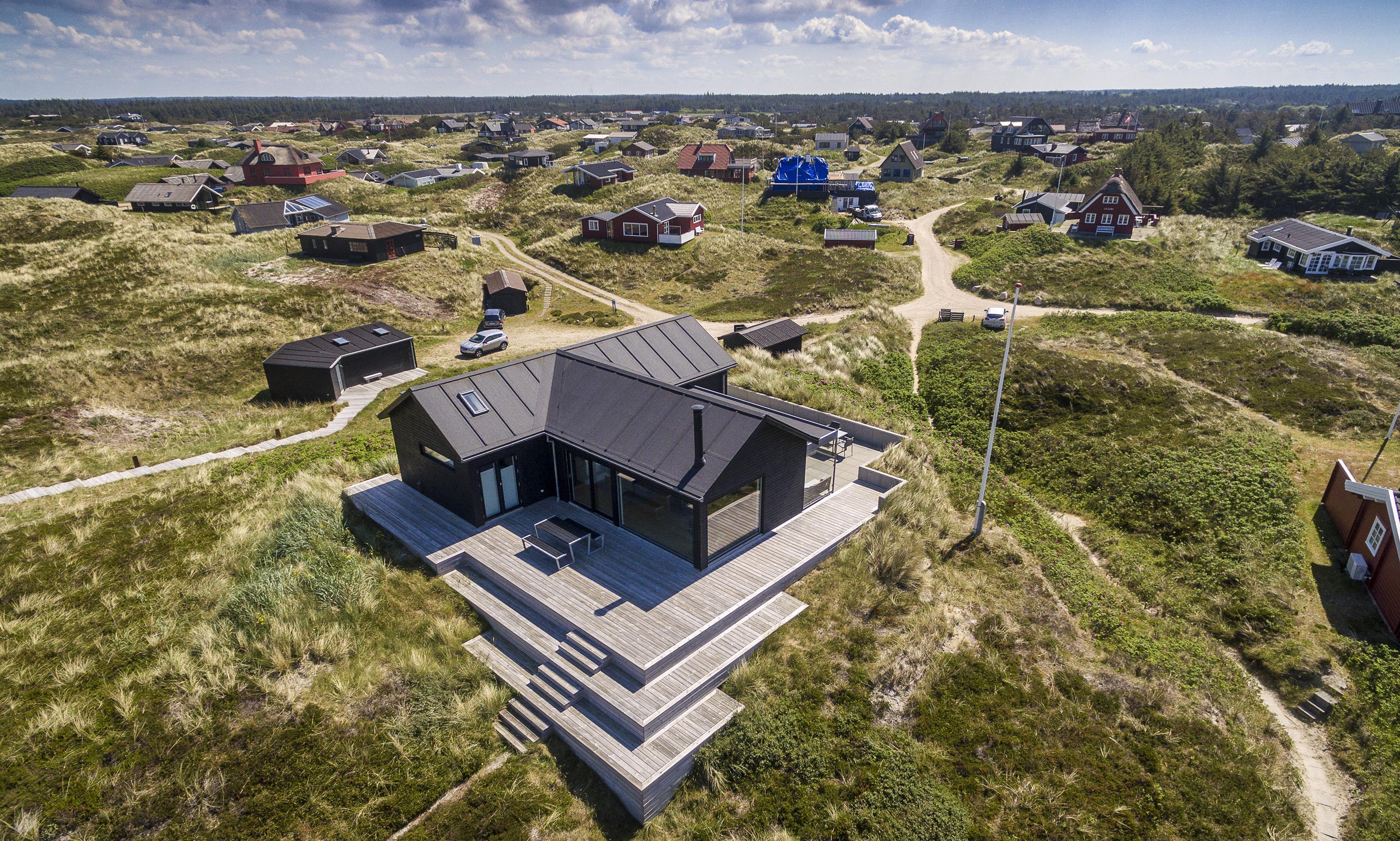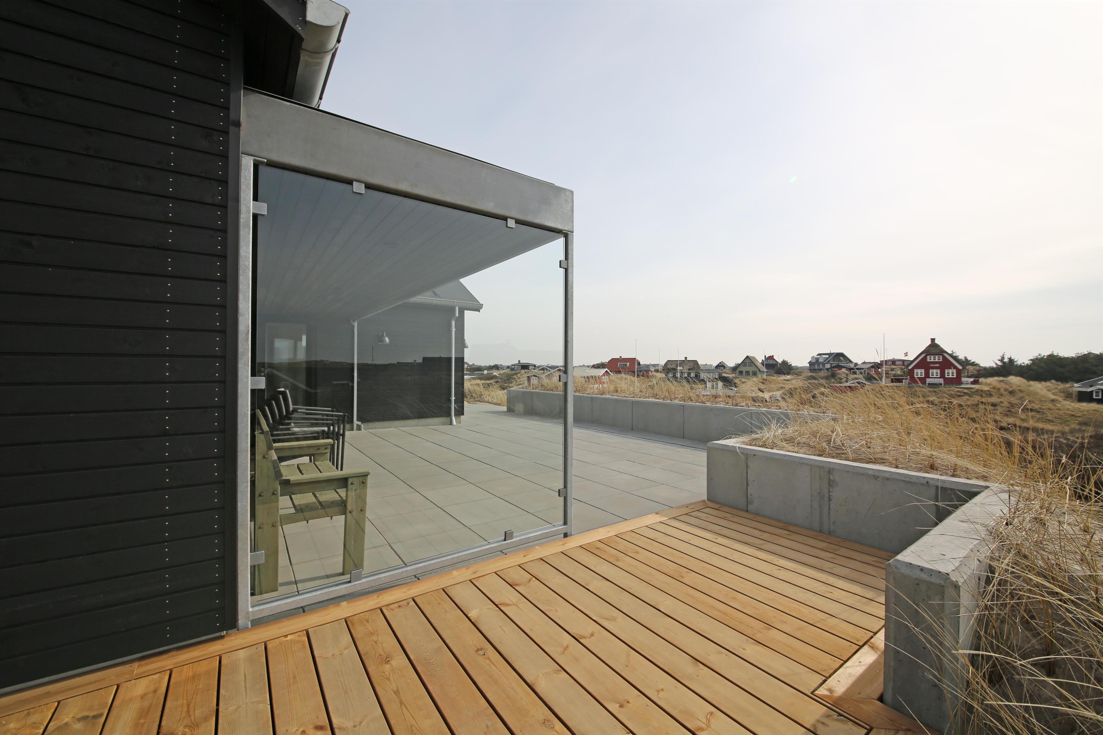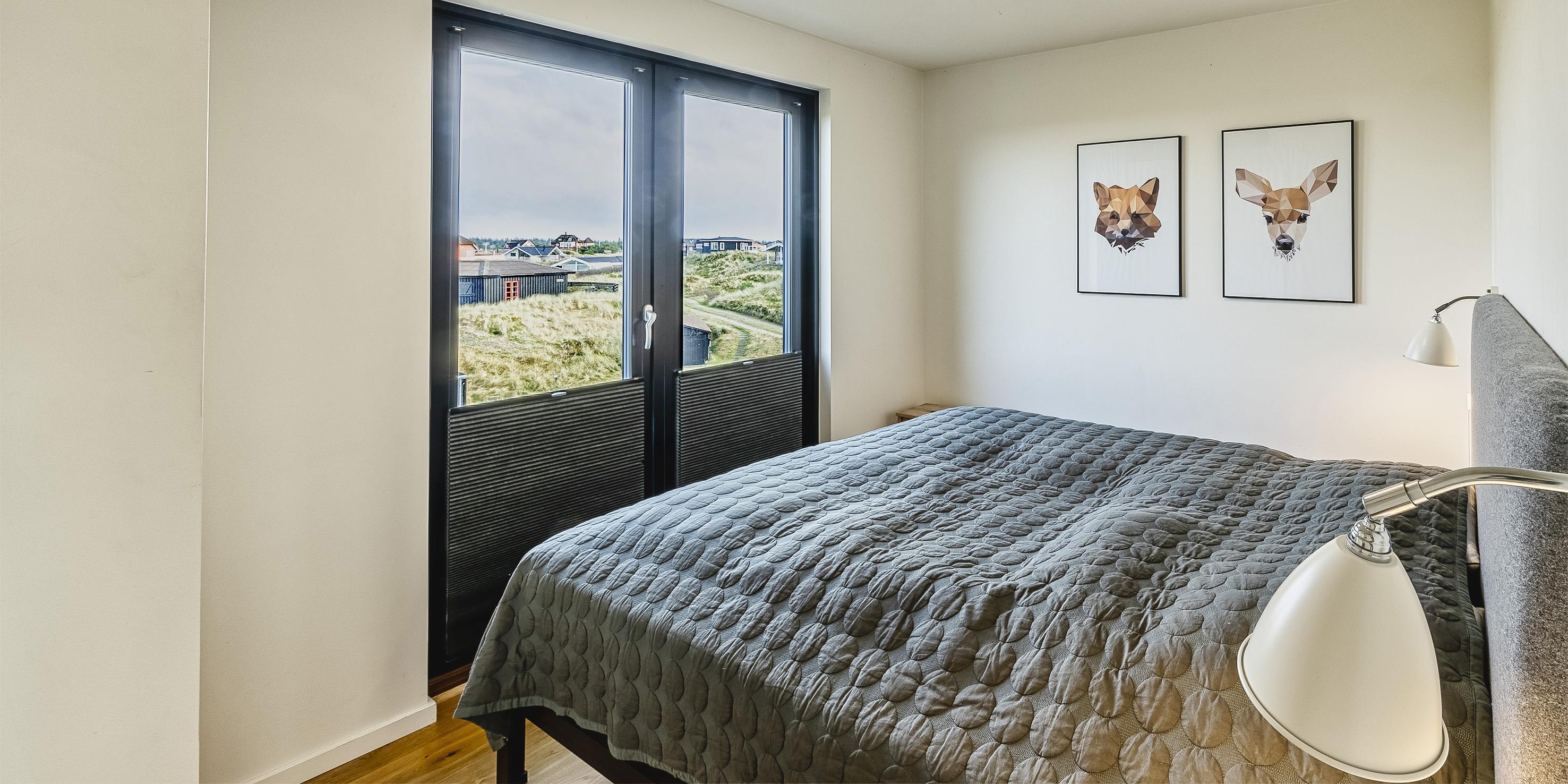 Neubauferienhaus/Energiesparhaus in bevorzugter Wohngegend von Vejers Strand, auf einer Düne gelegen und mit Panoramablick Richtung Meer. Das Ferienhaus ist für 6 Personen ausgestattet und sehr modern eingerichtet. Über die Dünenkette gelangen Sie auf direktem Wege zum Strand, der nur ”Sage und Schreibe” 100 Meter entfernt ist. Der Wohnbereich ist mit dem Essbereich und der Küche verbunden und komplett offen gehalten. Das komplette Ferienhaus ist hell und freundlich gestaltet. Zwischen zwei großen Fensterfronten befindet sich der Kamin. Der Blick auf den gezündeten Kamin von der Sitzgruppe und aus den Fenstern ist einfach nur traumhaft, besser kann es nicht sein. Das deutsche Fernsehprogramm empfangen Sie über Stofa, daher sind es nur 5-8 Kanäle die Sie empfangen können. Google Chromecast. Eine Playstation 4 steht für die Bewohner des Hauses zur Verfügung. Die Küche beinhaltet einen Herd mit Cerankochfeld, einen Backofen in Arbeitshöhe, eine Geschirrspülmaschine, einer Mikrowelle und einer Kühl- und Gefrierkombination. Der Essbereich ist großzügig und bietet ausreichend Platz für alle an. Das gesamte Ferienhaus ist mit einem Laminatfußboden ausgestattet, außer die Bereiche der Bäder, Küche und des Eingangsbereich, diese sind gefliest. Eine Fußbodenheizung ist im ganzen Ferienhaus verlegt. Es gibt zwei Bäder im Ferienhaus. Beide sind mit je einem WC, einem Handwaschbecken und einer Dusche ausgestattet. Sie finden insgesamt drei Schlafzimmer im Haus: DB + DB + 2B. Eine schöne große Terrasse führt rund ums Haus, teilweise ist es eine Holzterrasse und teilweise mit Steinfliesen verlegt, wobei auch ein kleiner Teil direkt am Ferienhaus überdacht ist. Ein Gasgrill steht zur Benutzung zur Verfügung. Für Gas muss der Mieter selbser sorgen. Das Ferienhaus verfügt über einen Internetanschluss (W-Lan). Desweiteren stehen eine Waschmaschine und ein Trockner zur Verfügung, ebenfalls ein kleiner Schuppen. Das Rauchen im Ferienhaus ist nicht erlaubt. Es sind keine Haustiere erlaubt. Das Ferienhaus ist in 2016 erbaut worden.