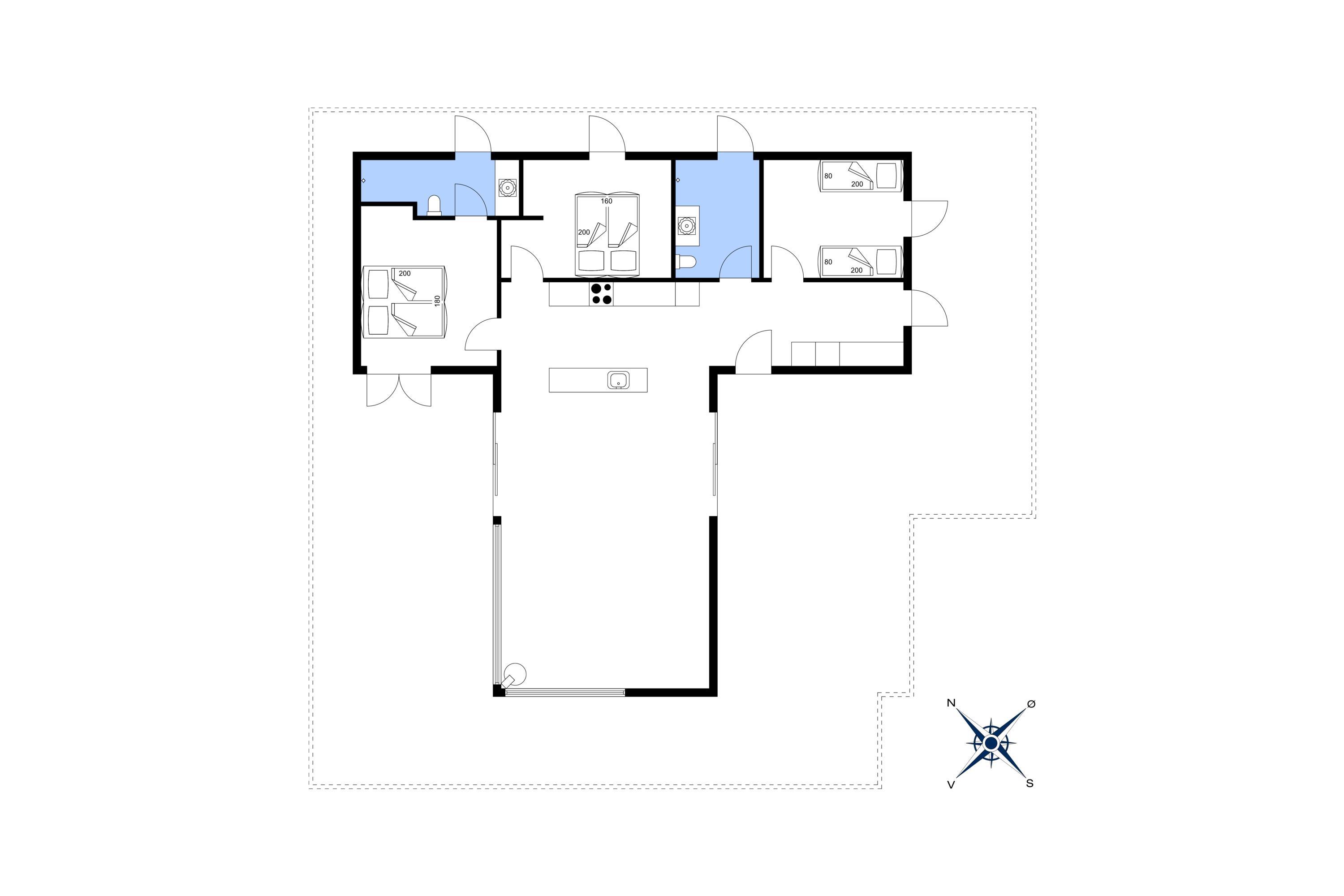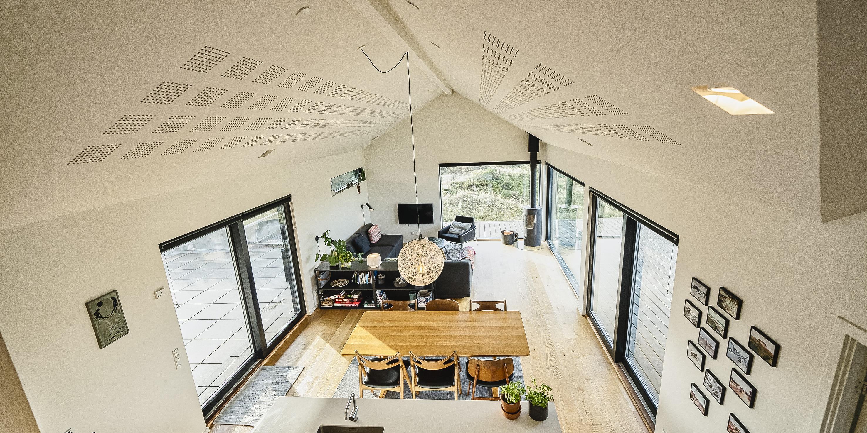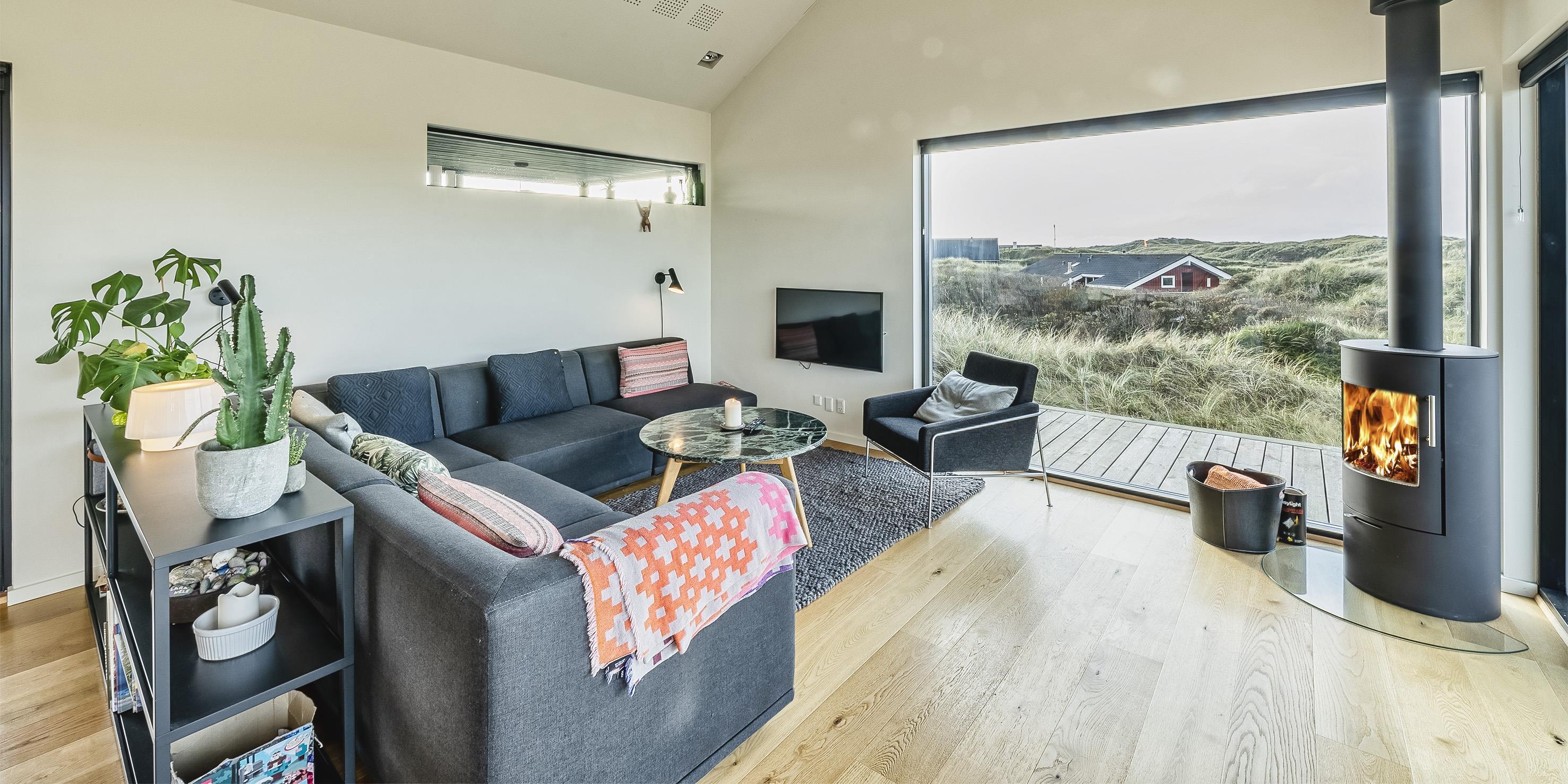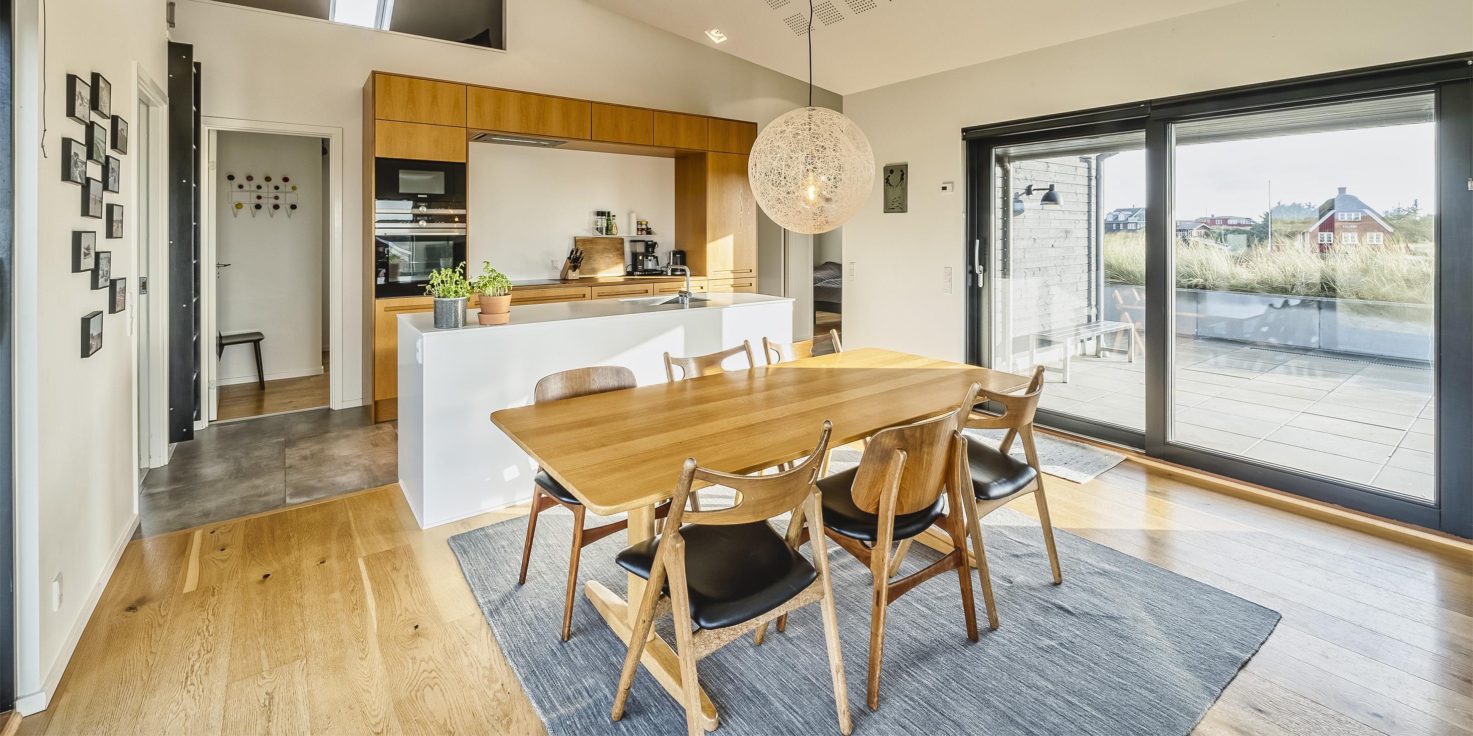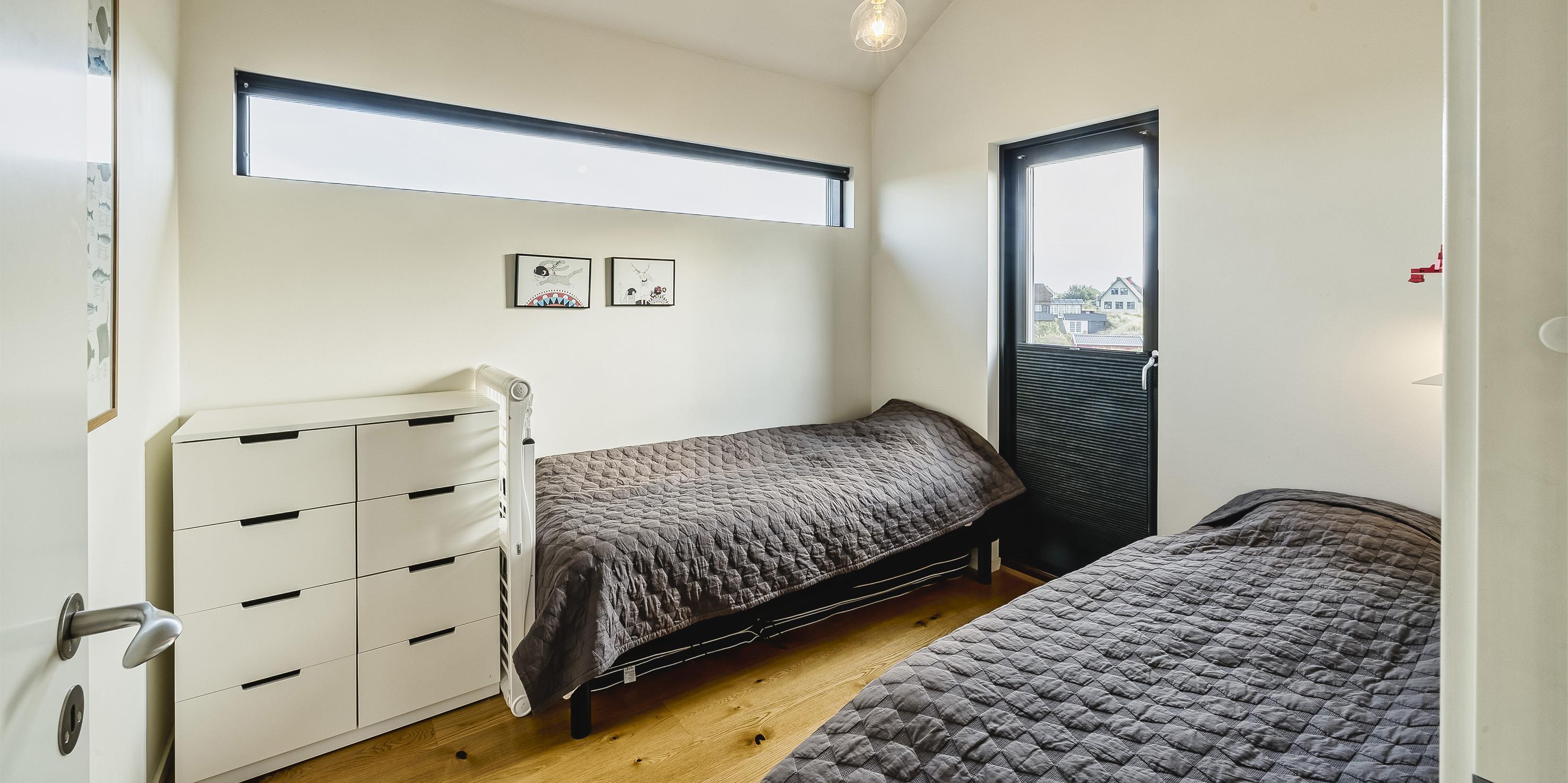 Neubauferienhaus/Energiesparhaus in bevorzugter Wohngegend von Vejers Strand, auf einer Düne gelegen und mit Panoramablick Richtung Meer. Das Ferienhaus ist für 6 Personen ausgestattet und sehr modern eingerichtet. Über die Dünenkette gelangen Sie auf direktem Wege zum Strand, der nur ”Sage und Schreibe” 100 Meter entfernt ist. Der Wohnbereich ist mit dem Essbereich und der Küche verbunden und komplett offen gehalten. Das komplette Ferienhaus ist hell und freundlich gestaltet. Zwischen zwei großen Fensterfronten befindet sich der Kamin. Der Blick auf den gezündeten Kamin von der Sitzgruppe und aus den Fenstern ist einfach nur traumhaft, besser kann es nicht sein. Das deutsche Fernsehprogramm empfangen Sie über Stofa, daher sind es nur 5-8 Kanäle die Sie empfangen können. Google Chromecast. Eine Playstation 4 steht für die Bewohner des Hauses zur Verfügung. Die Küche beinhaltet einen Herd mit Cerankochfeld, einen Backofen in Arbeitshöhe, eine Geschirrspülmaschine, einer Mikrowelle und einer Kühl- und Gefrierkombination. Der Essbereich ist großzügig und bietet ausreichend Platz für alle an. Das gesamte Ferienhaus ist mit einem Laminatfußboden ausgestattet, außer die Bereiche der Bäder, Küche und des Eingangsbereich, diese sind gefliest. Eine Fußbodenheizung ist im ganzen Ferienhaus verlegt. Es gibt zwei Bäder im Ferienhaus. Beide sind mit je einem WC, einem Handwaschbecken und einer Dusche ausgestattet. Sie finden insgesamt drei Schlafzimmer im Haus: DB + DB + 2B. Eine schöne große Terrasse führt rund ums Haus, teilweise ist es eine Holzterrasse und teilweise mit Steinfliesen verlegt, wobei auch ein kleiner Teil direkt am Ferienhaus überdacht ist. Ein Gasgrill steht zur Benutzung zur Verfügung. Für Gas muss der Mieter selbser sorgen. Das Ferienhaus verfügt über einen Internetanschluss (W-Lan). Desweiteren stehen eine Waschmaschine und ein Trockner zur Verfügung, ebenfalls ein kleiner Schuppen. Das Rauchen im Ferienhaus ist nicht erlaubt. Es sind keine Haustiere erlaubt. Das Ferienhaus ist in 2016 erbaut worden.