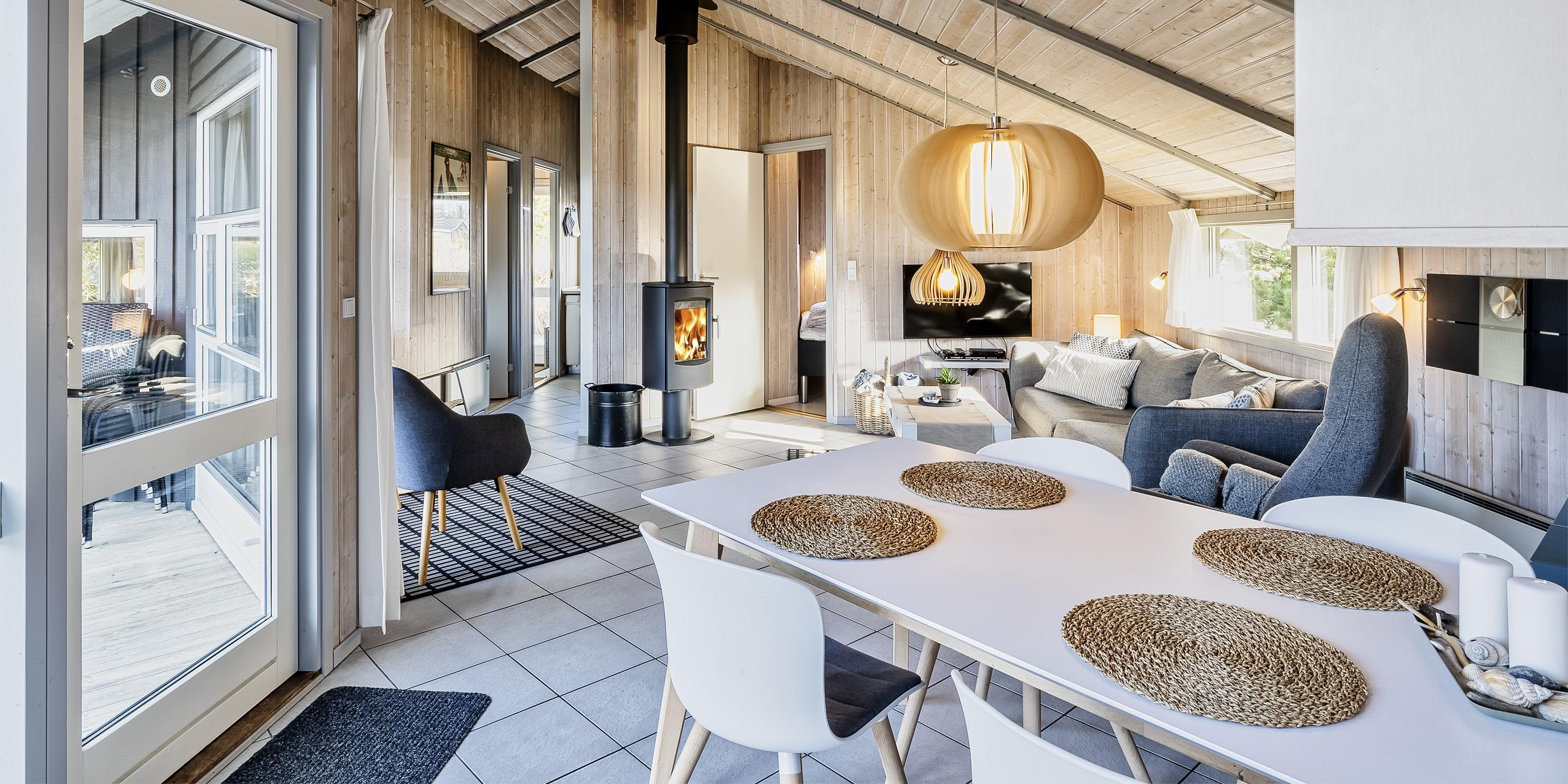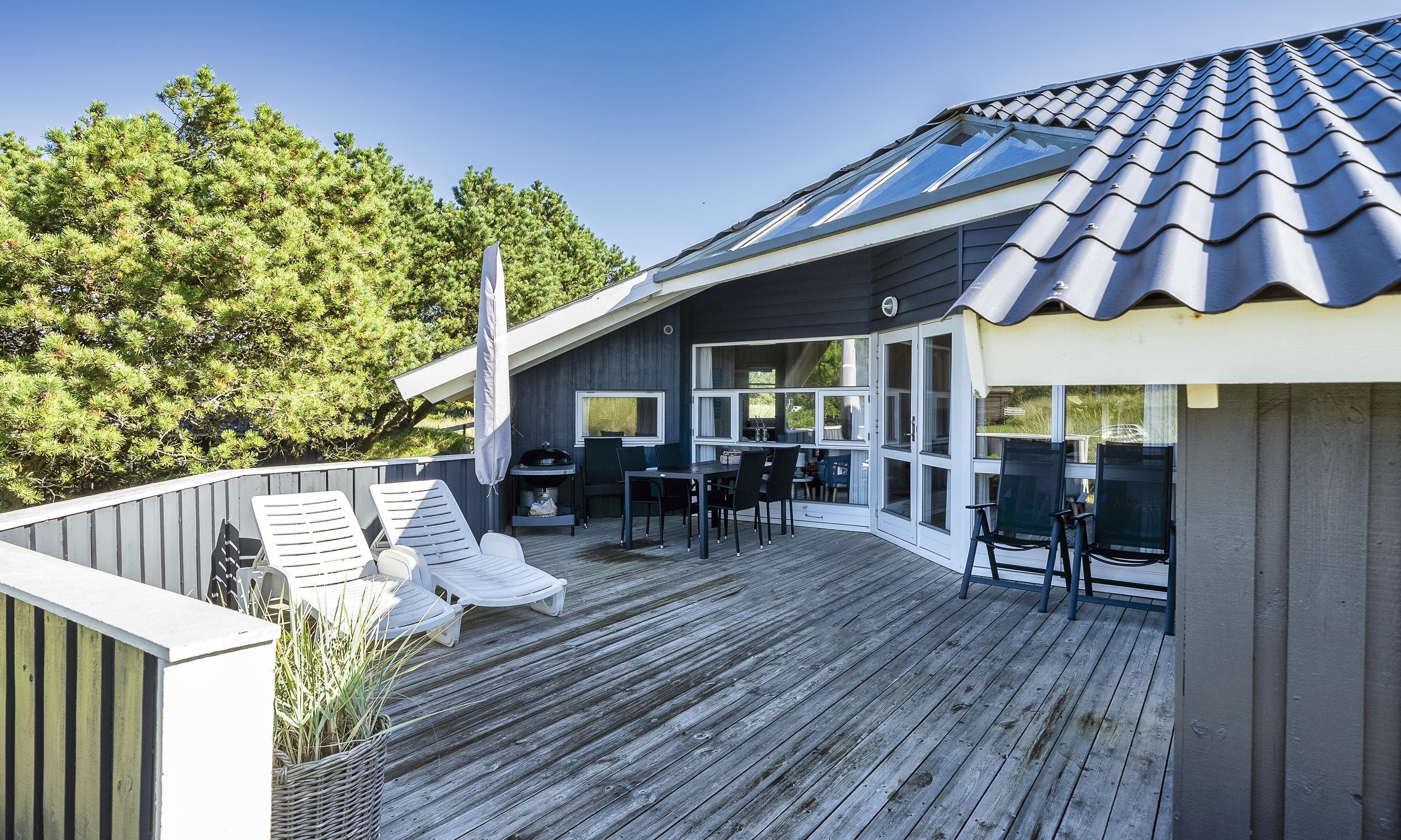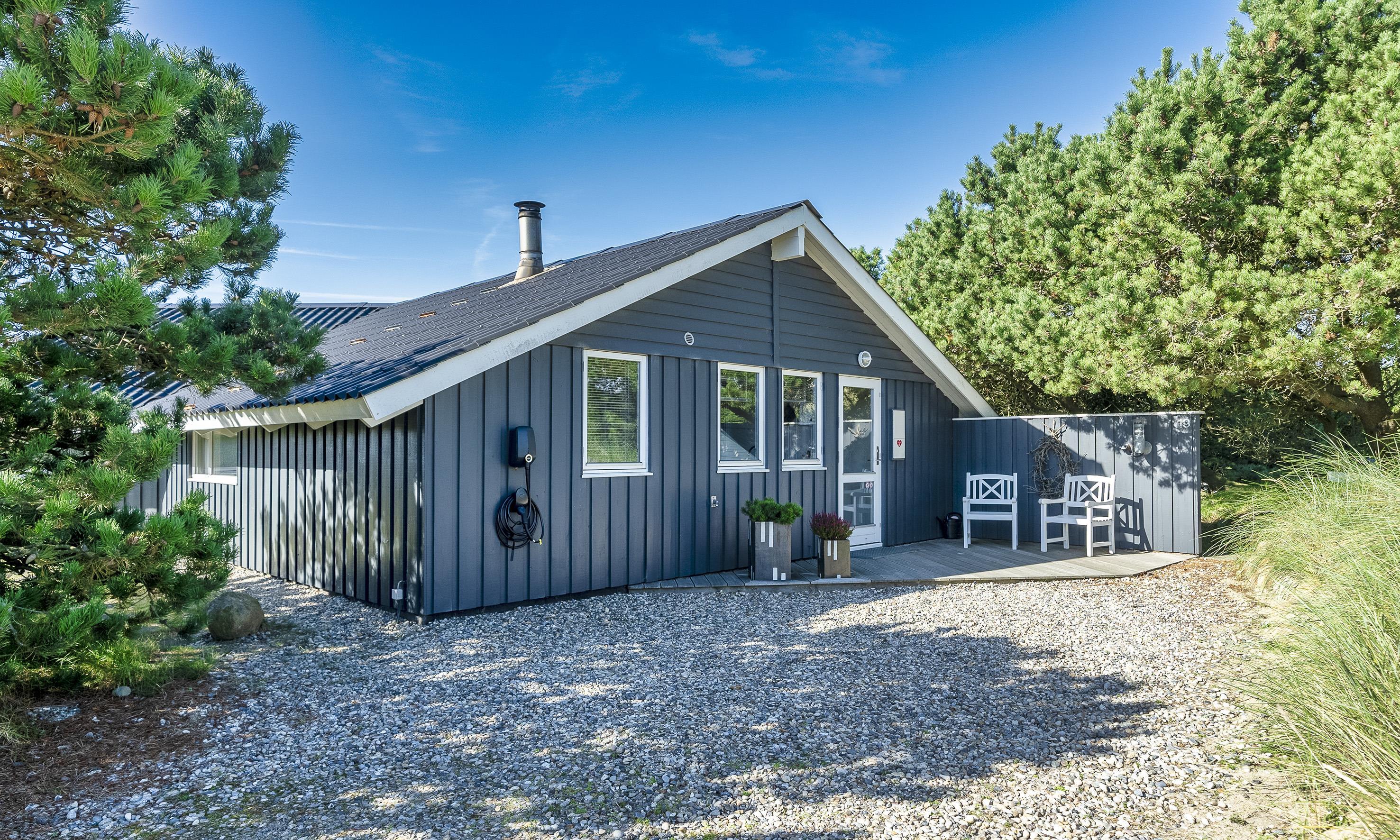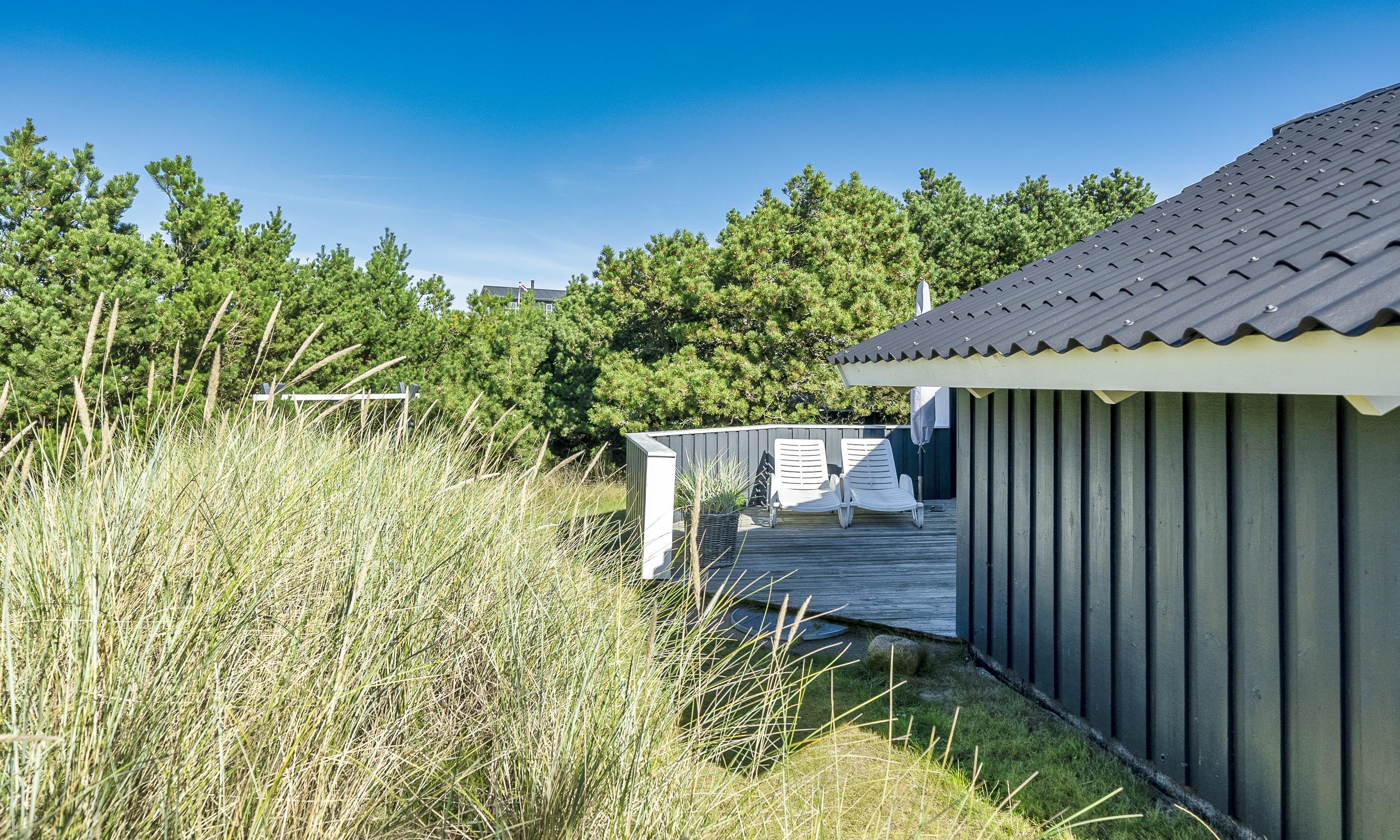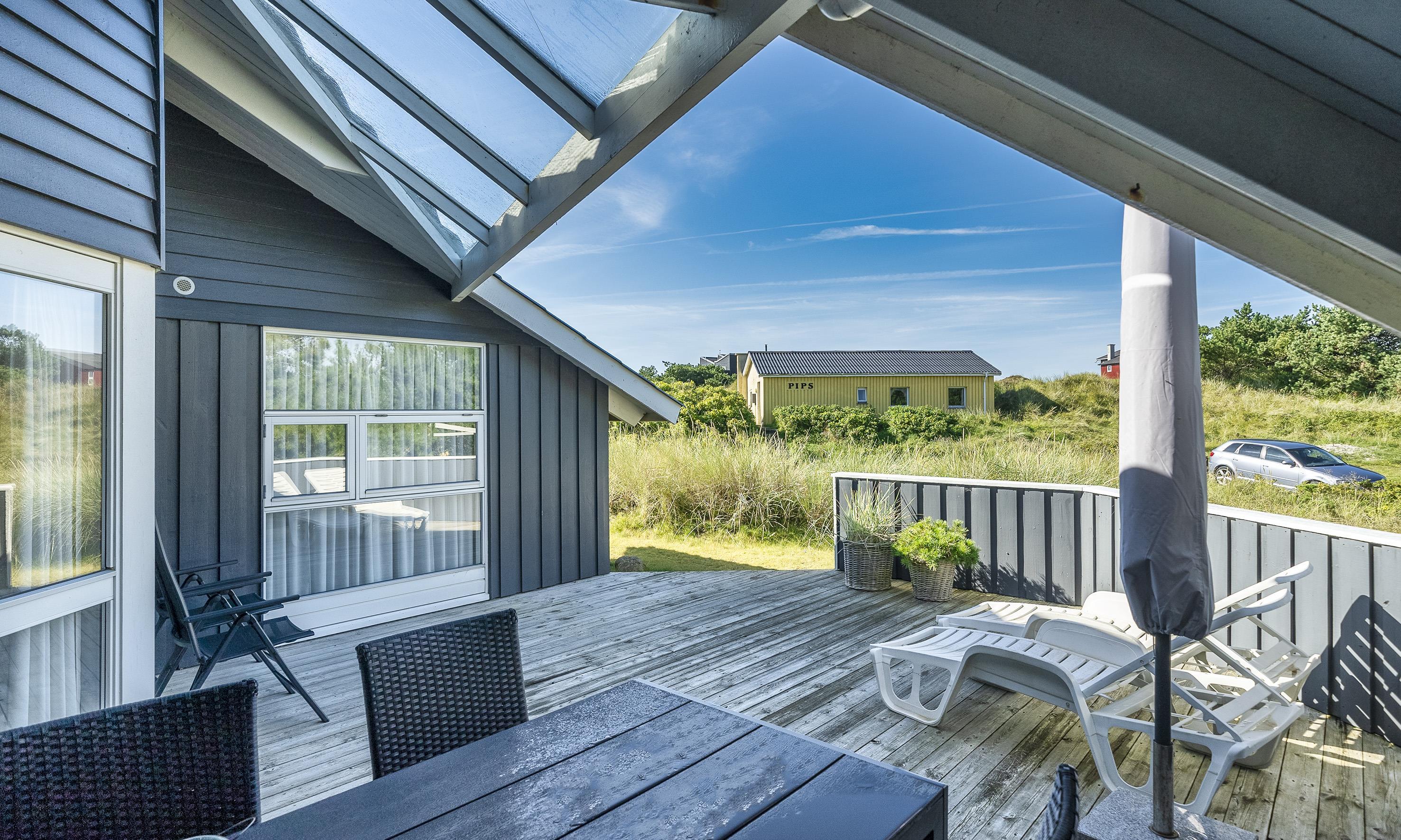 Hell und freundlich ausgestattetes Ferienhaus mit Namen ”Karen” in Mitten der Dünenlandschaft gelegen, umgeben von Büschen und Hagebutten. Das Ferienhaus ist für 4 Personen ausgestattet. Der Strand ist ca. 400 Meter vom Haus entfernt. Der Wohn-, Ess- und Kochbereich ist gefliest. Im Wohnbereich befindet sich ein Kamin und das Fernsehgerät. Wärmepumpe. Das deutsche Feinsehprogramm empfangen Sie über eine Parabolantenne sowie Stofa. Chromecast. Die offene Küche verfügt über einen Herd mit Cerankochfld, einem Backofen, einer Geschirrspülmaschine, einer Mikrowelle und einer Kühl- und Gefrierkombination. Es stehen den Gästen ein normales großes Badezimmer und ein Gästebad zur Verfügung. Das große Badezimmer ist mit einem WC, einem Handwaschbecken, einer Dusche, einer Sauna und einem Whirlpool ausgestattet. Das Gästebad verfügt über ein WC und ein Handwaschbecken. Hier im Gästebad ist die Waschmaschine und der Trockner ebenfalls untergebracht. Insgesamt stehen Ihnen drei Schlafzimmer zur Verfügung: DB + B + B. 1 Schlafzimmer sind mit einem Doppelbett ausgestattet. Zwei Schlaffzimmer mit je einem Einzelbett. Zwei schöne Terrassenbereiche stehen Ihnen zur Verfügung. Bei einer der Terrassen ist sogar ein Teil überdacht. Das Ferienhaus verfügt über einen Internetanschluss (W-Lan, 200/200 Mbit). Es sind keine Haustiere erlaubt. Rauchen ist nicht erlaubt im Haus. Schaukel. Zusätzlich befindet sich ein Anschluss am Ferienhaus für El-Fahrzeuge. Das Ferienhaus ist 1995 erbaut worden.