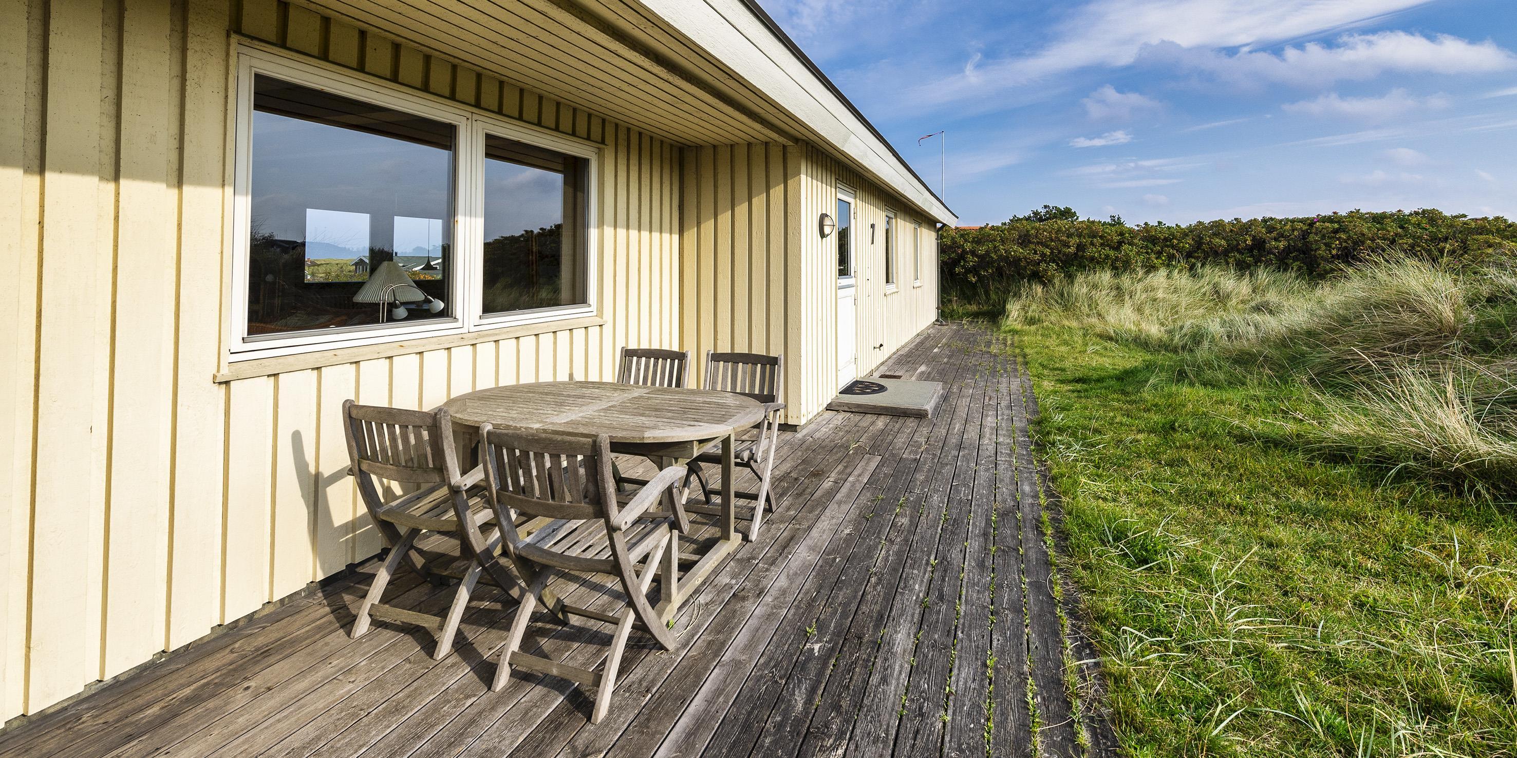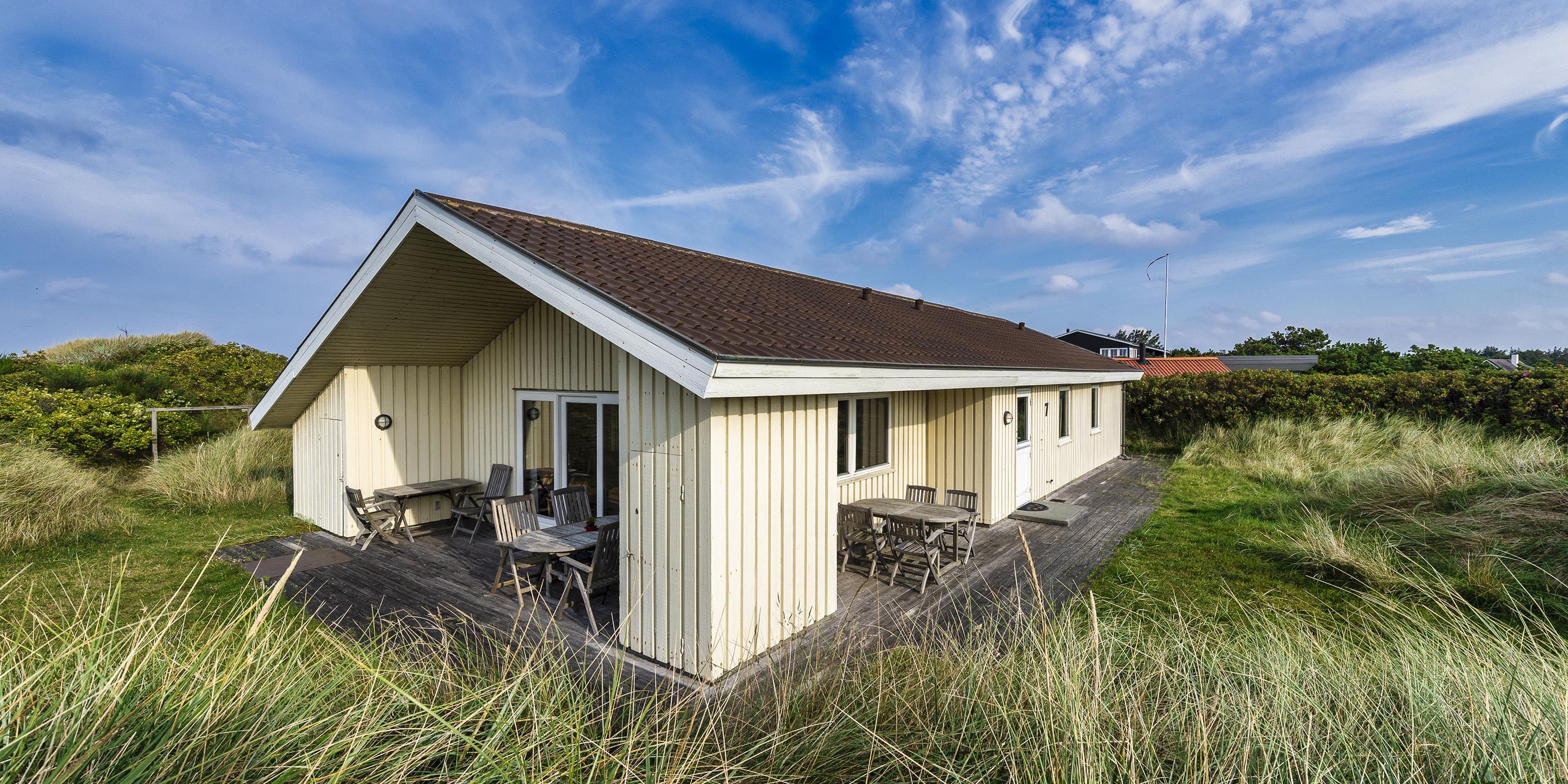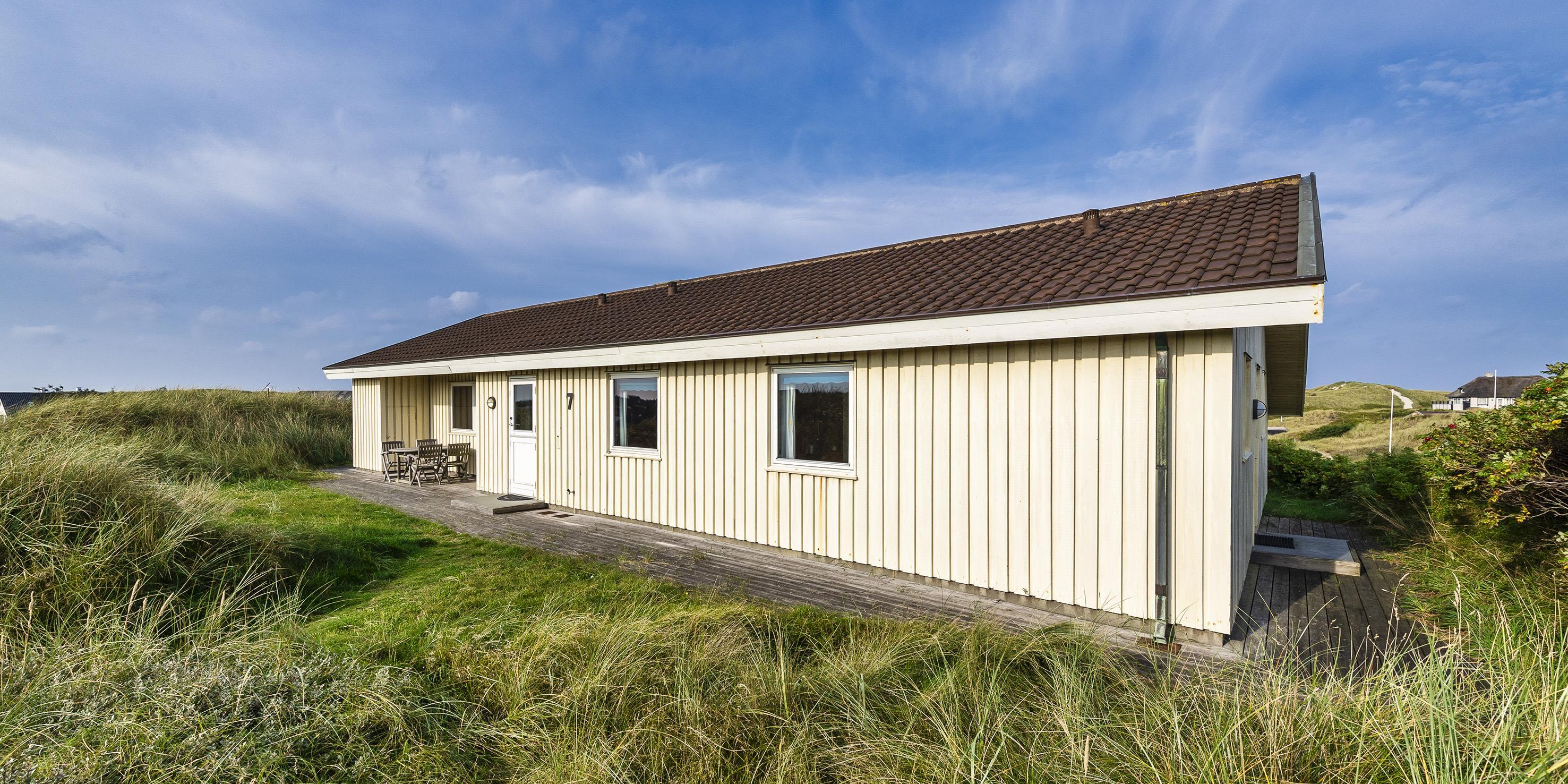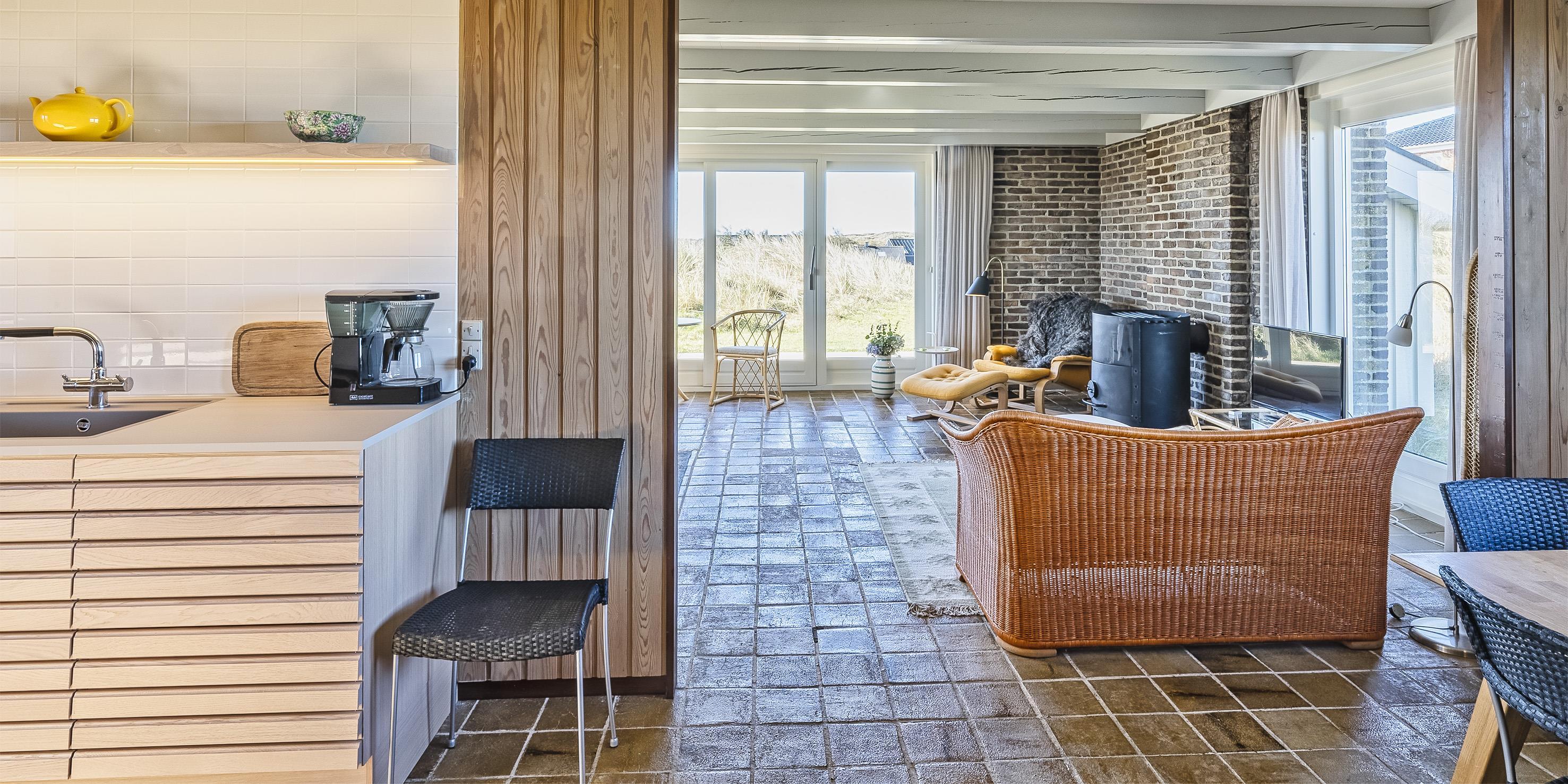 Rustikales gemütliches Ferienhaus auf einer Düne gelegen. Vom Ende des Grundstückes kann der Meeresblick richtig genossen werden. Der Aufstieg zum Ferienhaus ist nicht für Rollstuhlfahrer geeignet, da das Haus oben auf einer Düne sich befindet und kein befestigter Weg zum Haus führt. Die Zufahrt zum Ferienhaus ist nur von der nördlichen Seite des Nordvej´s möglich. Das Ferienhaus ist für 8 Personen ausgestattet. Der Strand ist nur Sage und Schreibe 150 Meter vom Haus entfernt. Der gemütliche Wohnbereich ist mit einem Kamin versehen, dieser spendet behagliche Wärme und die dänische ”hygge”. Das Fernsehprogramm empfangen Sie über Stofa, daher sind nur 5-8 deutsche Kanäle zu empfangen. Die neu renovierte Küche verfügt über einen Herd mit Cerankochfeld, einem Backofen, und einem Kühlschrank mit einem 3-Sterne-Gefrierfach. Der Küchenbereich ist offen zum Essbereich und bietet reichlich Platz für all seine Bewohner an. Der Essbereich ist mit einer tollen Sitzgruppe und Sitzbank ausgestattet. Von diesem Bereich haben Sie auch einen tollen Blick auf die Dünenkette. Desweiteren befindet sich eine Waschmaschine, kombiniert mit Trockner im Ferienhaus. Das Badezimmer ist mit einem WC, einem Handwaschbecken und einer Dusche ausgestattet. Desweiteren haben Sie ein Gäste WC mit Handwaschbecken im Ferienhaus. Insgesamt stehen den Bewohner vier Schlafzimmer zur Verfügung: DB + DB + 2B + 2B. Das Ferienhaus verfügt über einen Internetanschluss (W-Lan). Die Terrasse lädt zum verweilen ein und ein Teil davon ist sogar überdacht. Hier können Sie Ihre Abende ruhig und gemütlich geniessen, sollte es auch mal ein wenig tröpfeln. Von dem Grundstück aus haben Sie einen wunderschönen Blick zum Strand/Meer. Für die Kleinen Gäste steht ein Schaukelstativ auf dem Grundstück bereit. 2 Hunde sind erlaubt. Das Ferienhaus ist 1976 erbaut worden und in 2000 umgebaut.