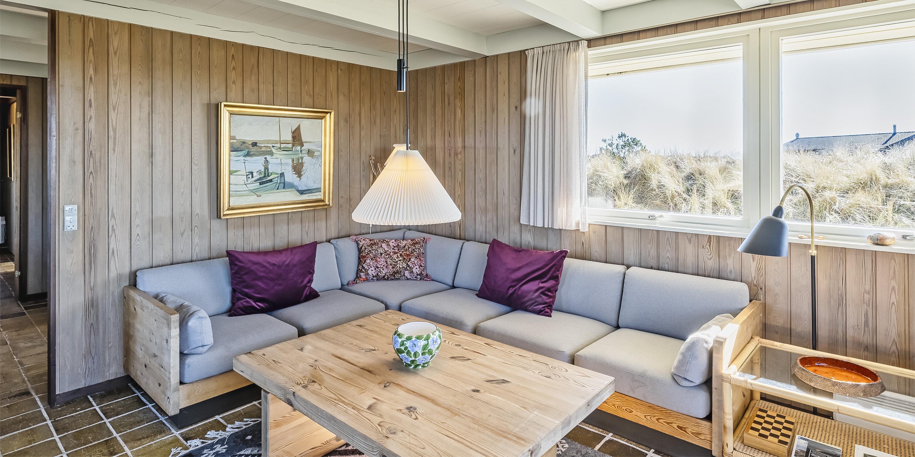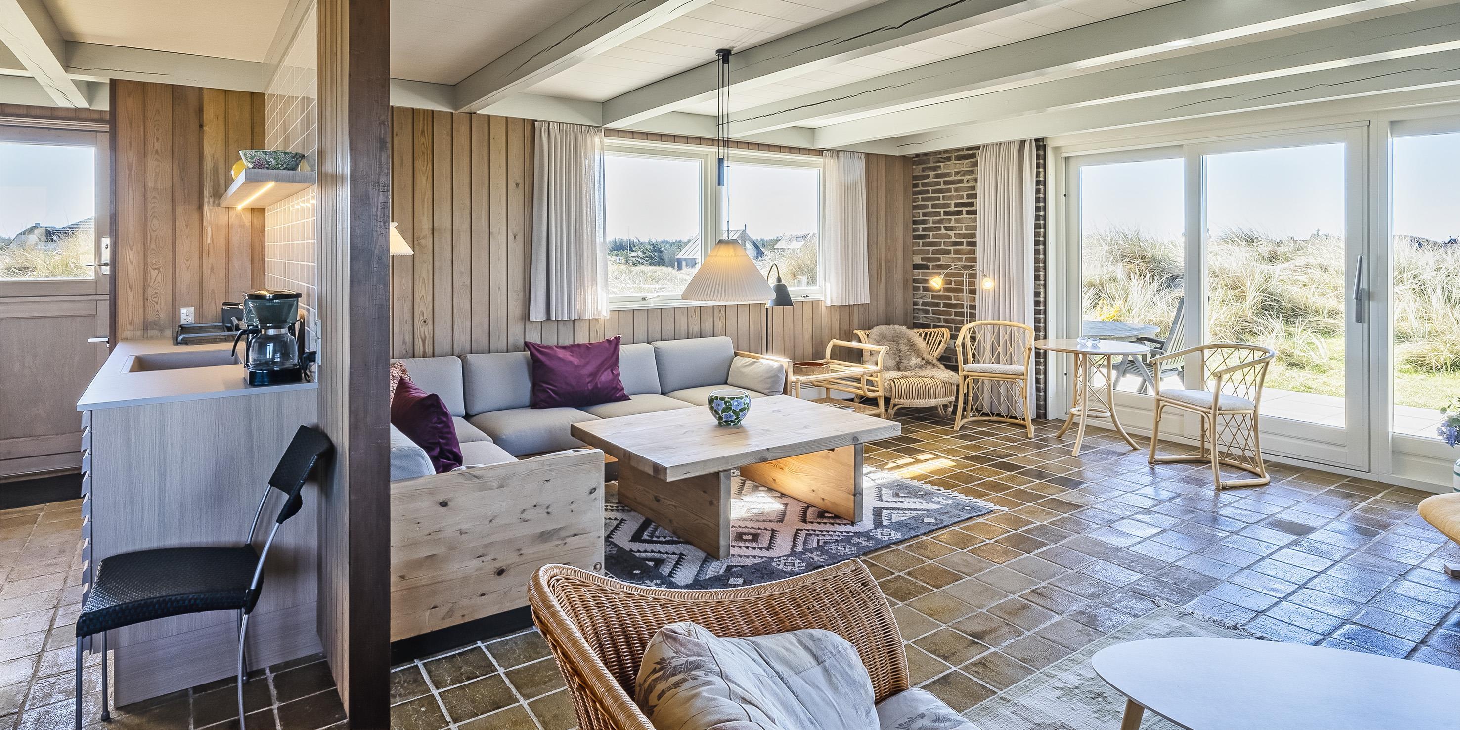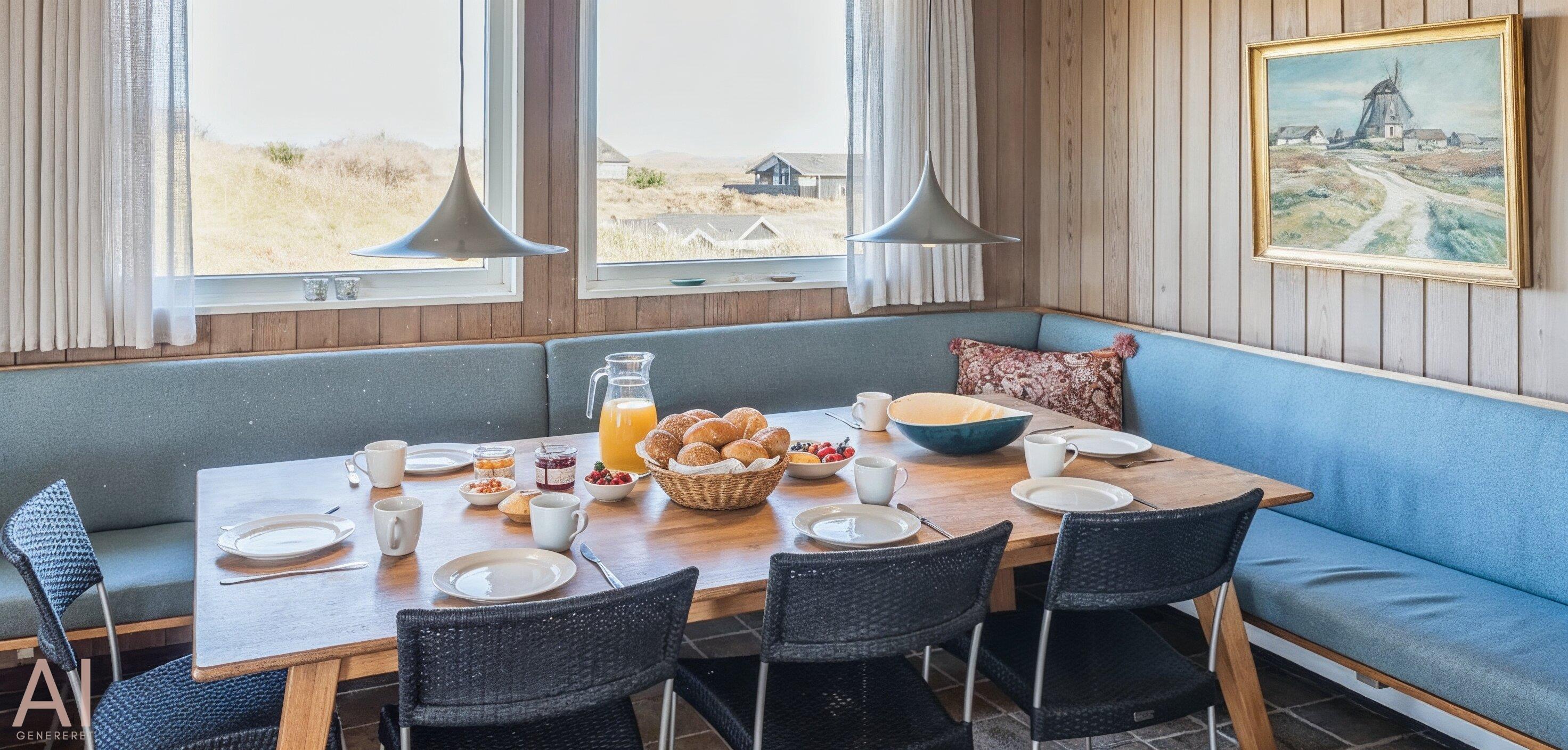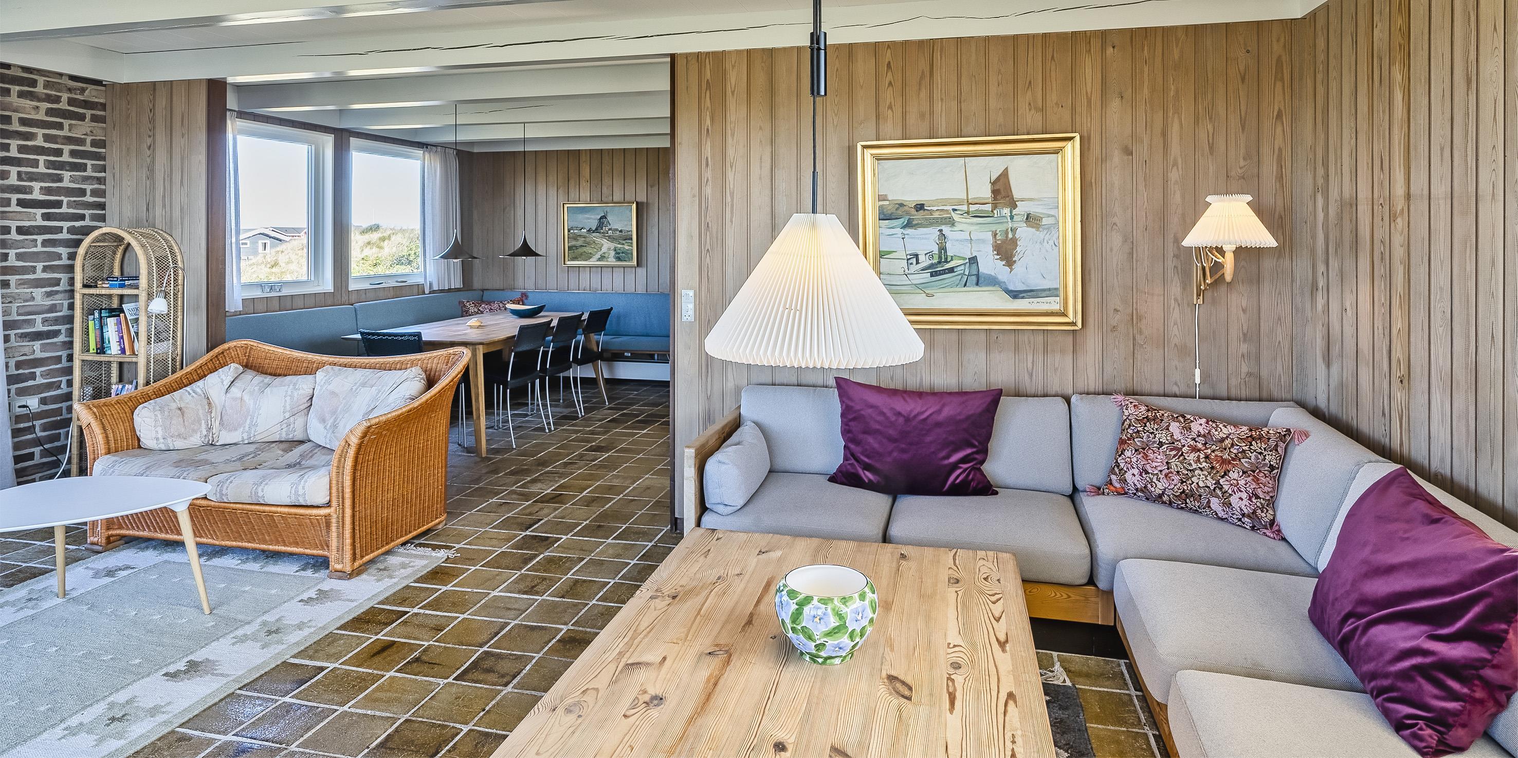 Rustikales gemütliches Ferienhaus auf einer Düne gelegen. Vom Ende des Grundstückes kann der Meeresblick richtig genossen werden. Der Aufstieg zum Ferienhaus ist nicht für Rollstuhlfahrer geeignet, da das Haus oben auf einer Düne sich befindet und kein befestigter Weg zum Haus führt. Die Zufahrt zum Ferienhaus ist nur von der nördlichen Seite des Nordvej´s möglich. Das Ferienhaus ist für 8 Personen ausgestattet. Der Strand ist nur Sage und Schreibe 150 Meter vom Haus entfernt. Der gemütliche Wohnbereich ist mit einem Kamin versehen, dieser spendet behagliche Wärme und die dänische ”hygge”. Das Fernsehprogramm empfangen Sie über Stofa, daher sind nur 5-8 deutsche Kanäle zu empfangen. Die neu renovierte Küche verfügt über einen Herd mit Cerankochfeld, einem Backofen, und einem Kühlschrank mit einem 3-Sterne-Gefrierfach. Der Küchenbereich ist offen zum Essbereich und bietet reichlich Platz für all seine Bewohner an. Der Essbereich ist mit einer tollen Sitzgruppe und Sitzbank ausgestattet. Von diesem Bereich haben Sie auch einen tollen Blick auf die Dünenkette. Desweiteren befindet sich eine Waschmaschine, kombiniert mit Trockner im Ferienhaus. Das Badezimmer ist mit einem WC, einem Handwaschbecken und einer Dusche ausgestattet. Desweiteren haben Sie ein Gäste WC mit Handwaschbecken im Ferienhaus. Insgesamt stehen den Bewohner vier Schlafzimmer zur Verfügung: DB + DB + 2B + 2B. Das Ferienhaus verfügt über einen Internetanschluss (W-Lan). Die Terrasse lädt zum verweilen ein und ein Teil davon ist sogar überdacht. Hier können Sie Ihre Abende ruhig und gemütlich geniessen, sollte es auch mal ein wenig tröpfeln. Von dem Grundstück aus haben Sie einen wunderschönen Blick zum Strand/Meer. Für die Kleinen Gäste steht ein Schaukelstativ auf dem Grundstück bereit. 2 Hunde sind erlaubt. Das Ferienhaus ist 1976 erbaut worden und in 2000 umgebaut.