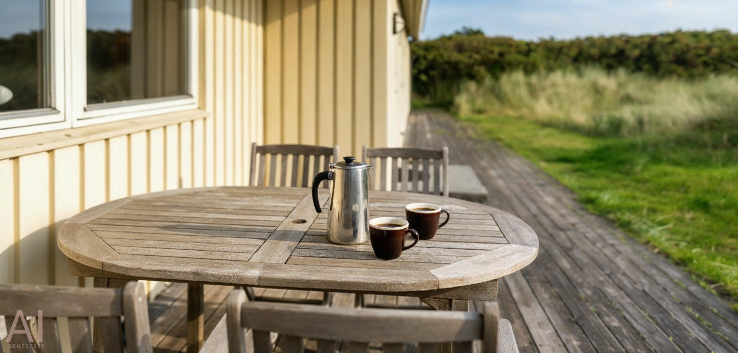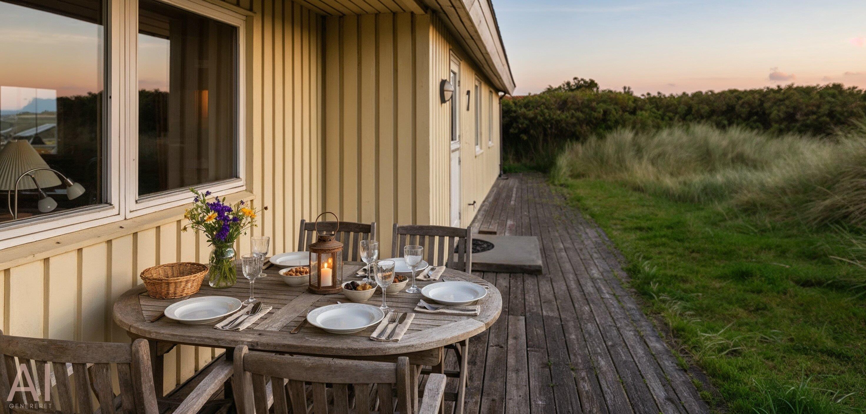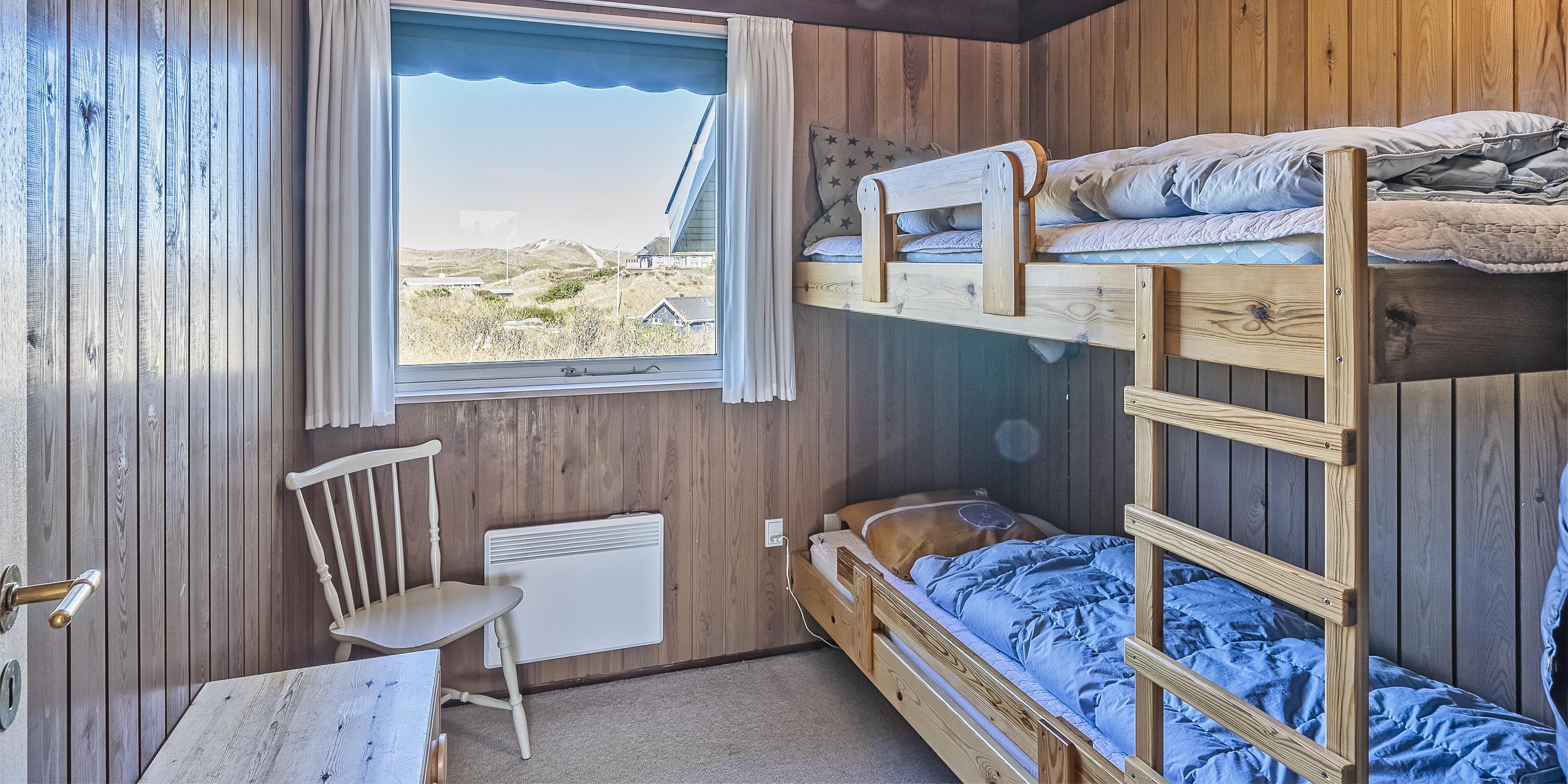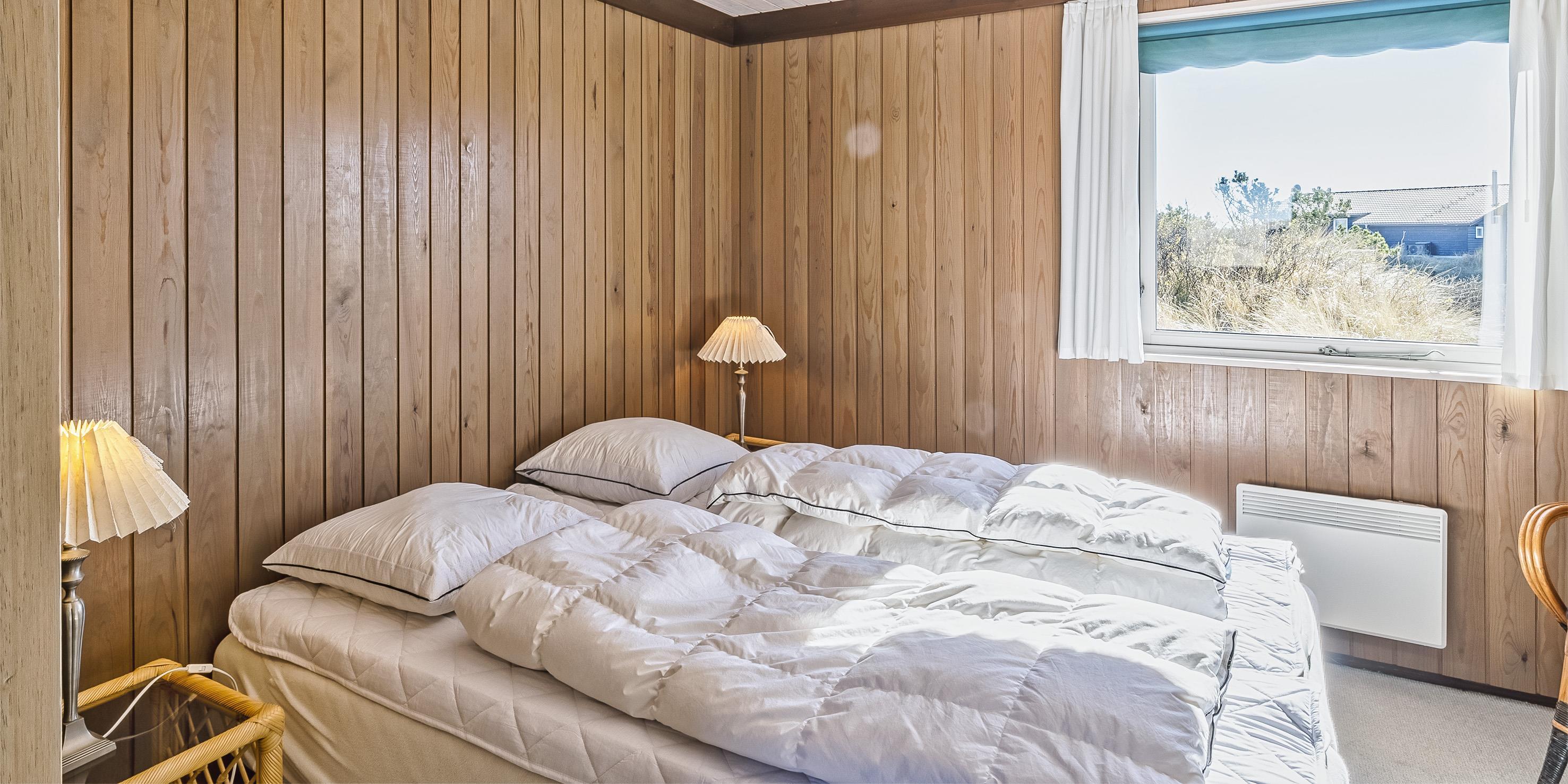 Rustikales gemütliches Ferienhaus auf einer Düne gelegen. Vom Ende des Grundstückes kann der Meeresblick richtig genossen werden. Der Aufstieg zum Ferienhaus ist nicht für Rollstuhlfahrer geeignet, da das Haus oben auf einer Düne sich befindet und kein befestigter Weg zum Haus führt. Die Zufahrt zum Ferienhaus ist nur von der nördlichen Seite des Nordvej´s möglich. Das Ferienhaus ist für 8 Personen ausgestattet. Der Strand ist nur Sage und Schreibe 150 Meter vom Haus entfernt. Der gemütliche Wohnbereich ist mit einem Kamin versehen, dieser spendet behagliche Wärme und die dänische ”hygge”. Das Fernsehprogramm empfangen Sie über Stofa, daher sind nur 5-8 deutsche Kanäle zu empfangen. Die neu renovierte Küche verfügt über einen Herd mit Cerankochfeld, einem Backofen, und einem Kühlschrank mit einem 3-Sterne-Gefrierfach. Der Küchenbereich ist offen zum Essbereich und bietet reichlich Platz für all seine Bewohner an. Der Essbereich ist mit einer tollen Sitzgruppe und Sitzbank ausgestattet. Von diesem Bereich haben Sie auch einen tollen Blick auf die Dünenkette. Desweiteren befindet sich eine Waschmaschine, kombiniert mit Trockner im Ferienhaus. Das Badezimmer ist mit einem WC, einem Handwaschbecken und einer Dusche ausgestattet. Desweiteren haben Sie ein Gäste WC mit Handwaschbecken im Ferienhaus. Insgesamt stehen den Bewohner vier Schlafzimmer zur Verfügung: DB + DB + 2B + 2B. Das Ferienhaus verfügt über einen Internetanschluss (W-Lan). Die Terrasse lädt zum verweilen ein und ein Teil davon ist sogar überdacht. Hier können Sie Ihre Abende ruhig und gemütlich geniessen, sollte es auch mal ein wenig tröpfeln. Von dem Grundstück aus haben Sie einen wunderschönen Blick zum Strand/Meer. Für die Kleinen Gäste steht ein Schaukelstativ auf dem Grundstück bereit. 2 Hunde sind erlaubt. Das Ferienhaus ist 1976 erbaut worden und in 2000 umgebaut.