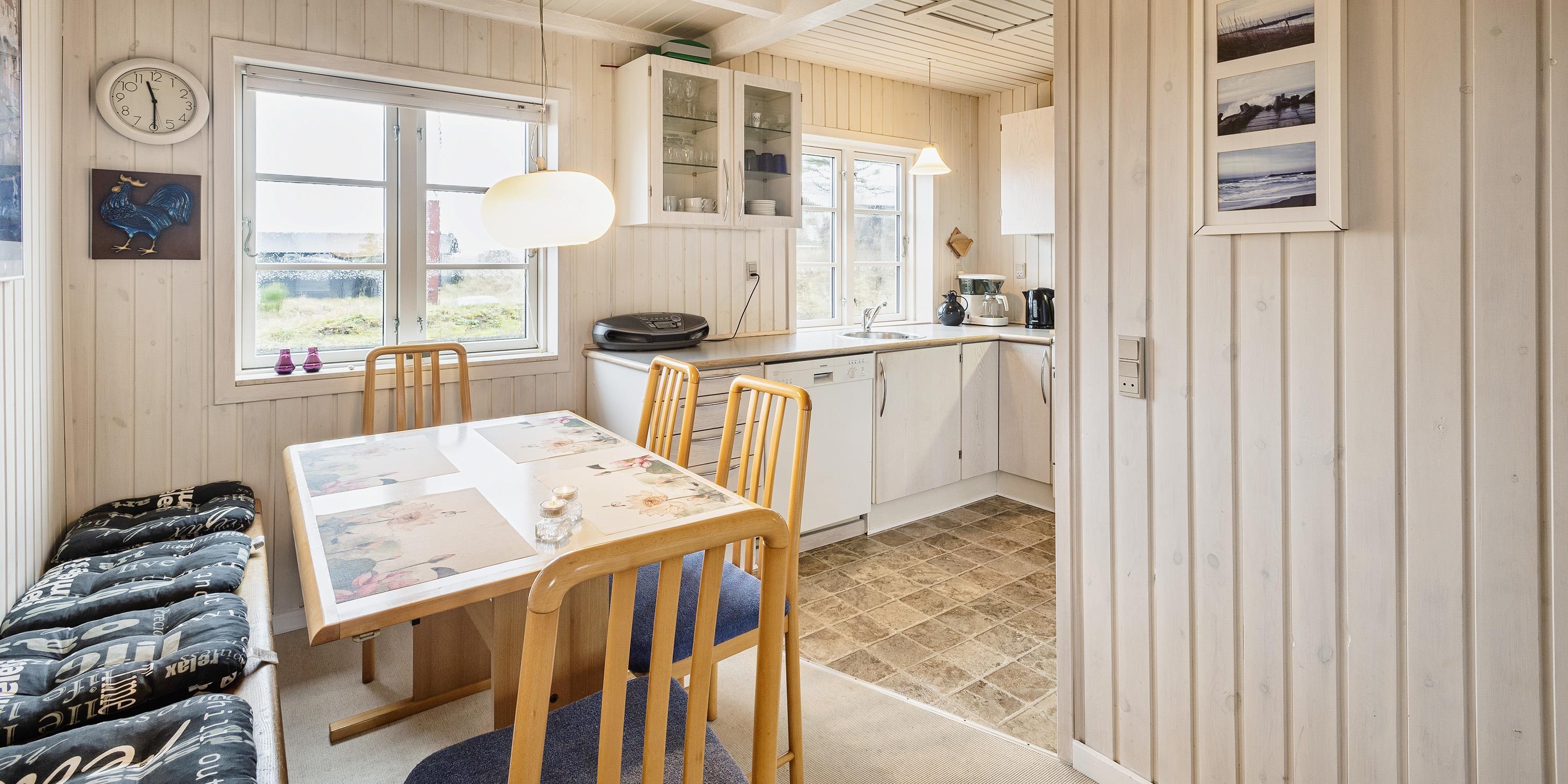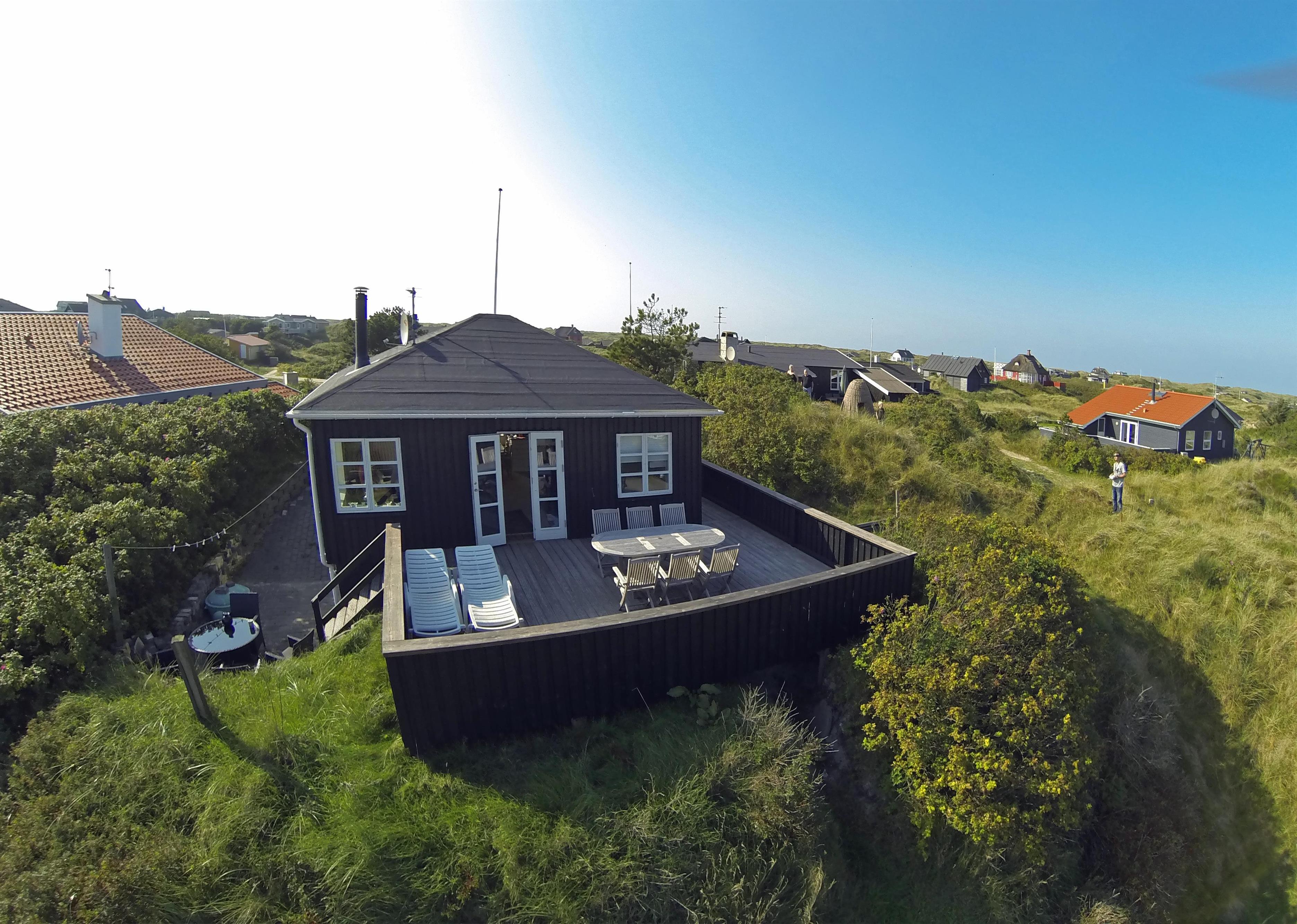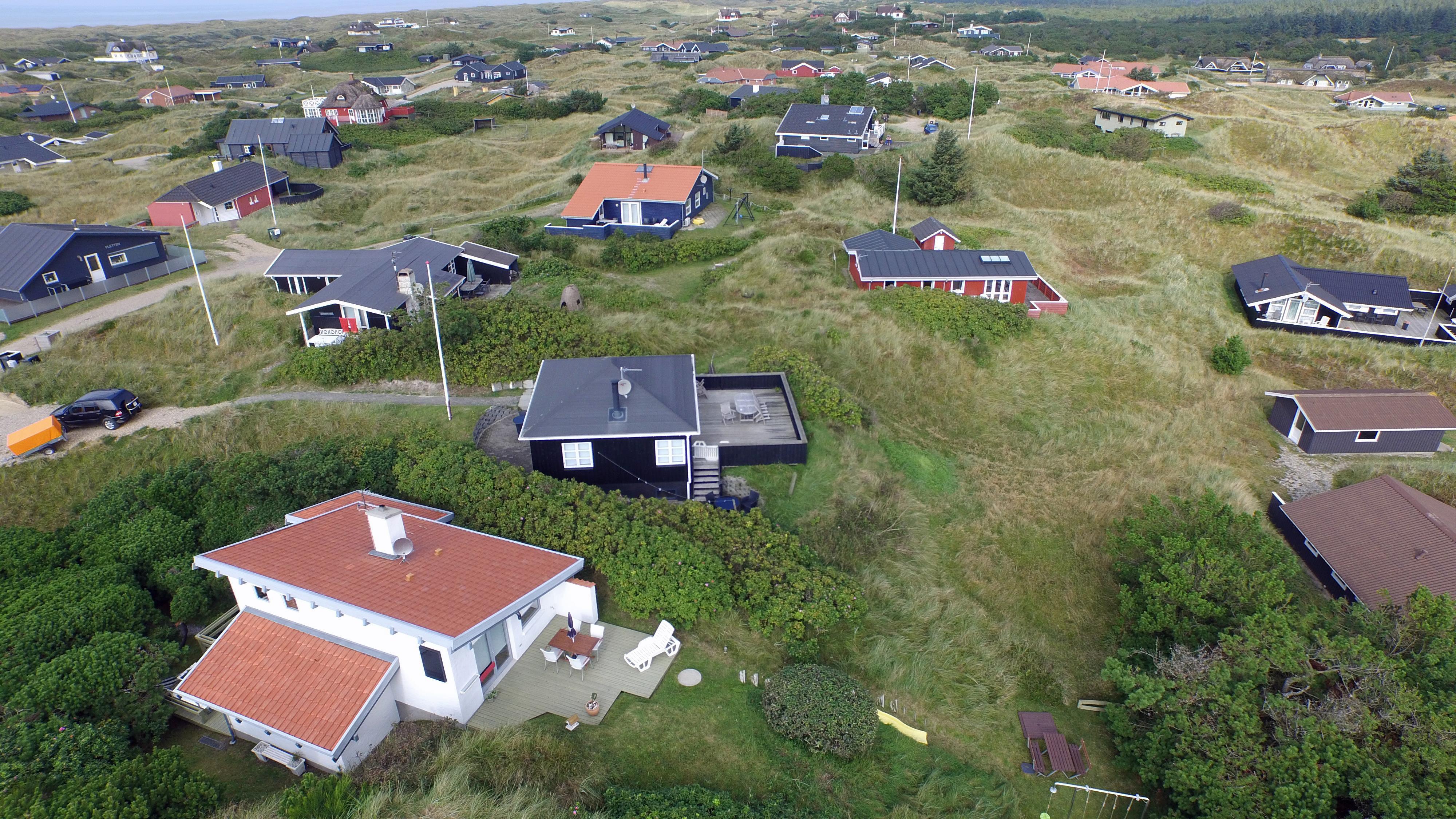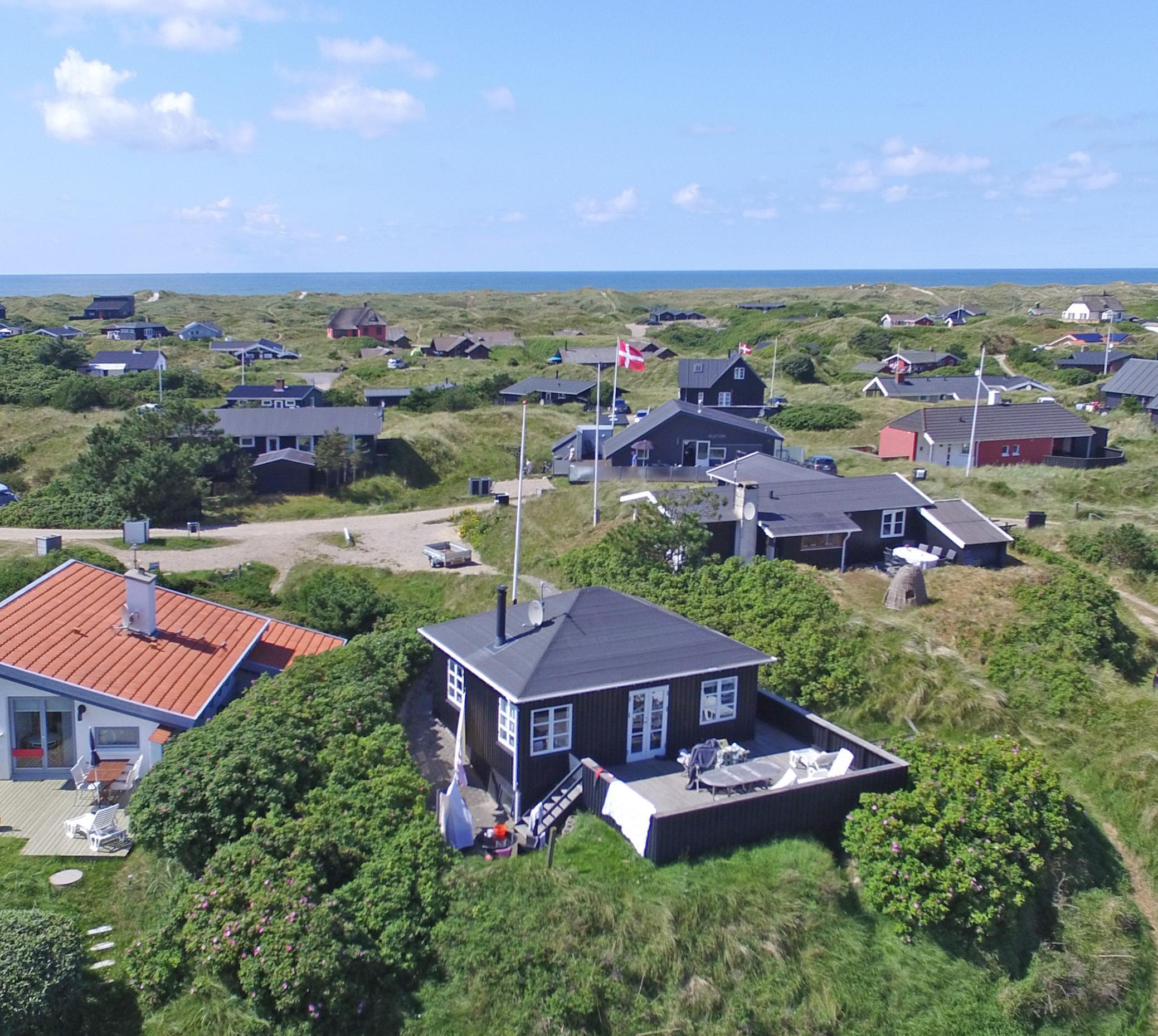 Kleines geschmackvoll eingerichtetes Ferienhaus auf einer Düne gelegen und mit einem tollem Rund-um-Panoramablick von der Terrasse aus. Das Ferienhaus ist für 4 Personen und der Strand ist ca. 400 Meter vom Ferienhaus entfernt. Der Wohnbereich ist mit typischen dänischen Möbeln ausgestattet. Ein Kamin ist auch in diesem Bereich untergebracht. Das deutsche Fernsehprogramm empfangen Sie über eine Parabolantenne. Chromecast ist vorhanden. Die offene Küche ist als Wohnküche ausgestattet und somit mit dem Essbereich verbunden. Eine kleine Sitzbank steht am Esstisch bereit. Die Küche verfügt über ein Herd mit Cerankochfeld, einem Backofen, einer Geschirrspülmaschine, einer Mikrowelle und einer Kühl- und Gefrierkombination. Das Badezimmer hat ein WC, ein Handwaschbecken und eine Dusche. Insgesamt stehen Ihnen zwei Schlafzimmer zur Verfügung: DB + DB. Sie haben insgesamt drei verschiedene Terrassenbereiche, eine mit Holzdielen, direkt am Ferienhaus und zwei Bereiche sind mit Steinfliesen verlegt. Die Hagebuttenbüsche schützen einen Bereich neben dem Treppenaufgang an der Seite und daher ist dieser Sitzplatz recht gut geschützt. Das Ferienhaus verfügt über einen Internetanschluss (W-Lan). Es sind keine Haustiere erlaubt, mit Ausnahme ein kleiner Hund mit max. Rückenhöhe von 30 cm. Der Grill und die Fahrräder am Ferienhaus sind zur freien Benutzung. Wir geben allerdings keine Garantie auf die Benutzbarkeit. Gratis Eintritt für das Badeland in Oksbøl in 2026. Das Rauchen ist nicht gestattet. Das Ferienhaus ist 1952 erbaut worden.